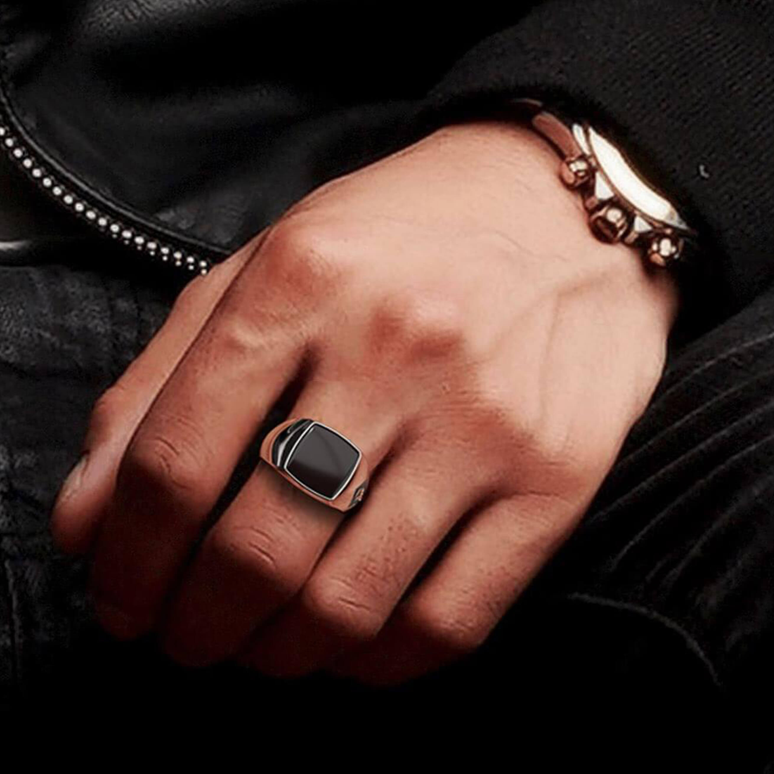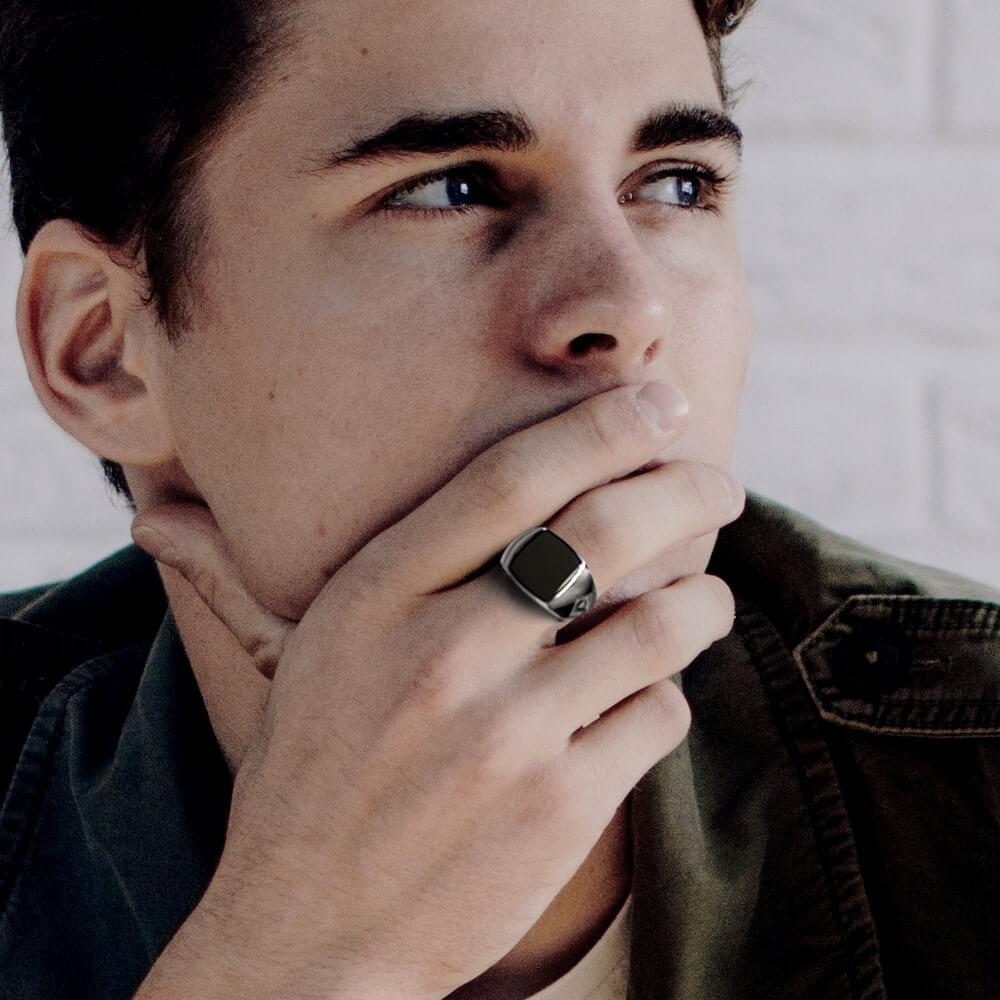 The Ares Ring by AYA is a premier signature ring designed for men, embodying boldness and sophistication. With its glossy polish and rhodium plating, this ring exudes class and elegance, making it a statement piece suitable for any occasion. It comes in two exquisite variants: the Black Onyx variant features a genuine gemstone known for its timeless appeal and deep, lustrous black hue, appealing to those who appreciate classic refinement. Alternatively, the Black Ceramic variant offers a modern, sleek look with its high-quality ceramic material, providing durability and a contemporary aesthetic. Whether as a style statement or a symbol of personal flair, the Ares Ring is crafted to impress, delighting both admirers and wearers alike with its distinctive charm and craftsmanship.