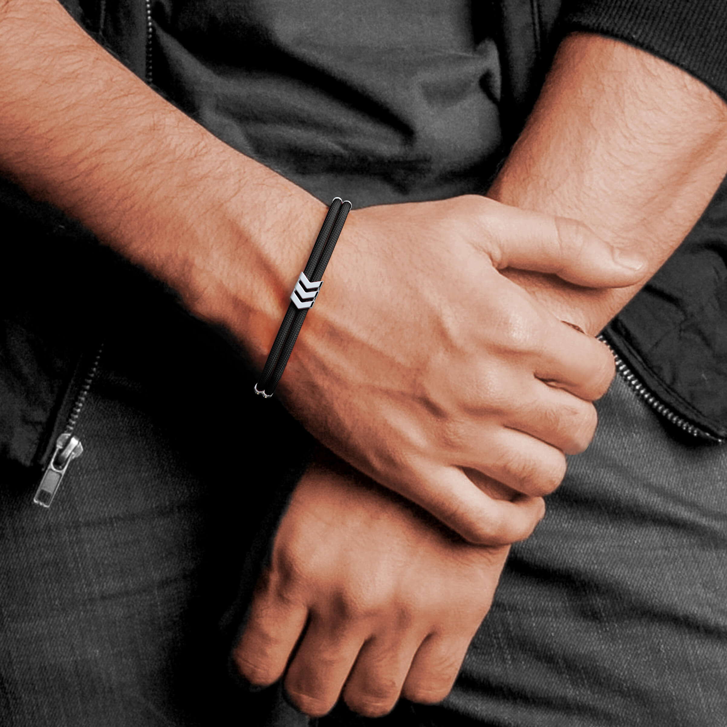 Featuring Erose bracelet for men by AYA'S made of 4 mm paracord. Defined by the arrow head elements in sterling silver, this bracelet has adjustable length and voguish design. Whether you are going for a mundane lunch or a concert in the evening, this bracelet can give your wrist the company it needs.