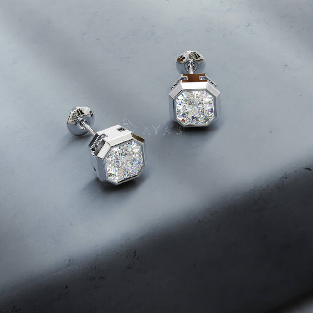 At the center of each earring sits a stunning AAAA-grade Asscher-cut cubic zirconia, known for its exceptional clarity, brilliance, and fire. The Asscher cut, with its geometric shape and step-cut facets, enhances the stone’s sparkle, offering a striking resemblance to a diamond's radiance.