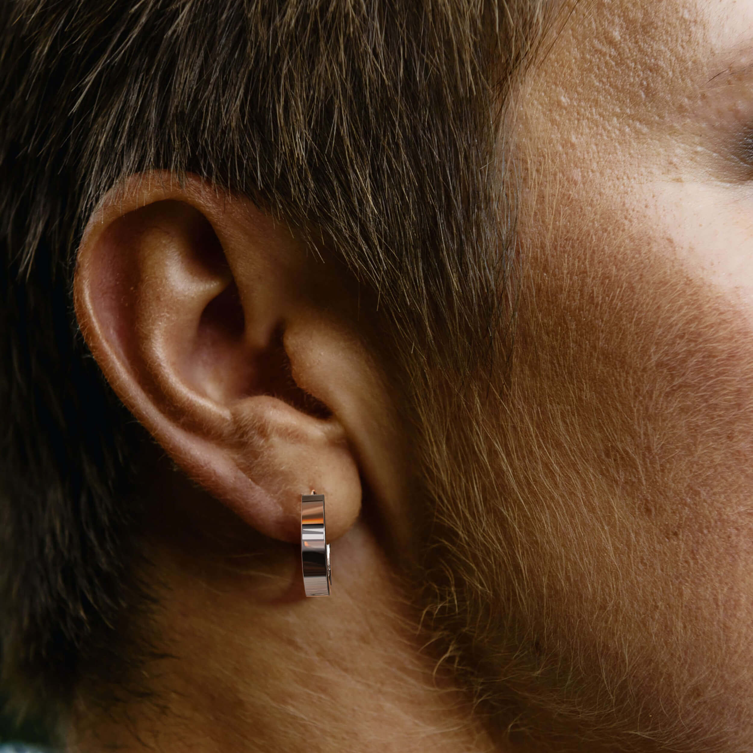 Presenting Oan by AYA'S, a hoop earring for men in sterling silver. It's elementary in design and essential in your earring collection. It can be one of those everyday ornaments, that you wear and hardly take off.