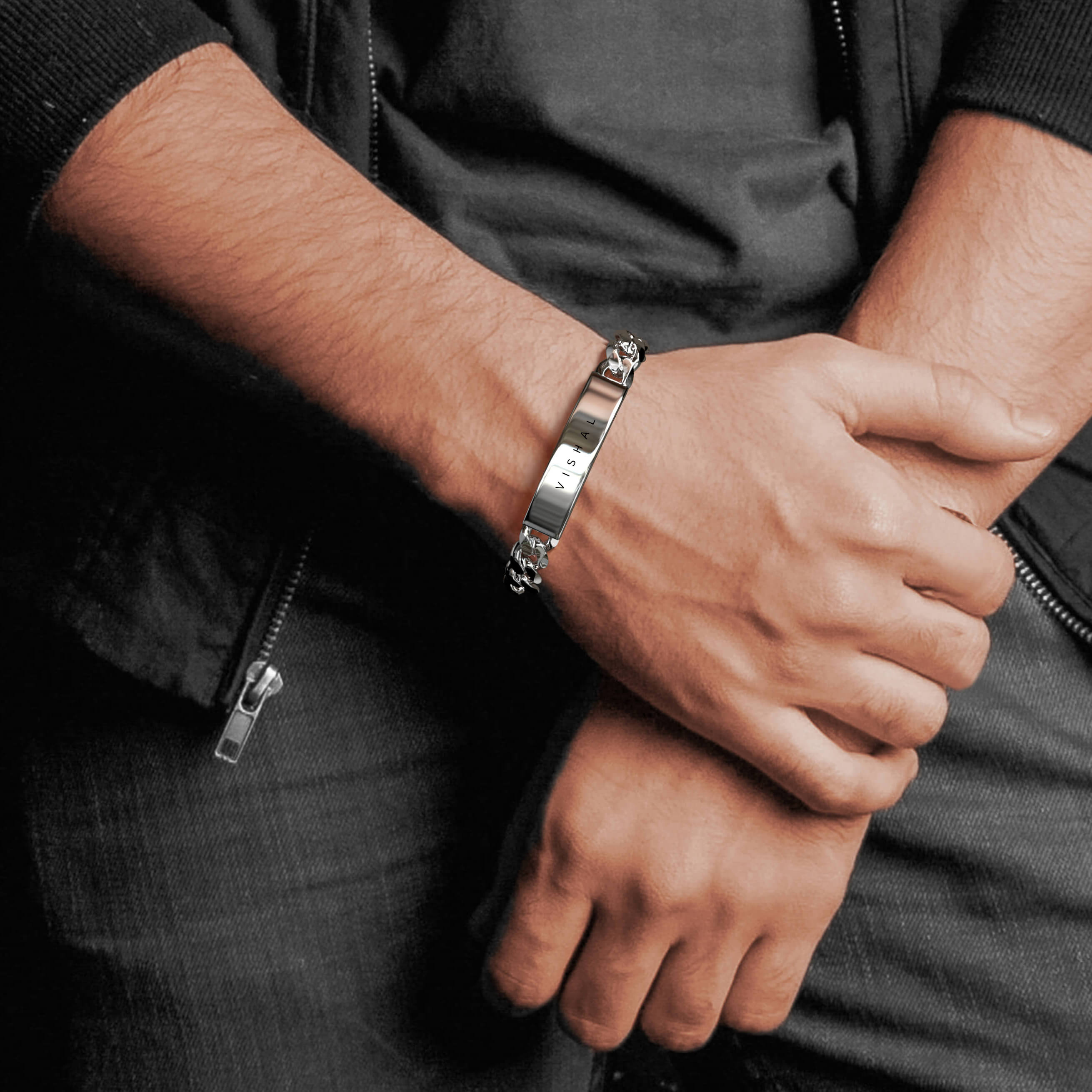 The bracelet’s design is completed with a sturdy curb chain that enhances its modern look while ensuring exceptional durability and longevity. The chain provides both flexibility and comfort, making it ideal for everyday wear. A secure clasp ensures that the bracelet stays in place throughout the day, offering peace of mind and a perfect fit.