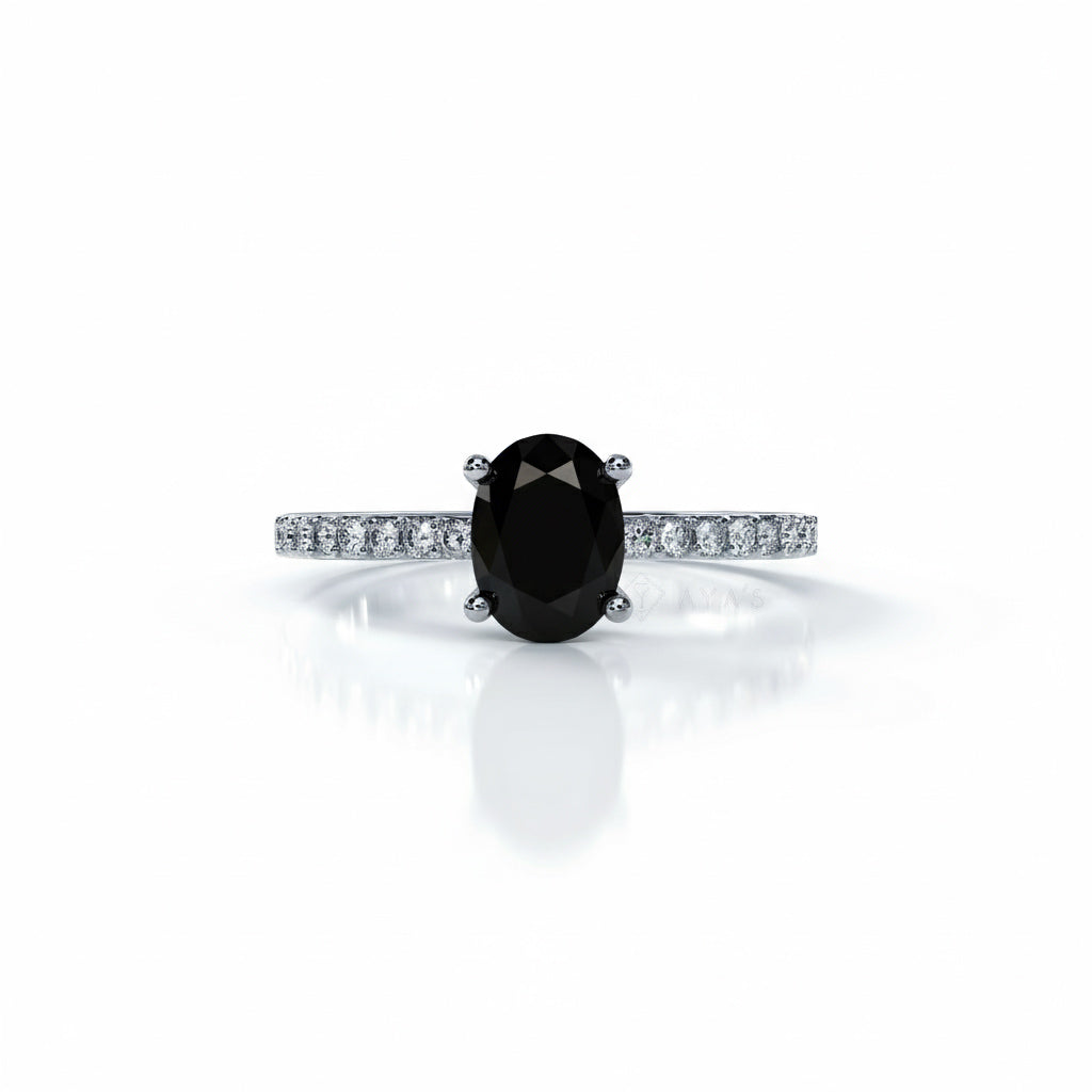 • Stone Shape: Oval-cut Black Onyx Natural Gemstone with CZ-accented Band