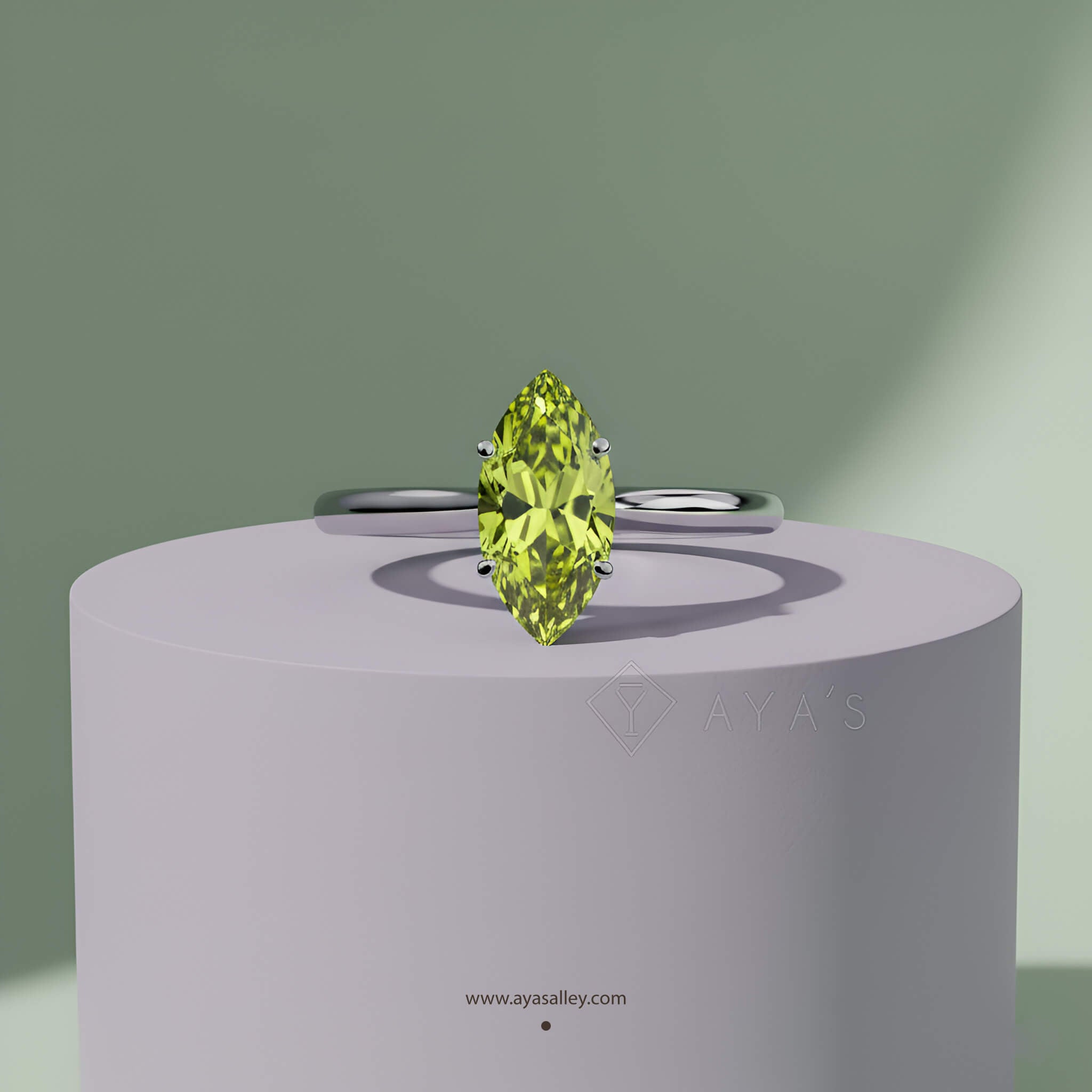 - Stone: Natural Peridot, Marquise-cut