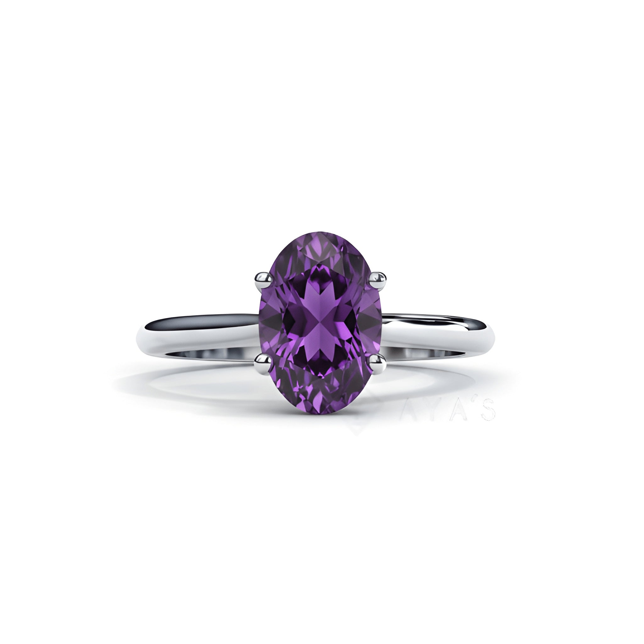 Silver Oval Embrace Amethyst Natural Gemstone Solitaire Ring – 925 Sterling Silver for Women