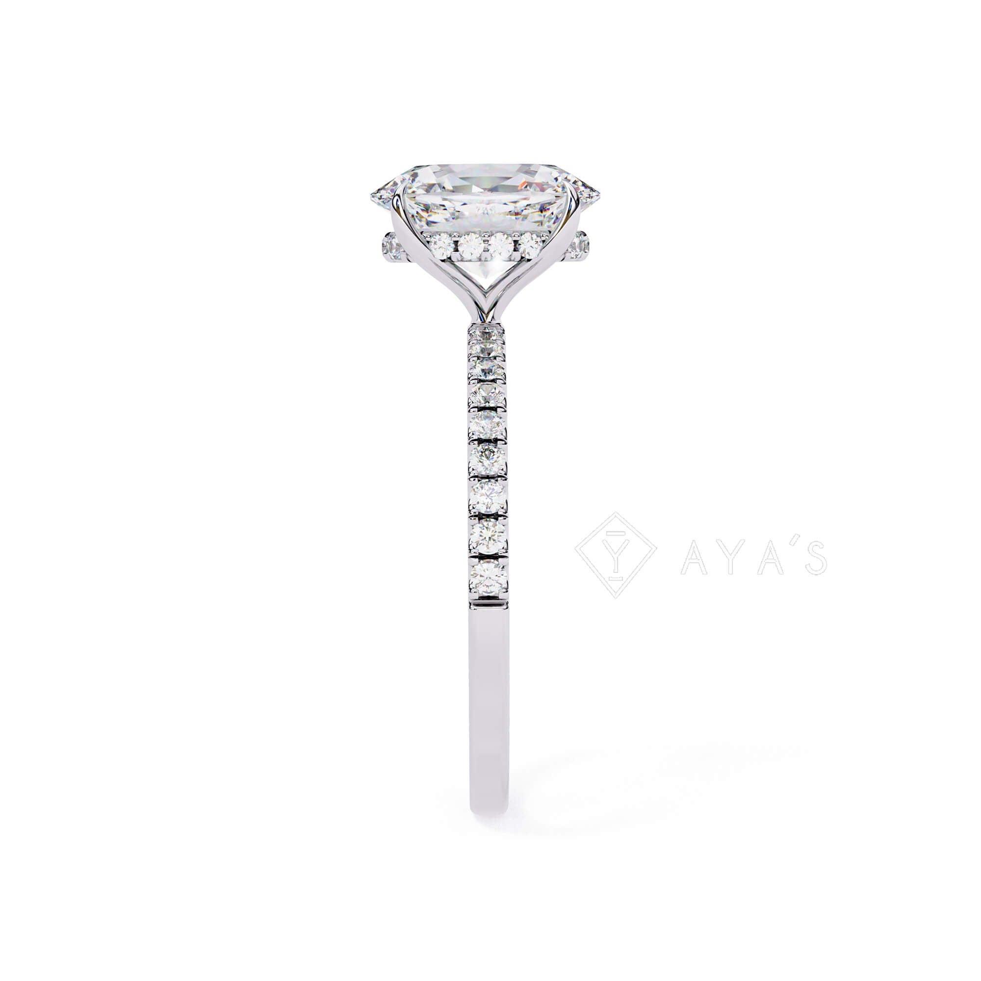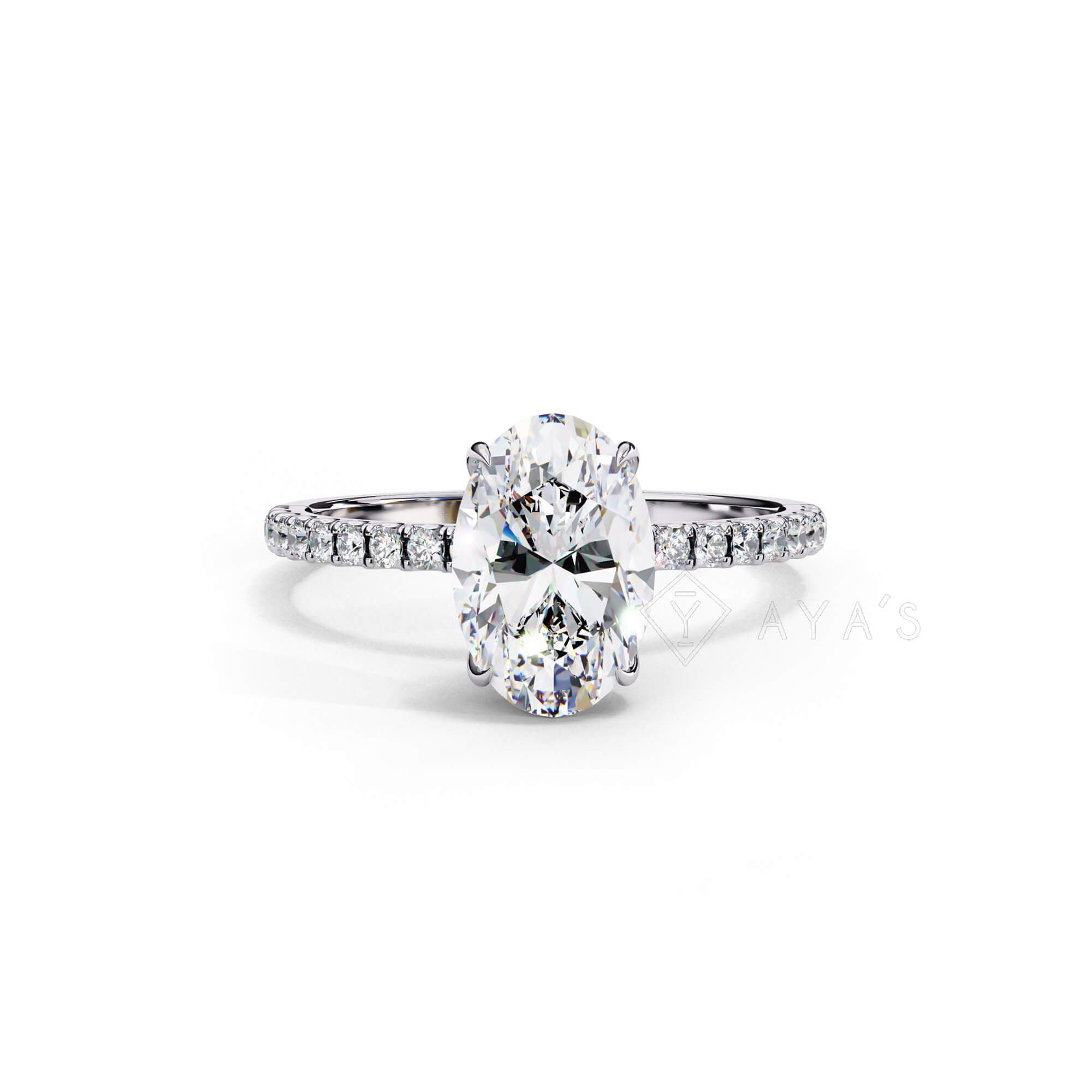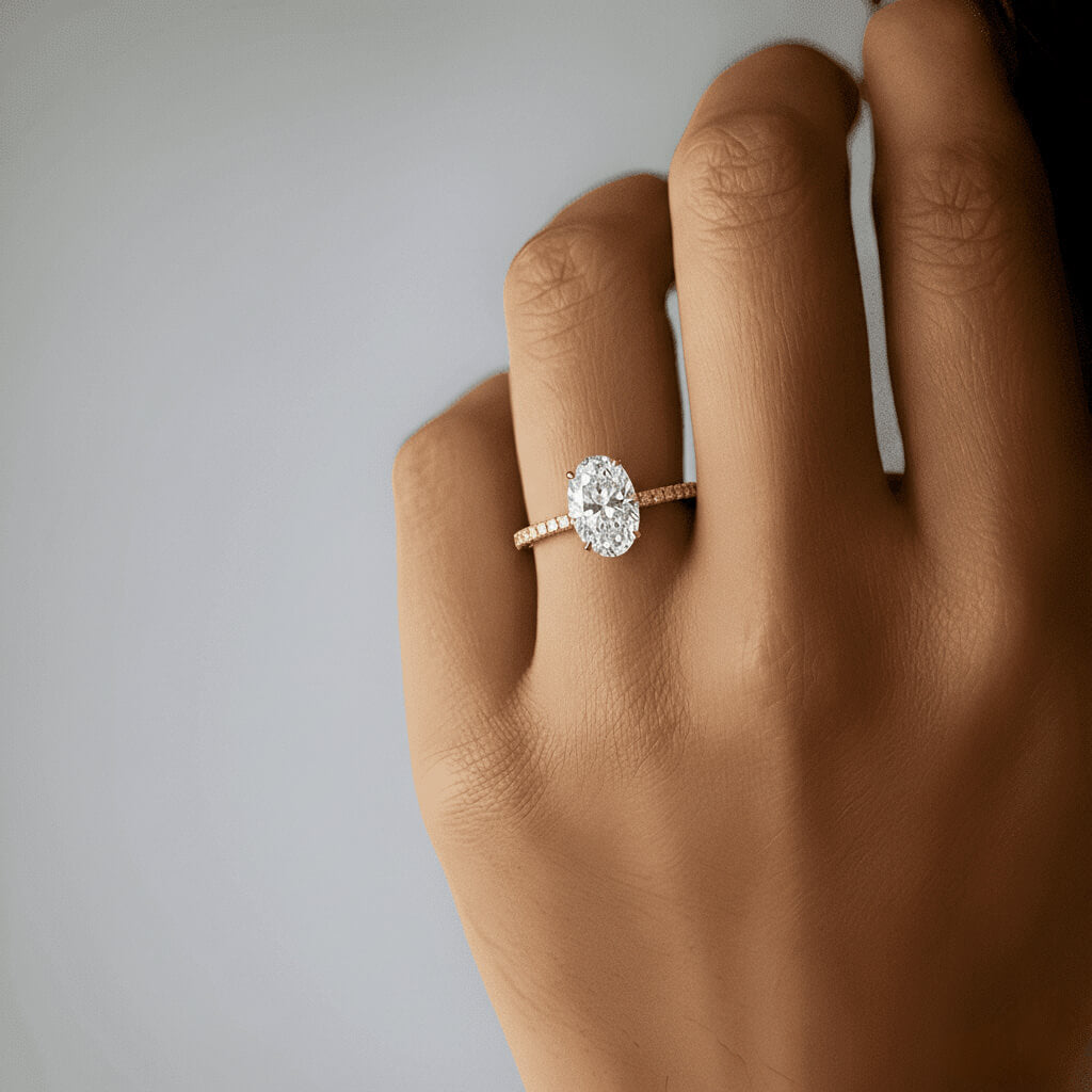 - Stone Cut: Oval-cut solitaire with pavé-accented band