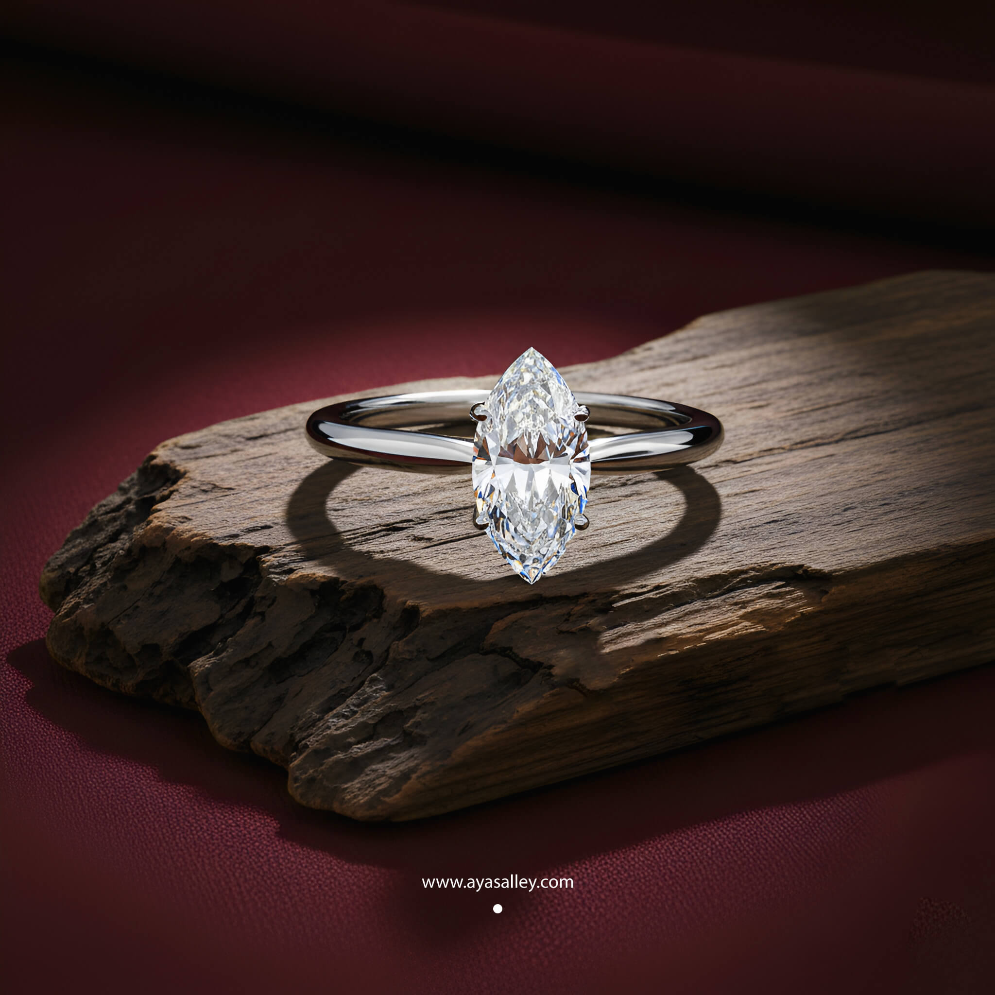 The Marqis Solitaire Ring combines classic design with a sleek, contemporary edge. Its distinctive shape and sparkling finish make it a versatile piece that complements any style, from casual to formal.