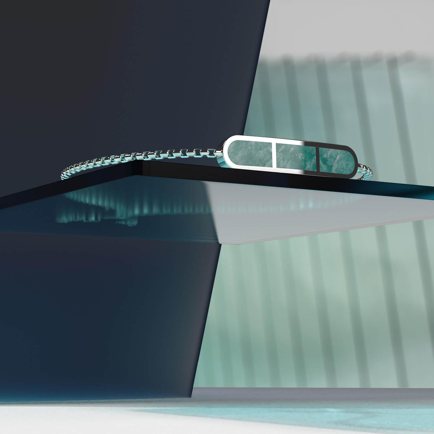 Aster bracelet is a marvel among accessories owing to the pristine stones embedded in its rectangular collet and unparalleled craftsmanship. The design has three significant parts; rim of silver metal encircling the girdle of the stone; the silver chain and hand picked prime quality gemstones. The design has two variants, one having single piece gemstone and other with three pieced gemstones.