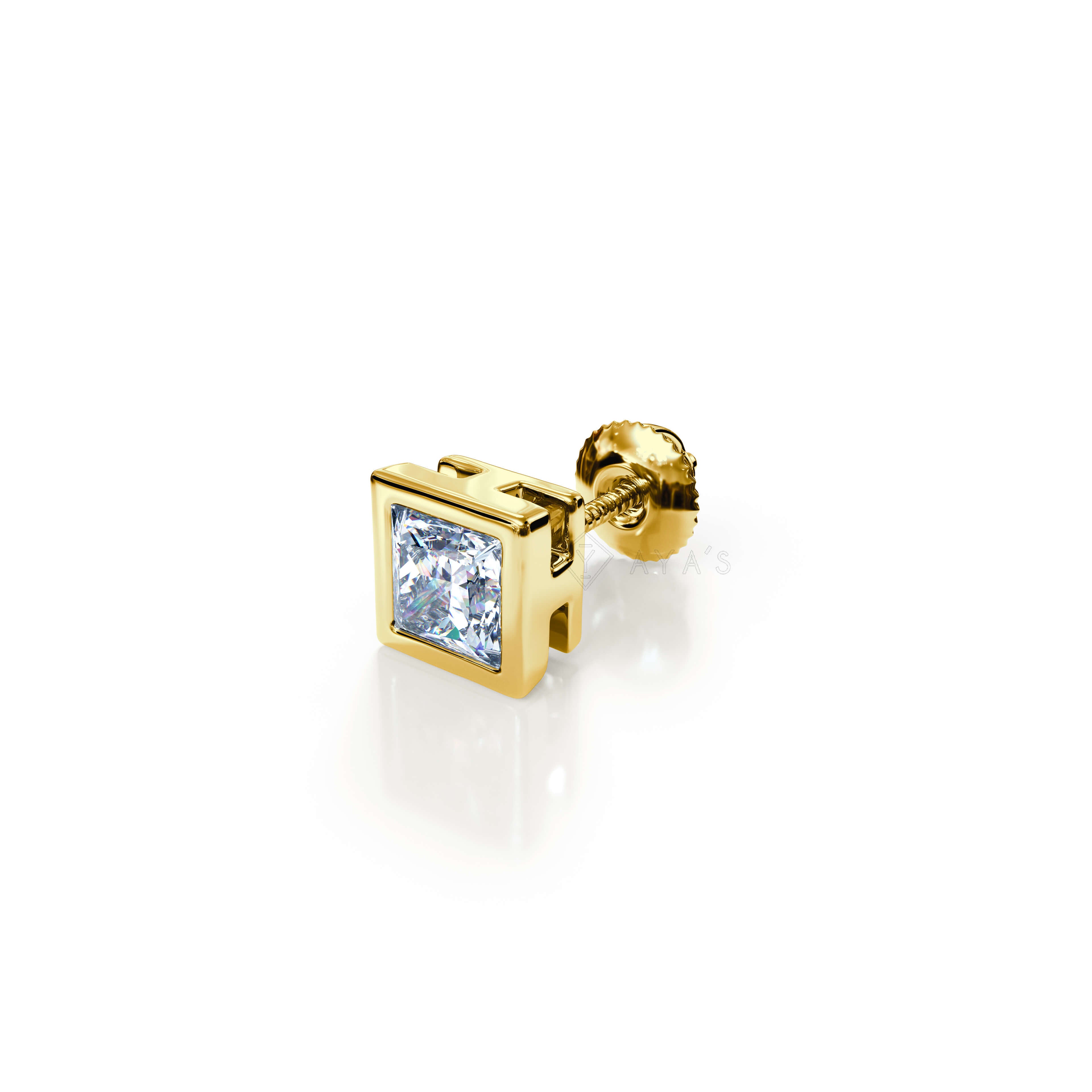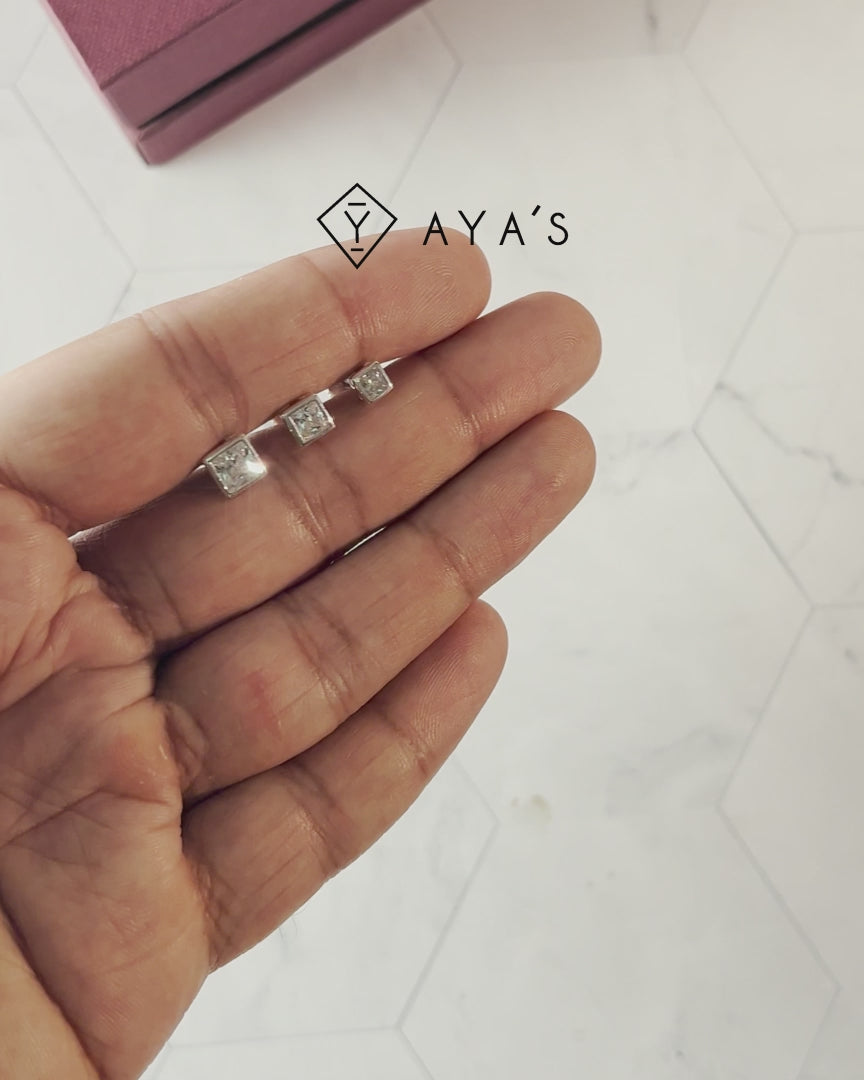 Square Solitaire CZ Stud Earring (Single Stud) in 925 Sterling Silver with AAAA Grade Cubic Zirconia