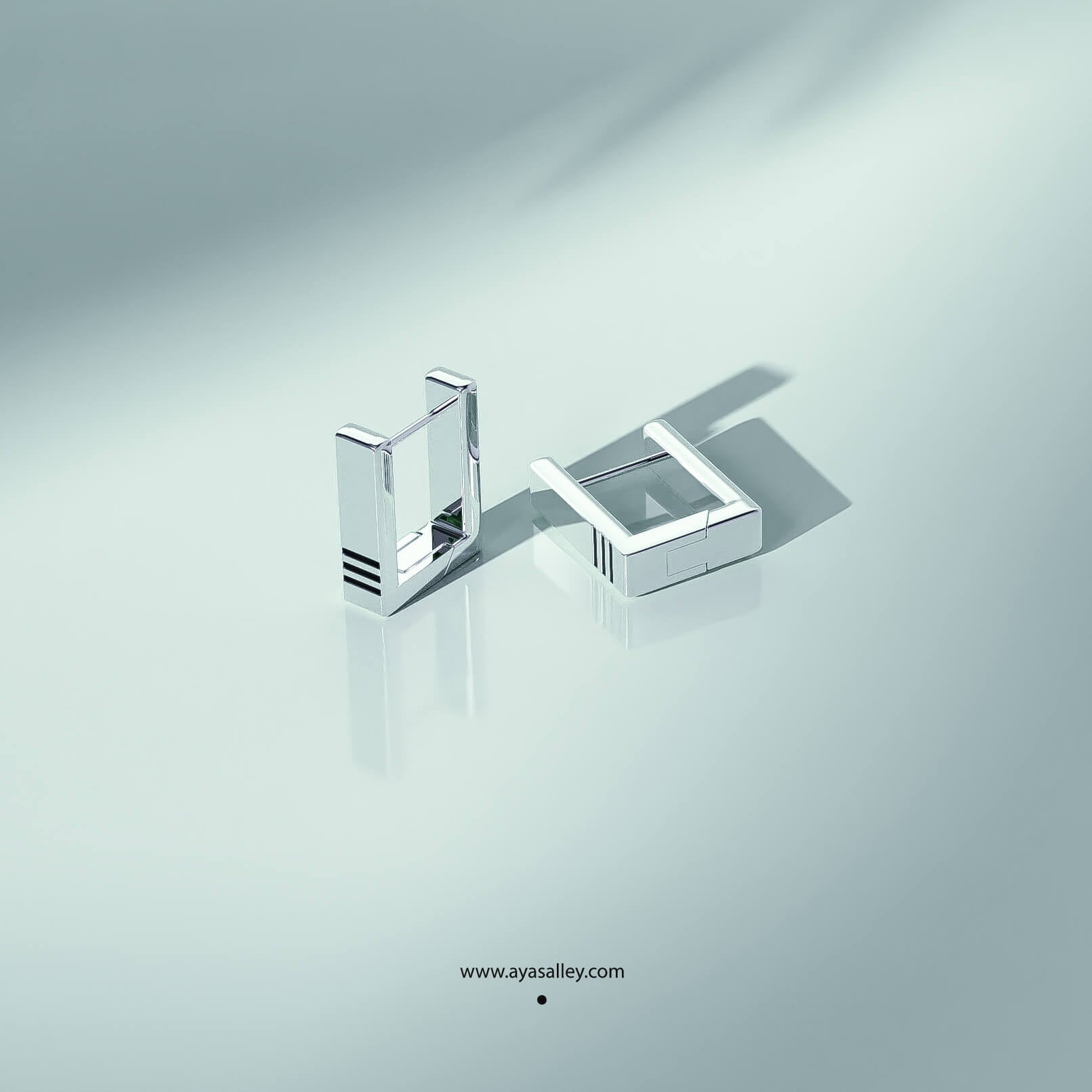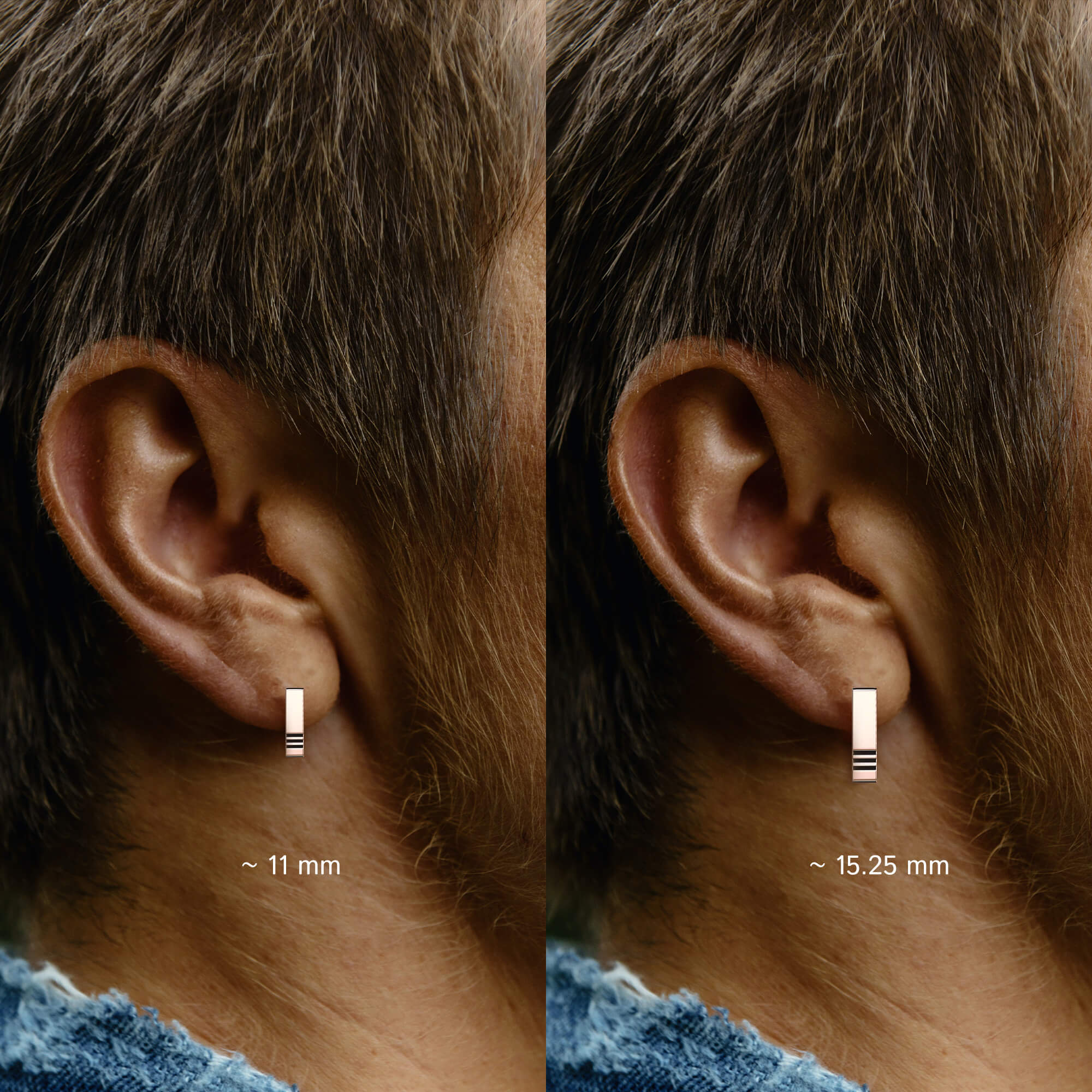 Featuring Rave by AYA'S, a rectangular hoop earring for men in sterling silver distinguished by three parallel stripes at the side in antique finish. The earring enhances your side profile like a sharp jawline. Order it today!