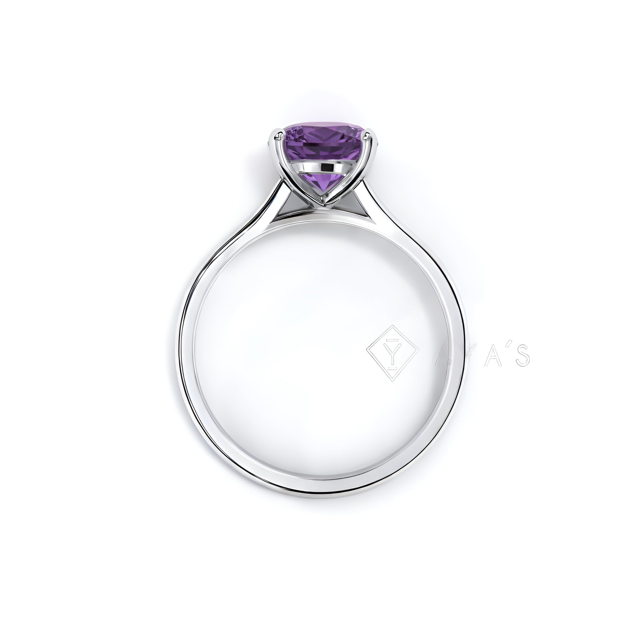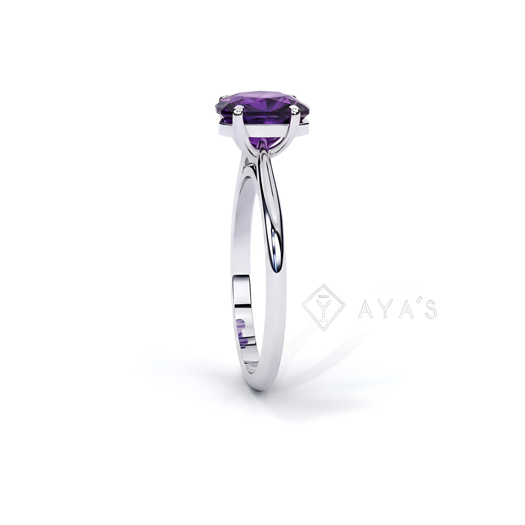 Choose from two exquisite plating options – Rhodium for a cool silver tone or 18K Gold for a warm, golden shimmer. The high-gloss polish enhances the natural violet hue of the Amethyst, making this ring an eye-catching choice for everyday wear or special occasions.
