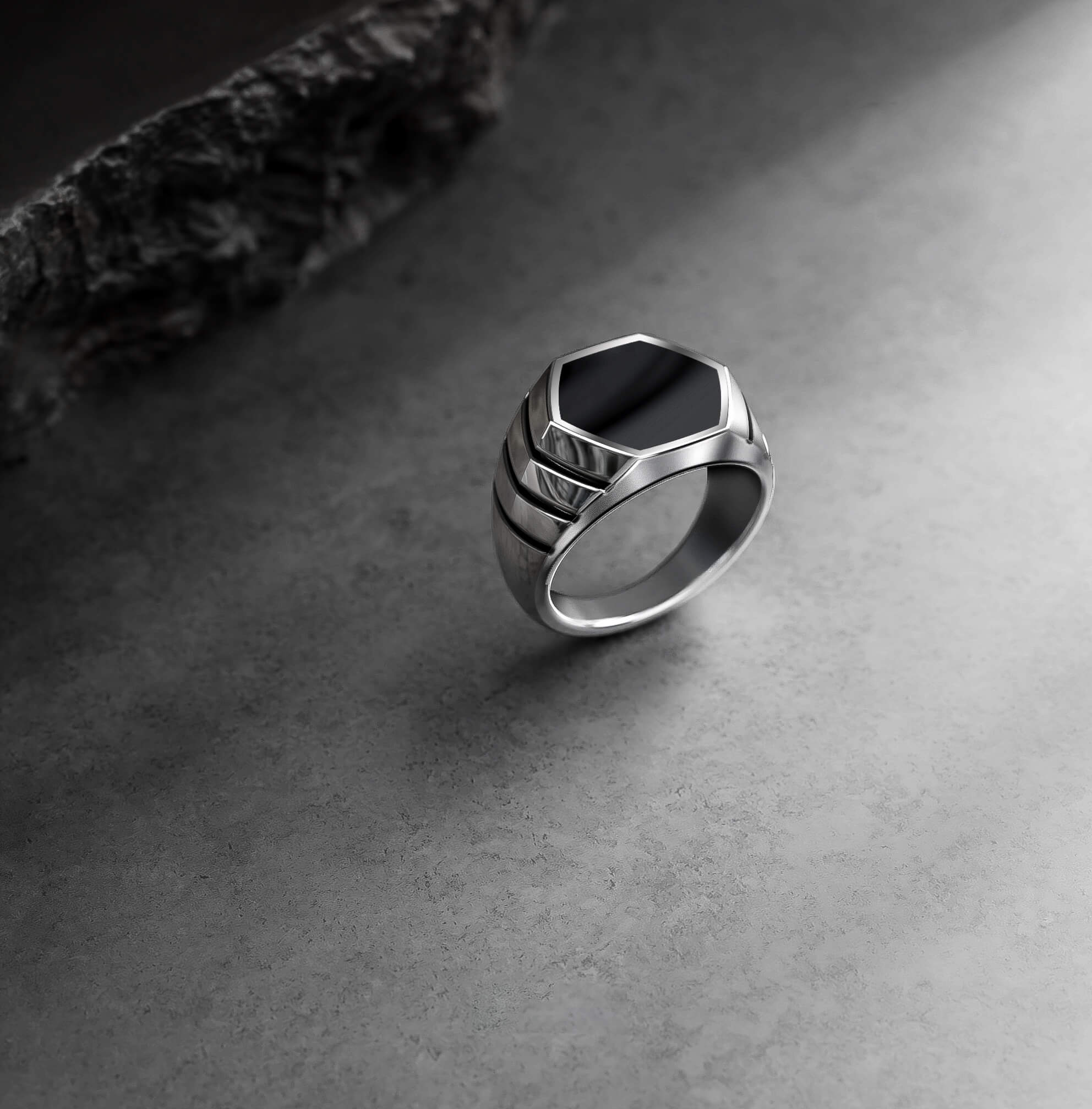 The Magna ring stands as the blatant mark of ecstasy and royalty. Its embellishment features an ever-trendy design that pays homage to creativity. This intricately crafted ring is one of Aya’s most hyped-up pieces of jewelry, promising timeless elegance. Crafted from 925 sterling silver, it boasts a shiny-gloomy yet extraordinarily classy appearance. Choose between two exquisite variants: the Black Onyx Gemstone variant exudes a deep, lustrous black hue, perfect for those who appreciate classic refinement. Alternatively, the Black Ceramic variant offers a modern twist with its sleek and durable material. Both variants are adorned with white rhodium plating for durability and to prevent tarnishing, ensuring each ring retains its refined finishing for years to come.