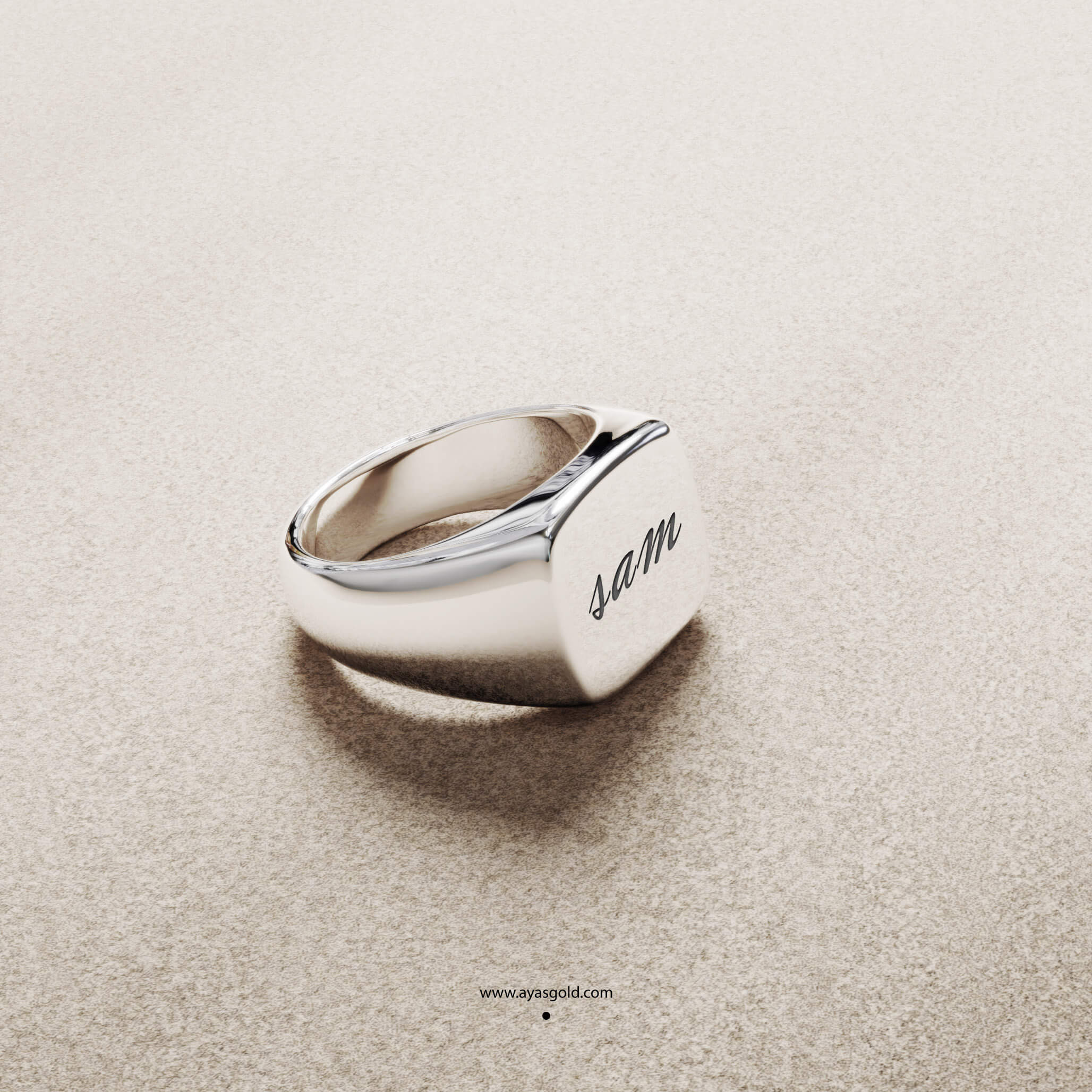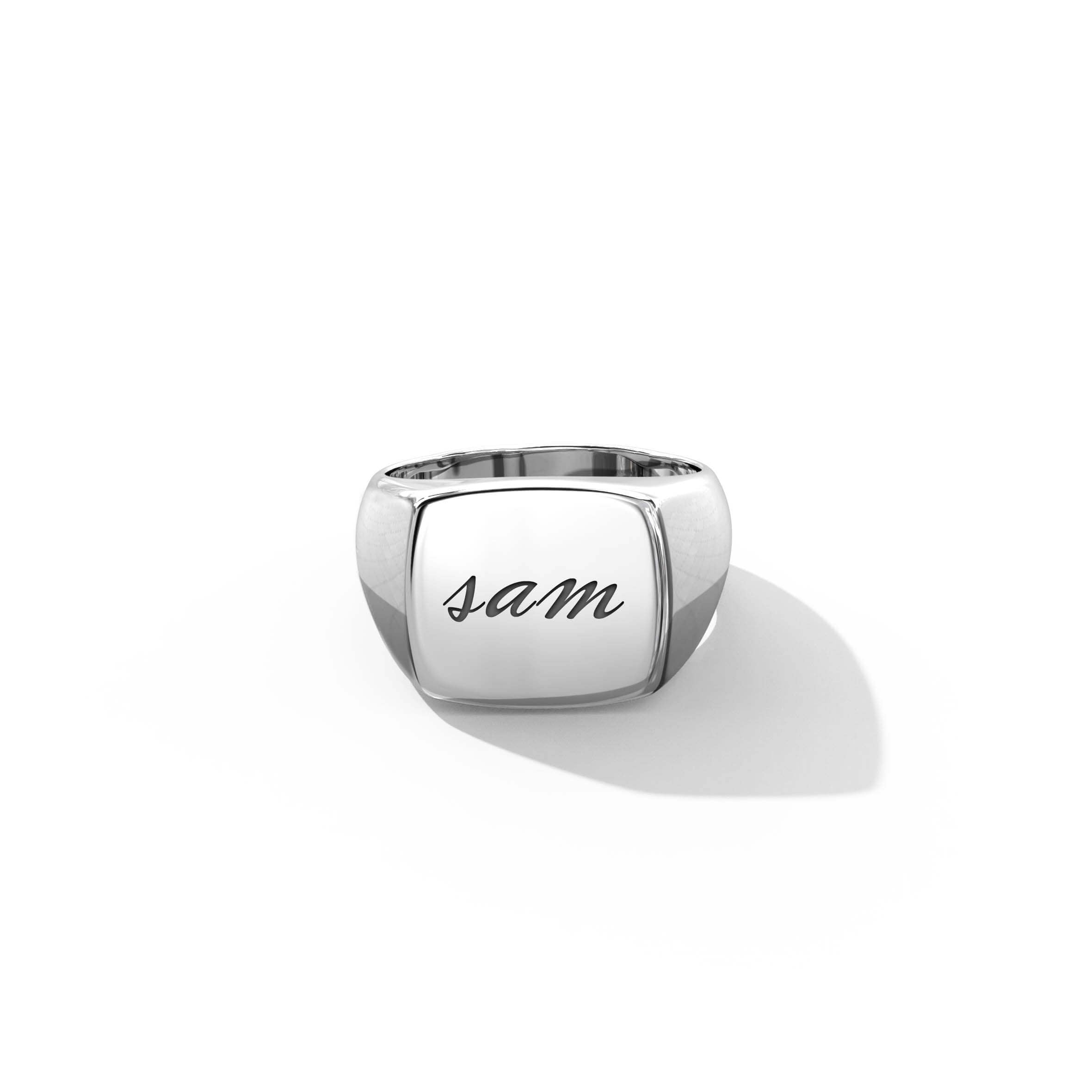 Crafted from the highest quality 925 sterling silver, the Personalised Plain Ares Ring boasts the same durability and refined aesthetic as its predecessor. Its sleek rectangular silhouette is enhanced with a rhodium electroplated finish, offering a stunning gloss and exceptional resilience against everyday wear.