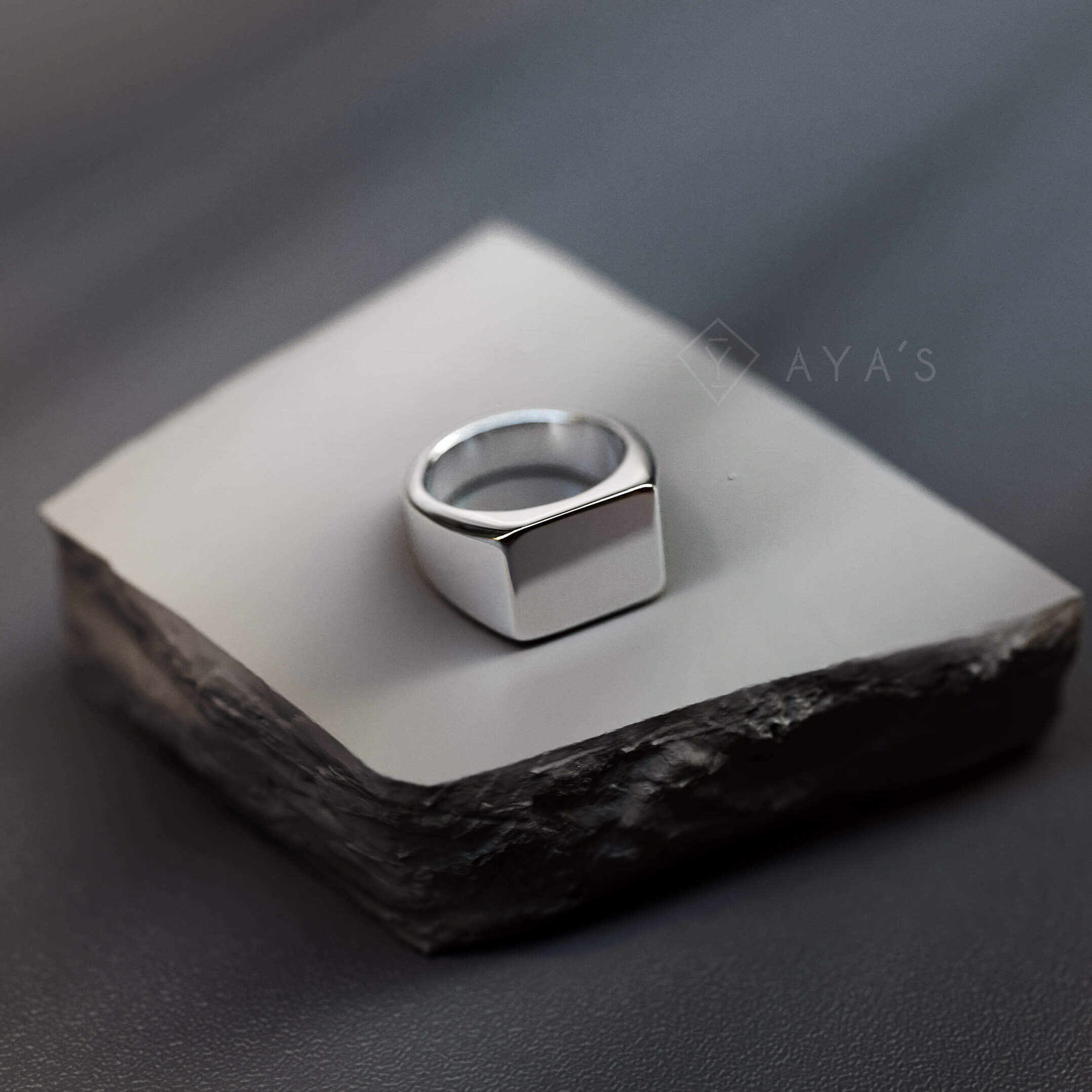 The Plain Regal Men's Ring is a bold and sophisticated statement piece, designed for the modern man who appreciates refined style. Crafted from high-quality 925 Sterling Silver, this signet ring features a sleek, rectangular-shaped plain collet that gives it a clean and timeless look. The ring is rhodium electroplated, ensuring both durability and a lustrous finish that stands the test of time. Its glossy polish further enhances its sophisticated appeal, making it a versatile addition to any collection.