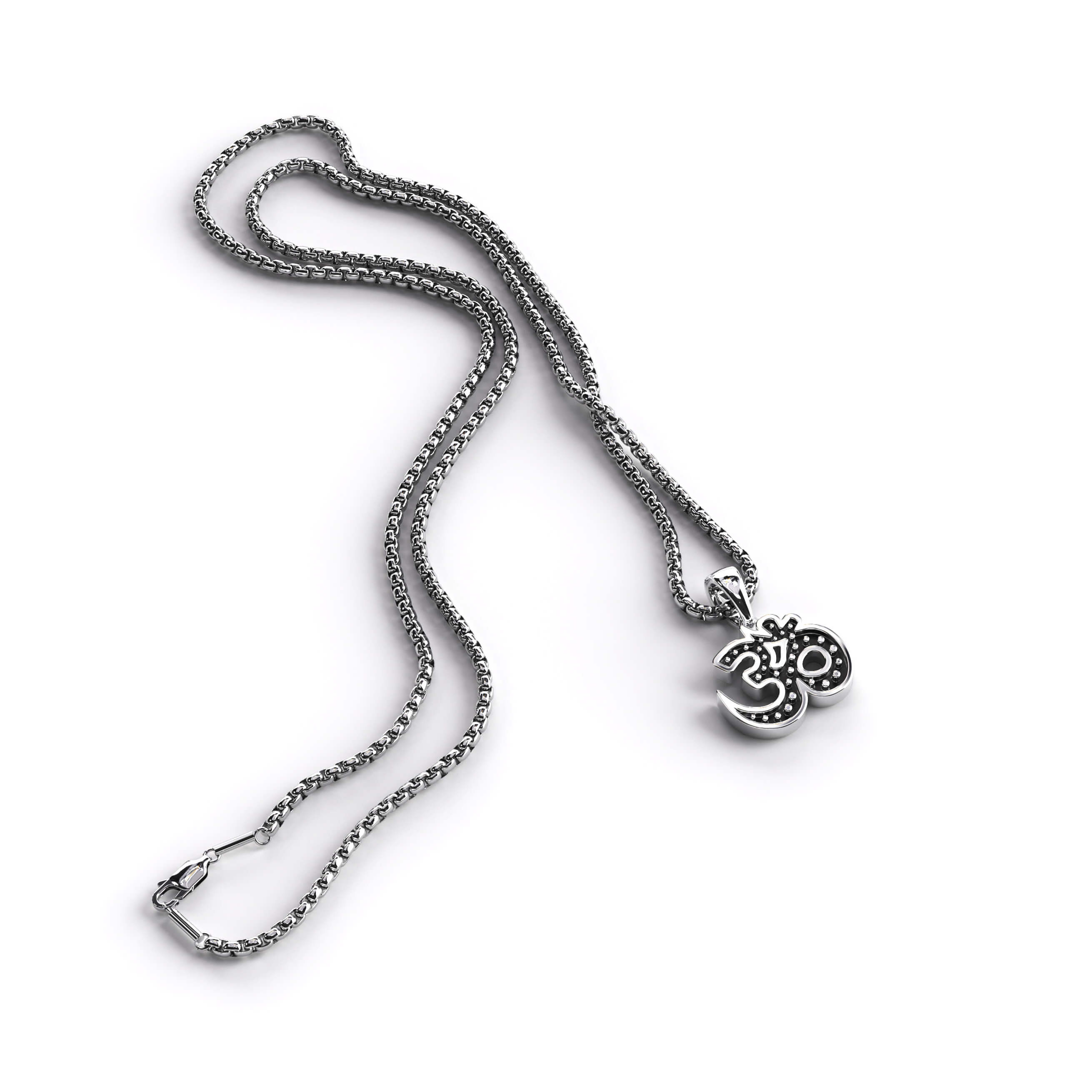 Complete your look with our optional 2mm silver curved box chain, meticulously designed to complement the Om Pendant with effortless grace. The sleek and stylish chain adds a touch of sophistication, allowing you to wear this symbol of spiritual enlightenment with confidence and style.