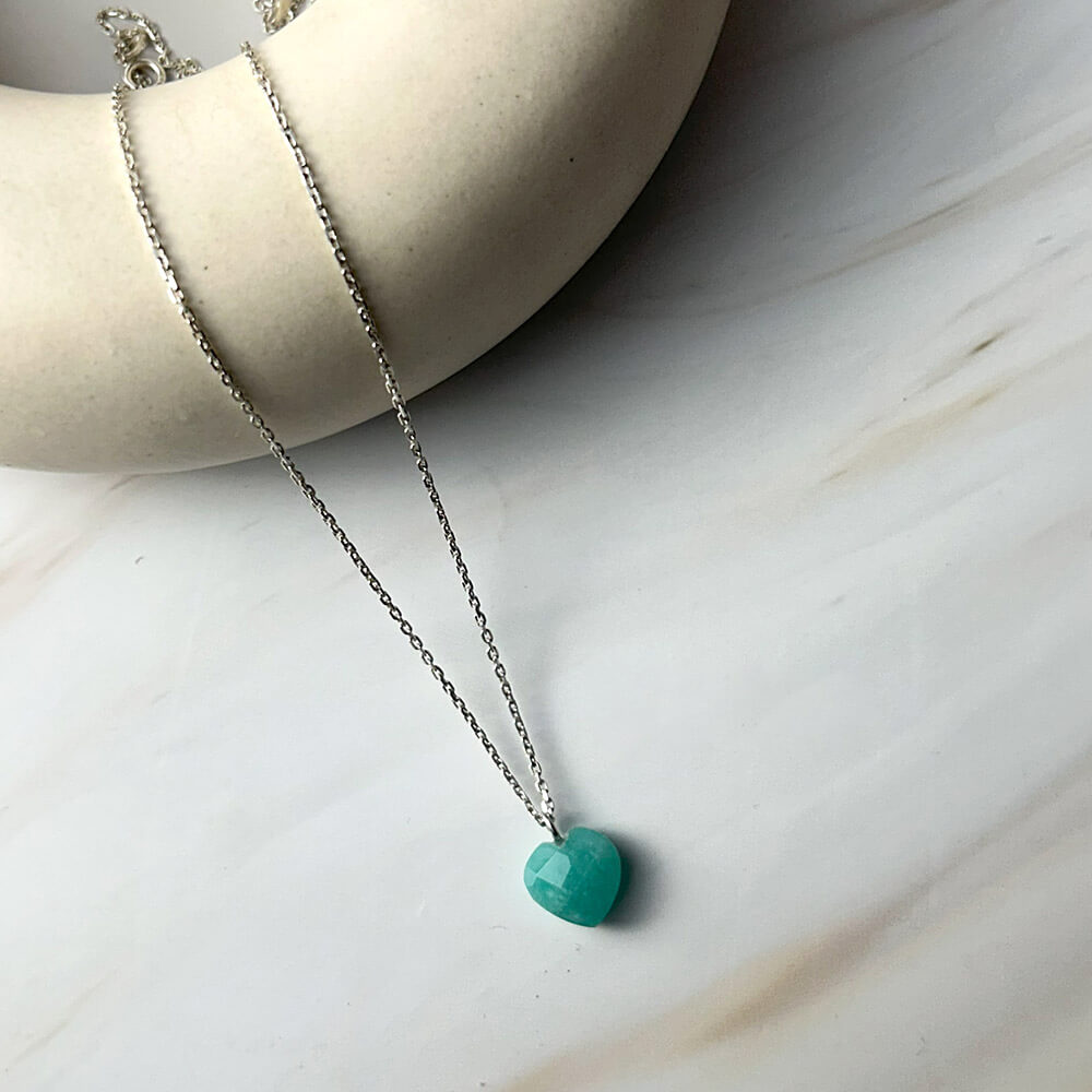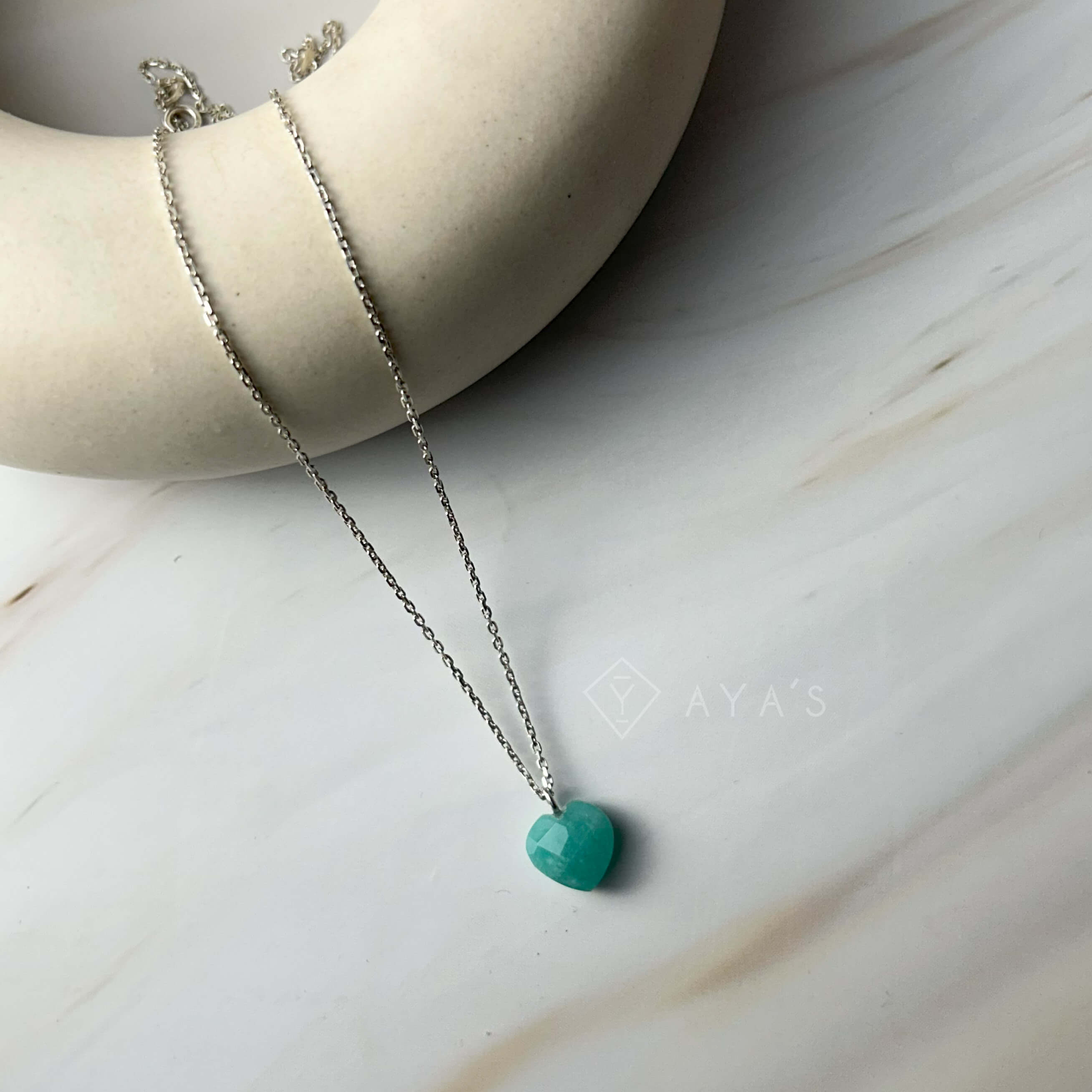 Discover the natural beauty of Amazonite with our GII Certified Heart Pendant. This stunning gemstone pendant is delicately crafted and paired with a 925 silver chain. Feel confident in the authenticity and quality of this unique necklace. Perfect for adding a touch of elegance to any outfit.