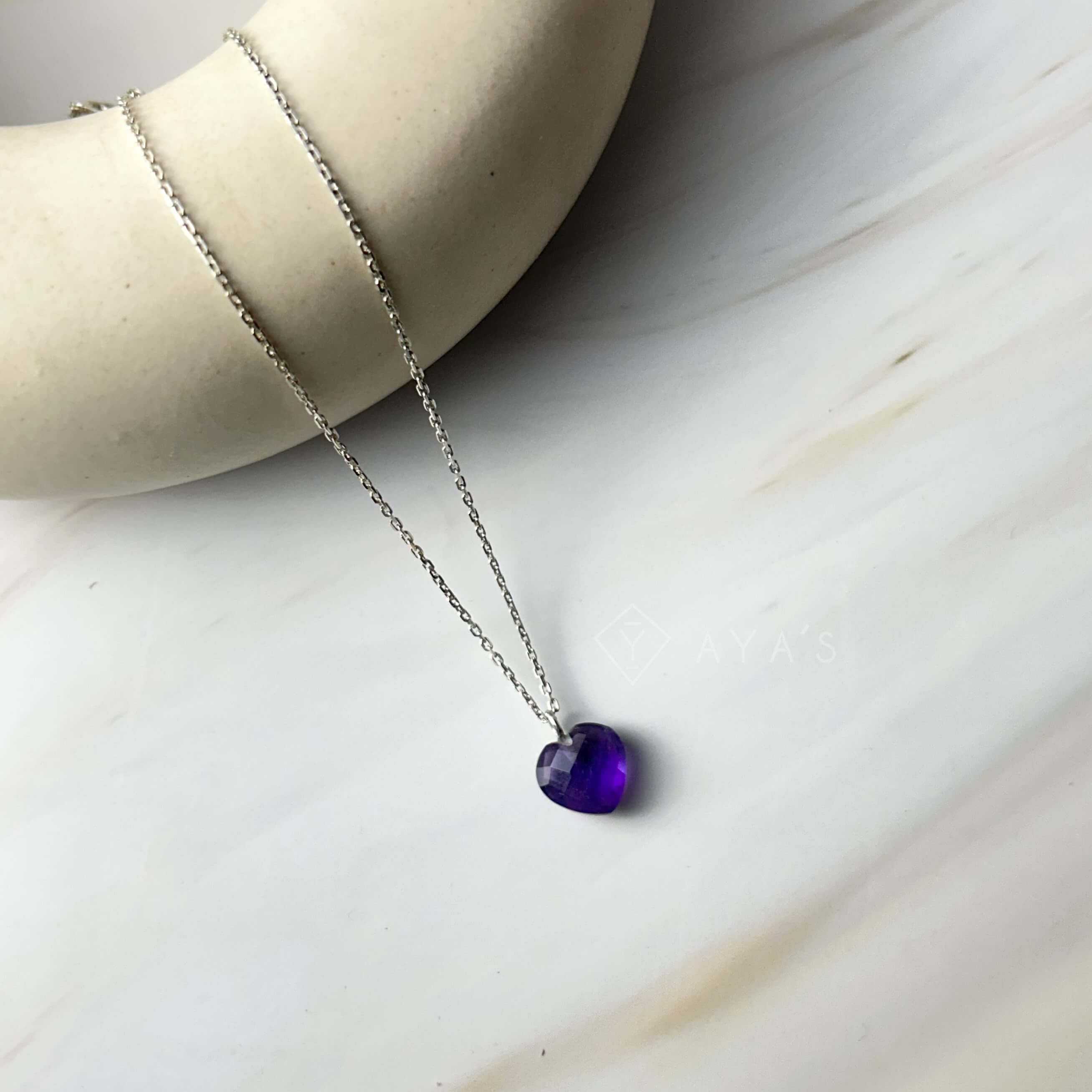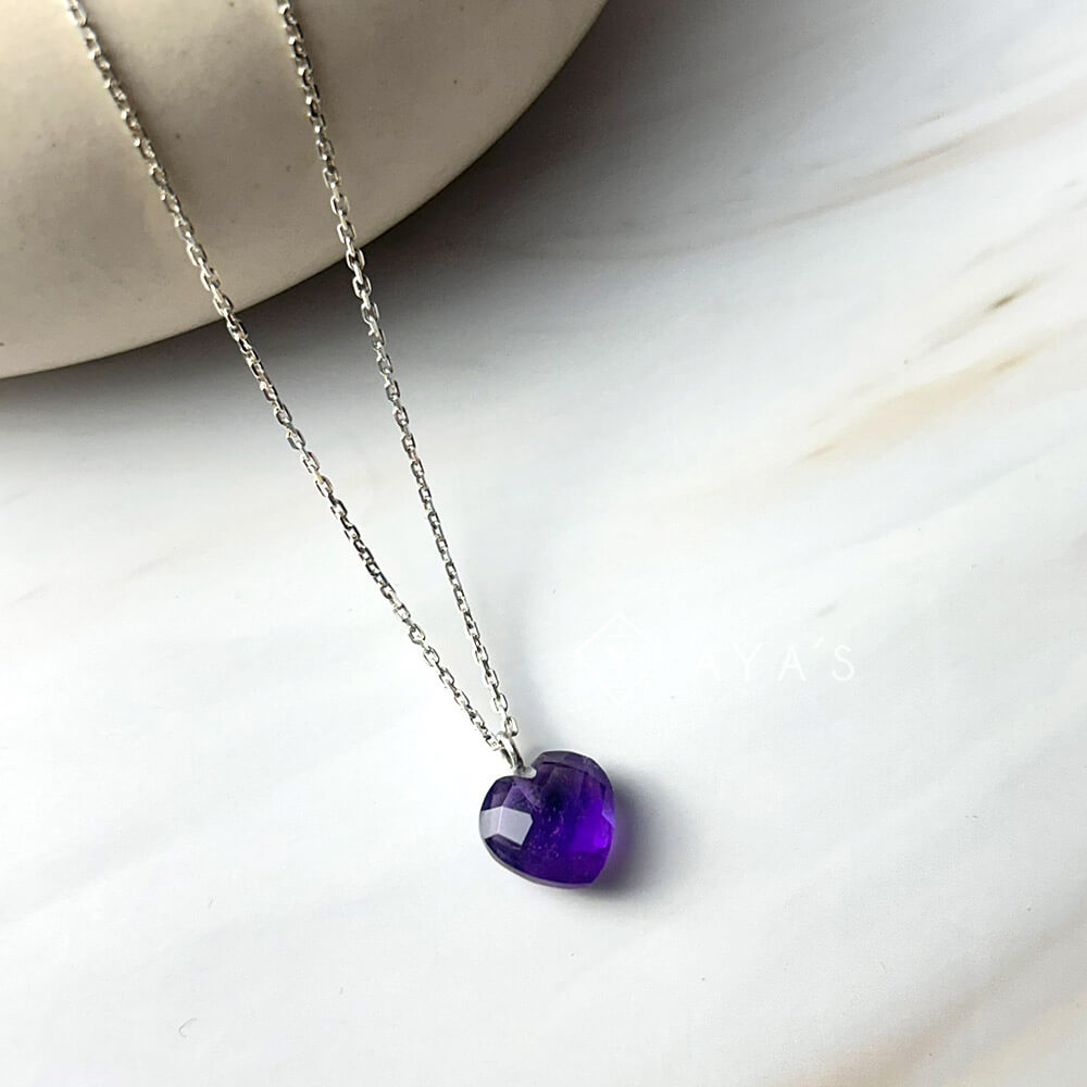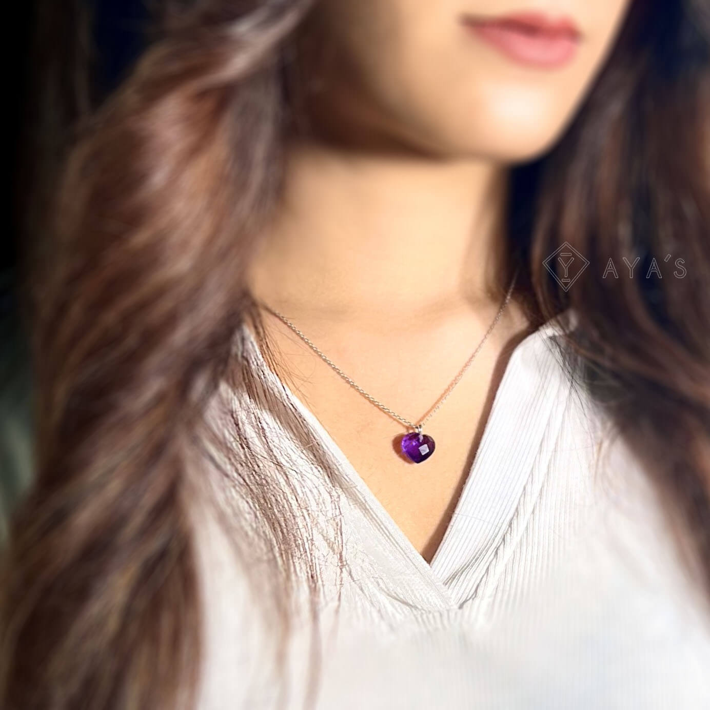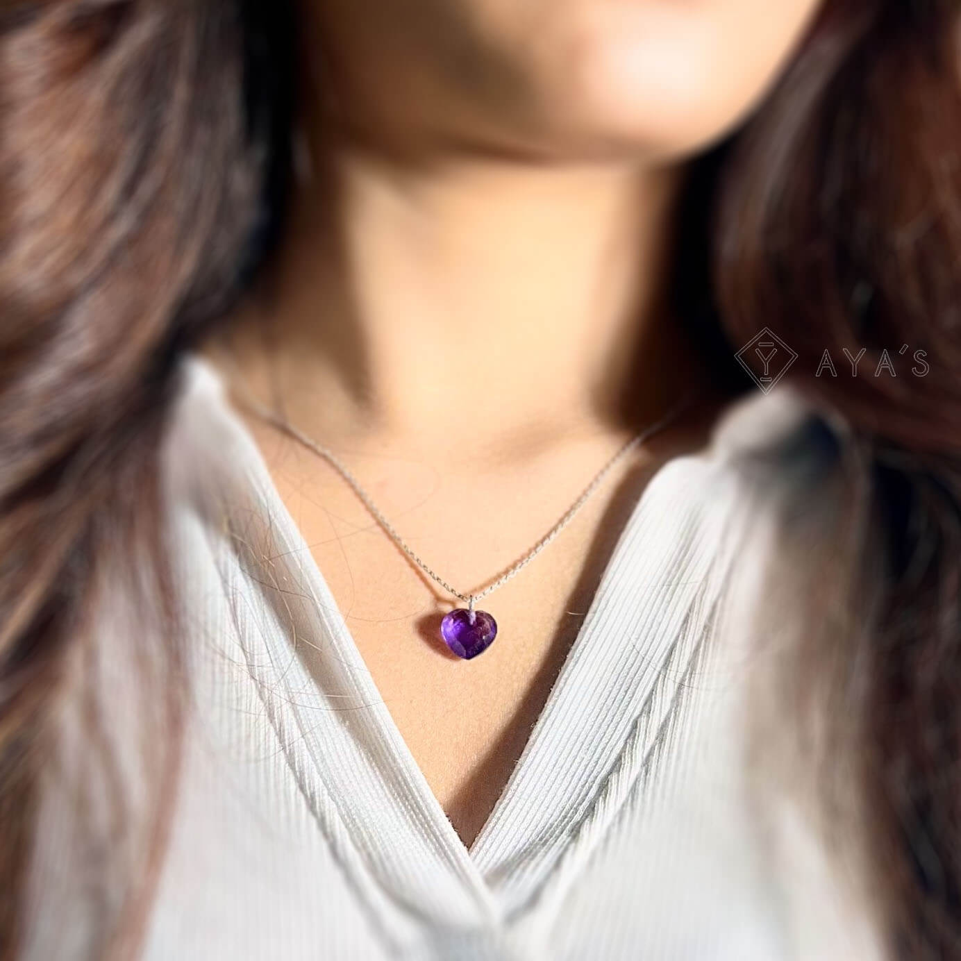 This GII certified heart-shaped amethyst pendant is a stunning natural gemstone necklace. With its 925 silver chain, it is perfect for enhancing any outfit. Experience the beauty and elegance of authentic amethyst with this high-quality, expertly crafted pendant.