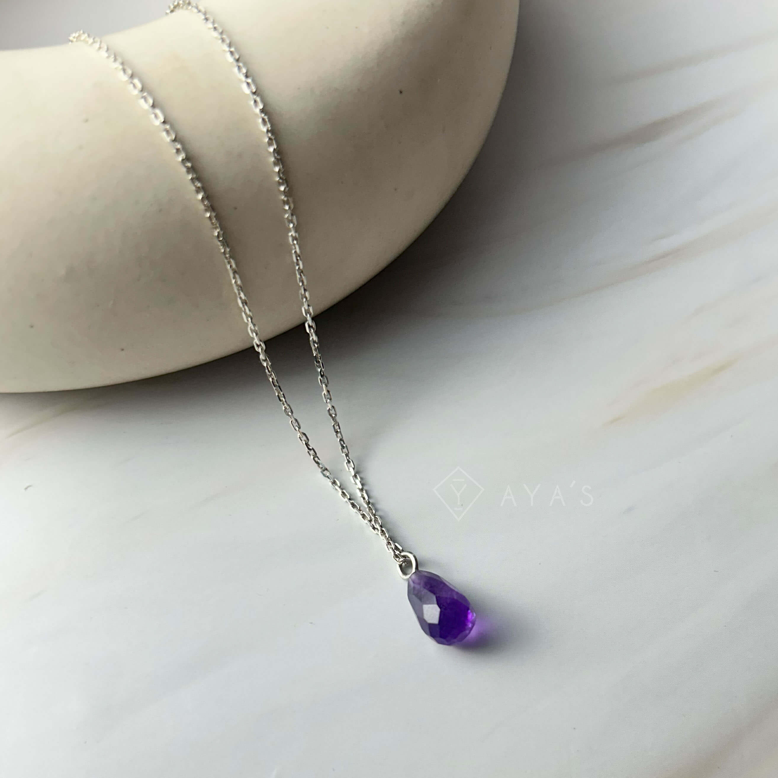 925 Silver GII Certified Amethyst Tear Drop Natural Gemstone Pendant Necklace