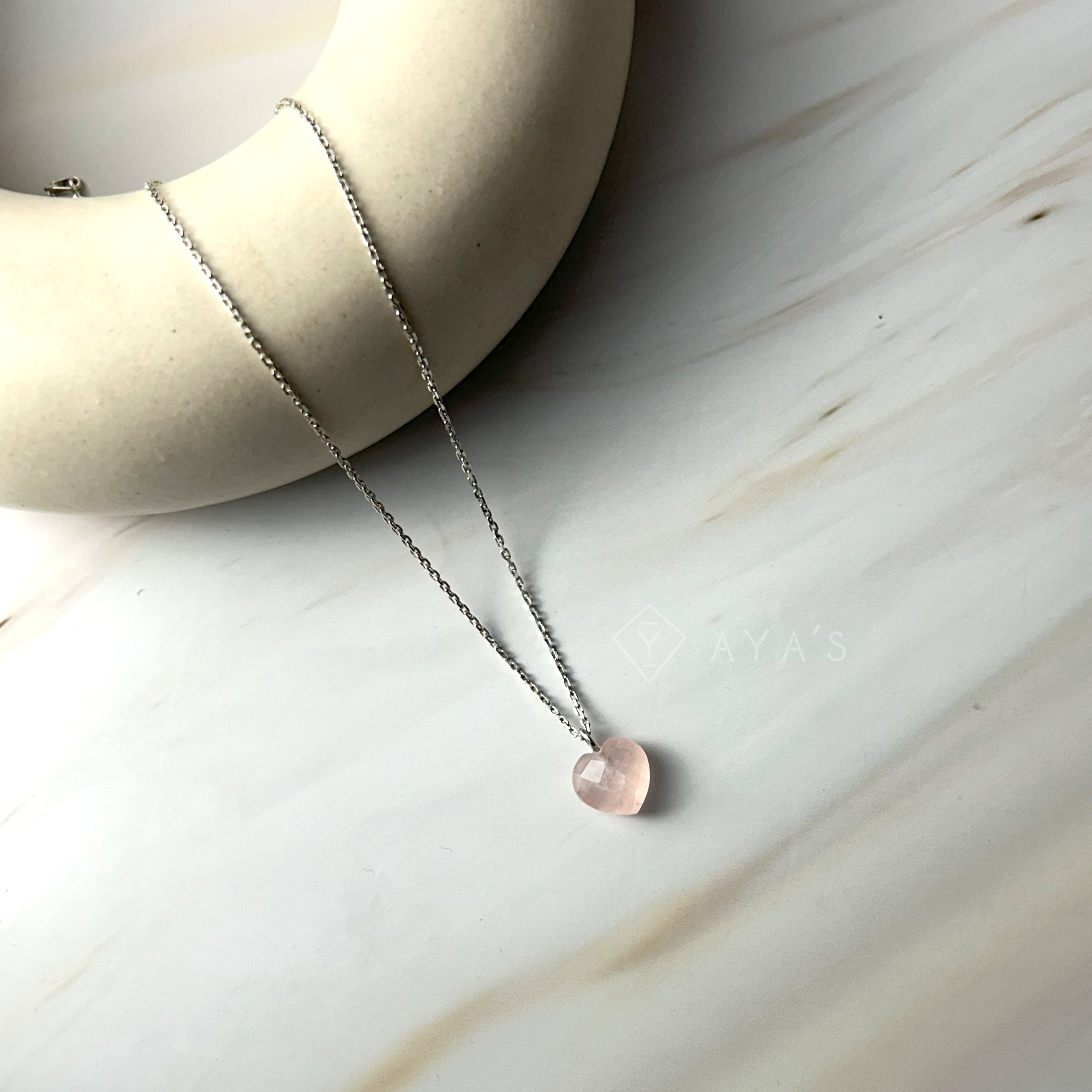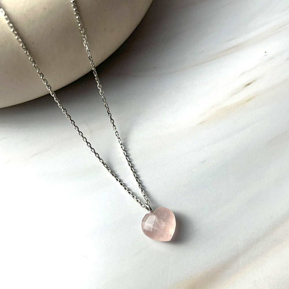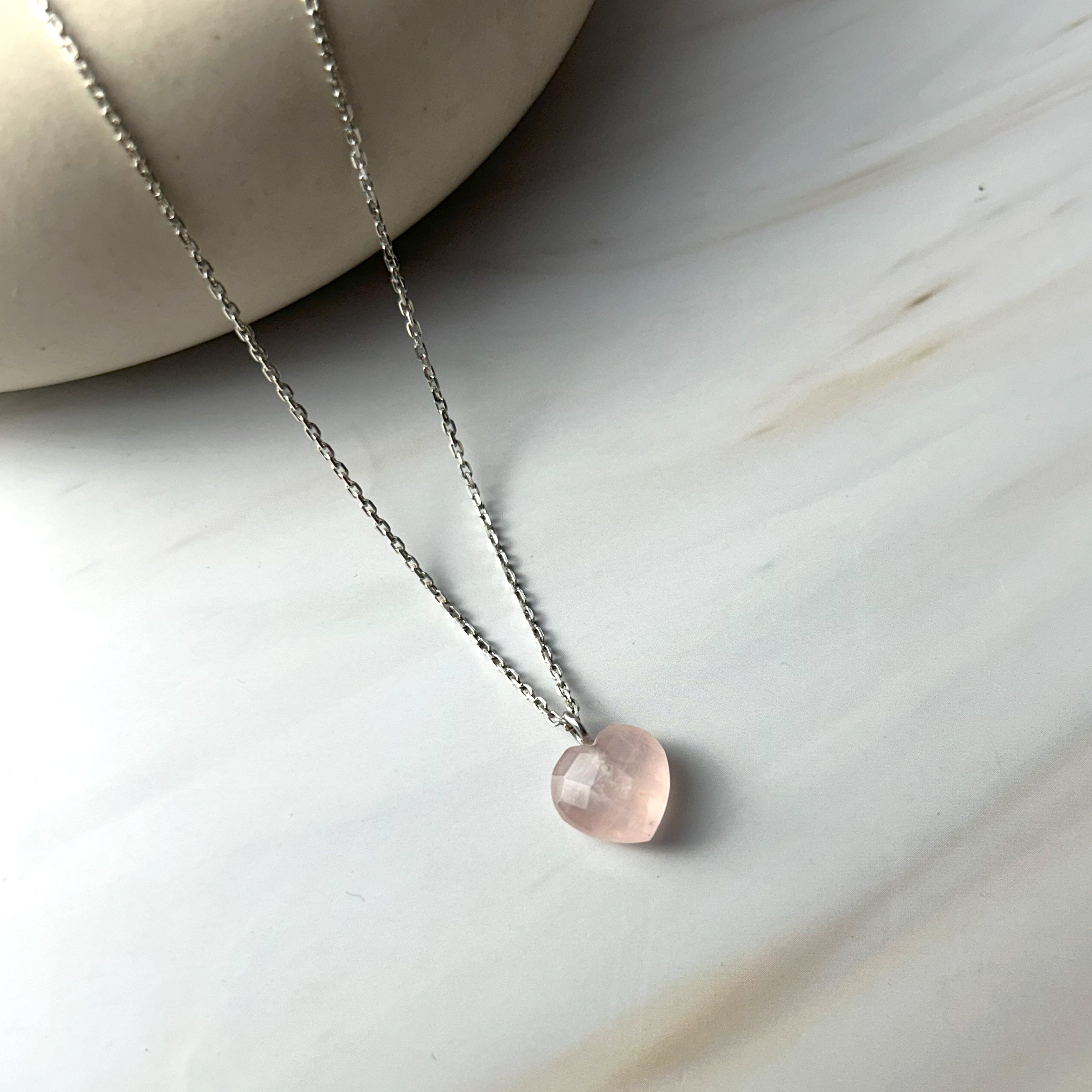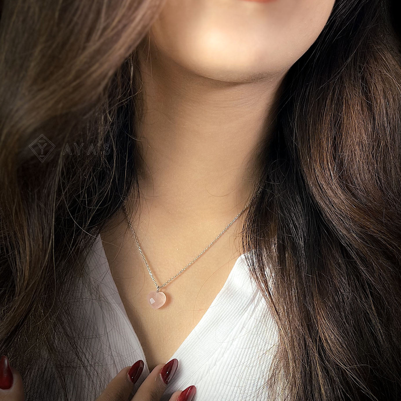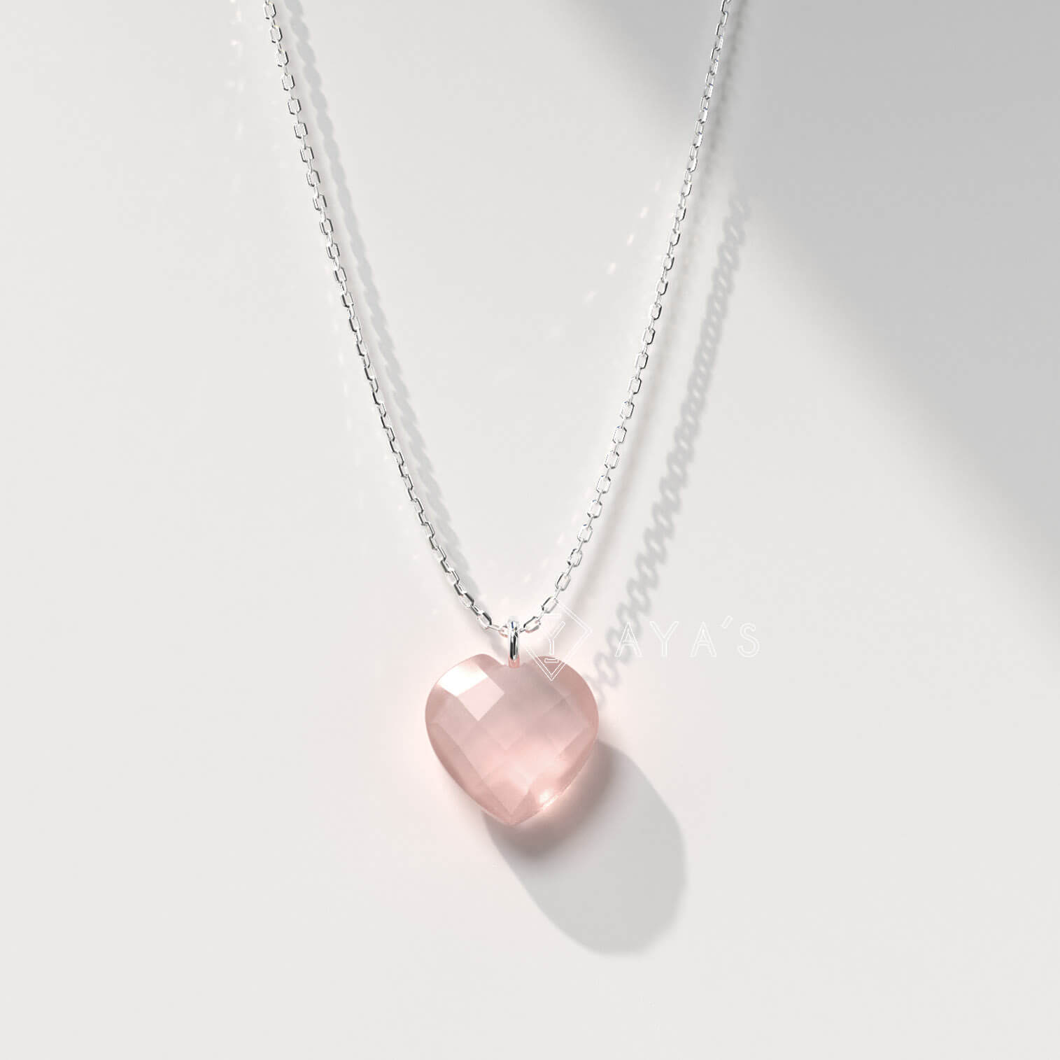 This elegant pendant necklace features a GII certified heart-shaped natural rose quartz gemstone, set in a 925 sterling silver chain. Add a touch of beauty and sophistication to any outfit with this certified gemstone pendant. A stunning addition to any jewelry collection.