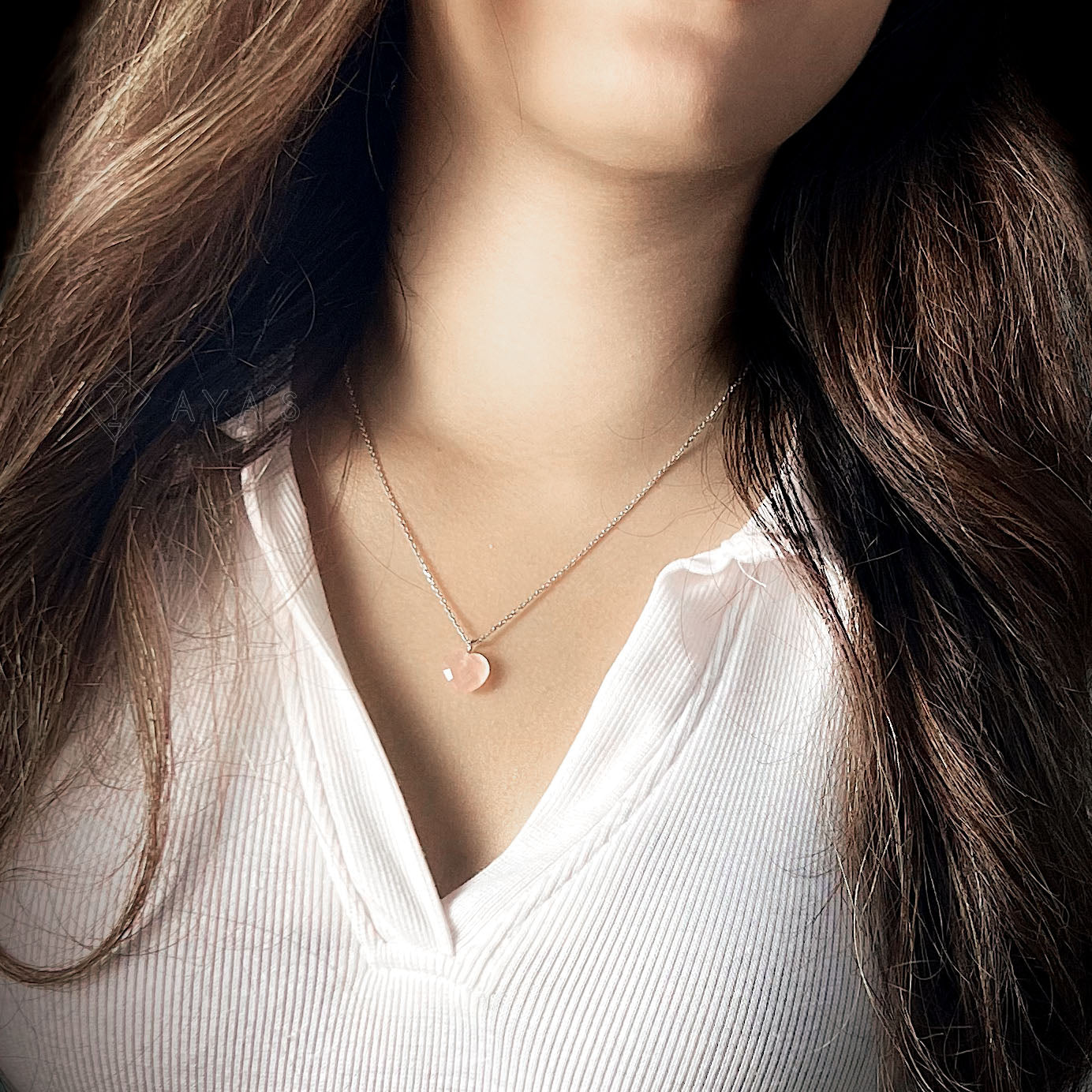 925 Silver GII Certified Rose Quartz Heart Natural Gemstone Pendant Necklace