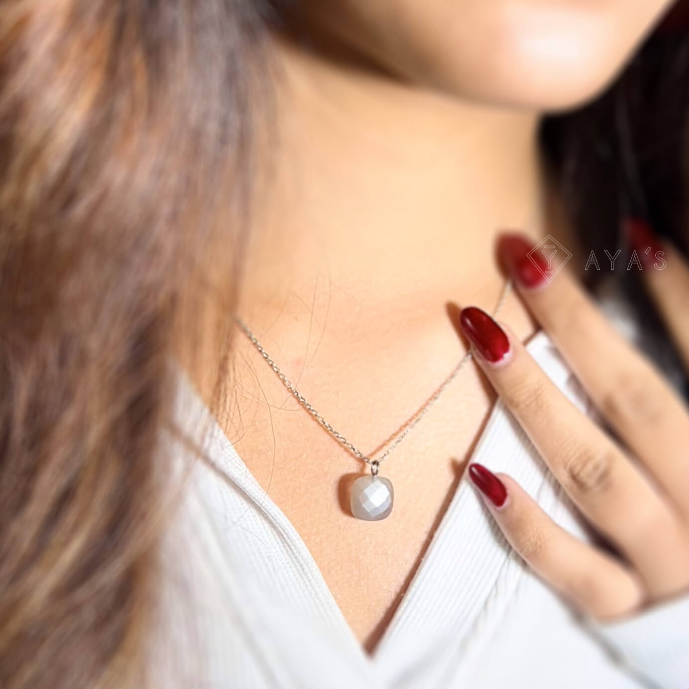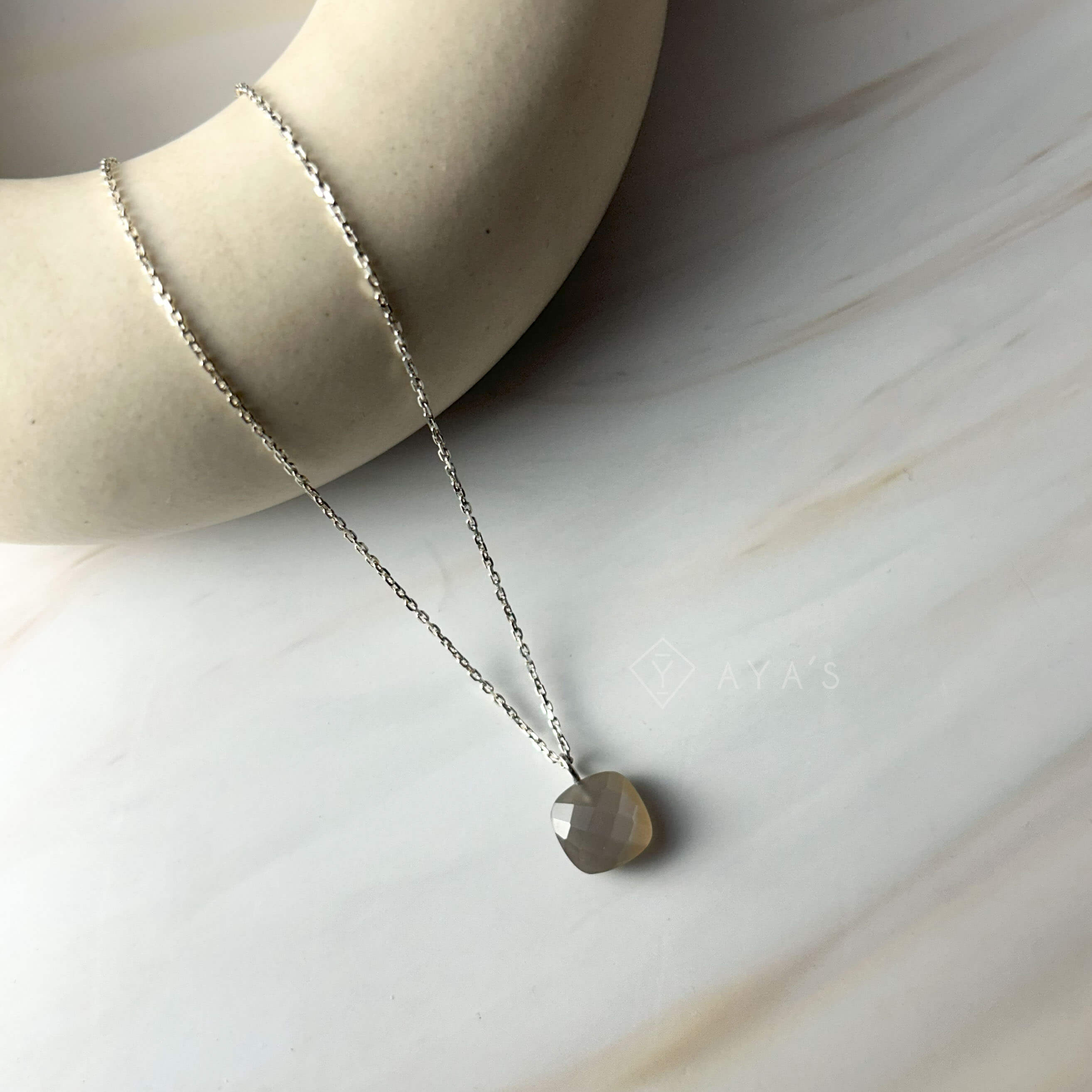 This 925 Silver GII Certified Grey Moonstone Cushion Natural Gemstone Pendant Necklace features a GII certified cushion-shaped grey moonstone pendant that is expertly crafted from natural gemstone, providing a beautiful and unique piece. It comes with a 925 silver chain, adding an elegant touch to any outfit.