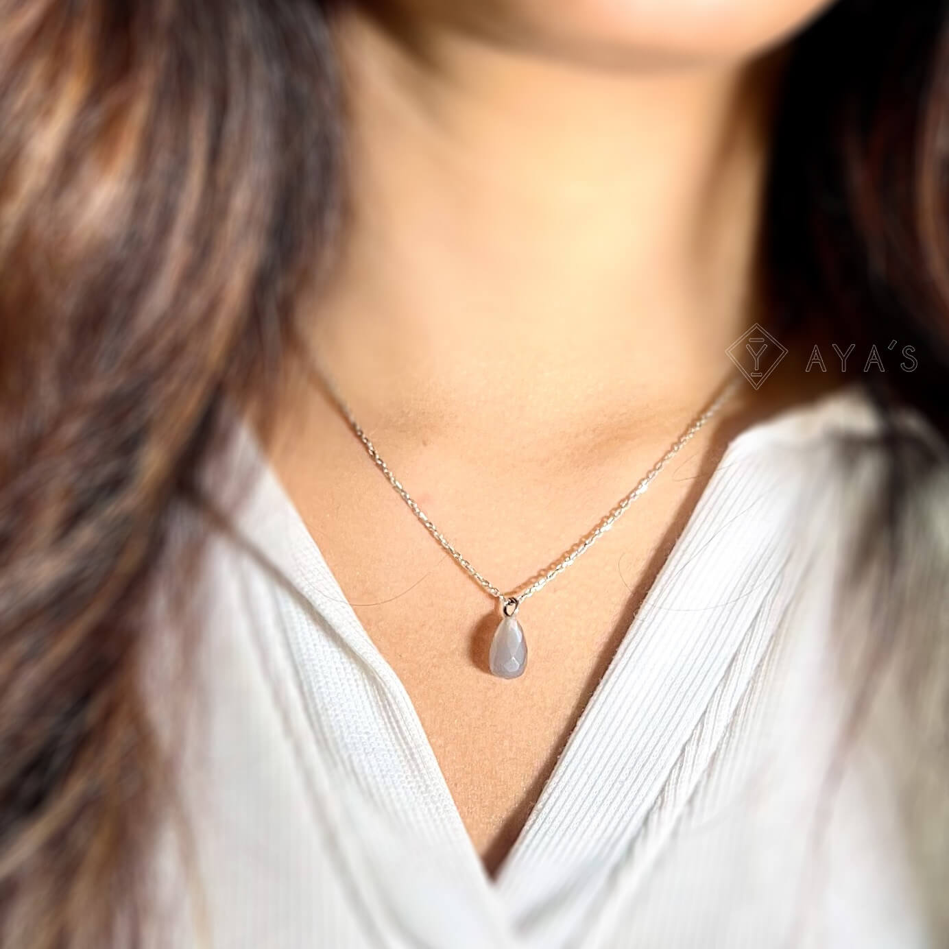 This GII certified pendant necklace features a tear drop-shaped grey moonstone, known for its natural beauty and healing properties. Crafted with 925 silver chain, add a touch of elegance to any outfit while reaping the benefits of this stunning gemstone. Scientifically proven to promote emotional balance and clarity.