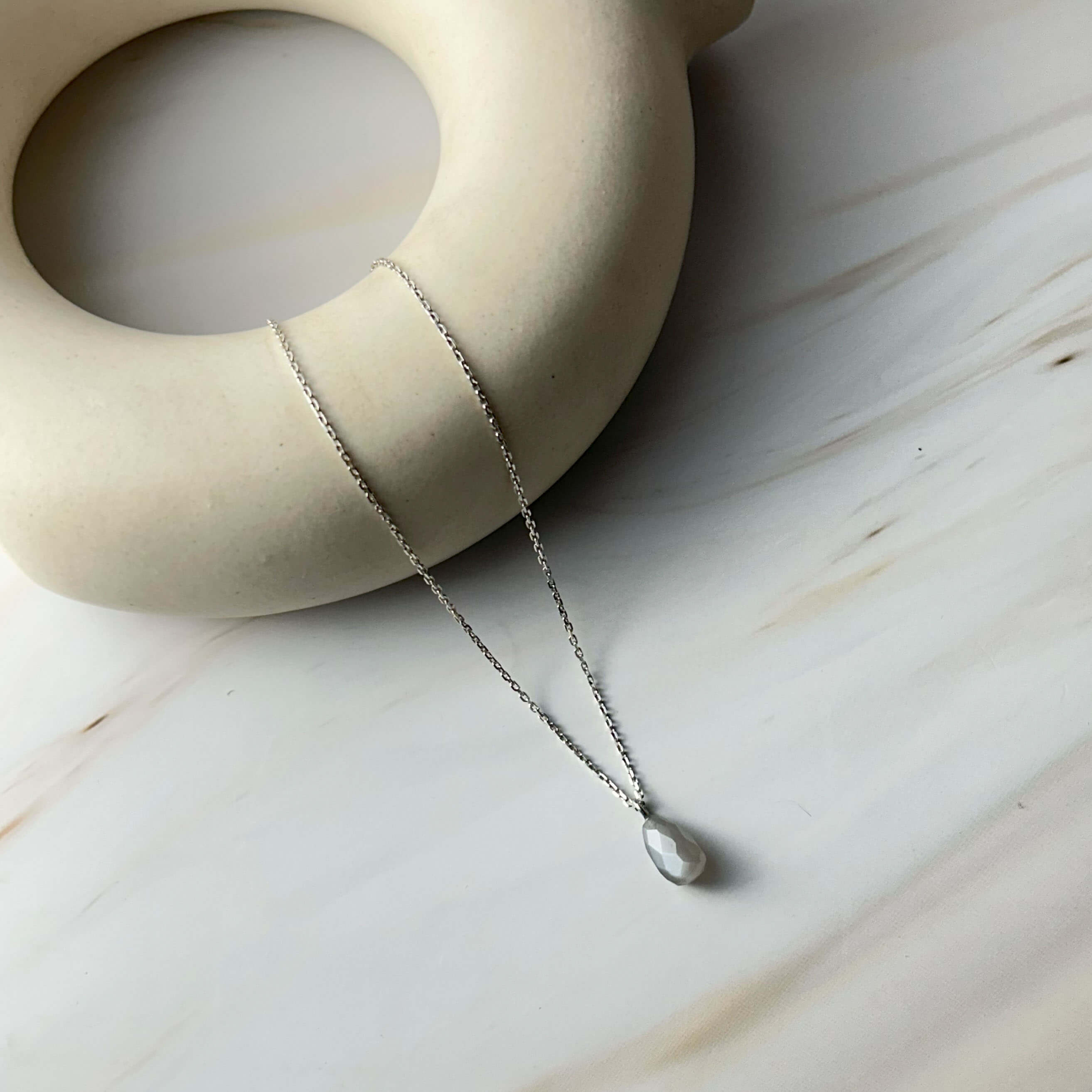925 Silver GII Certified Grey Moonstone Tear Drop Natural Gemstone Pendant Necklace