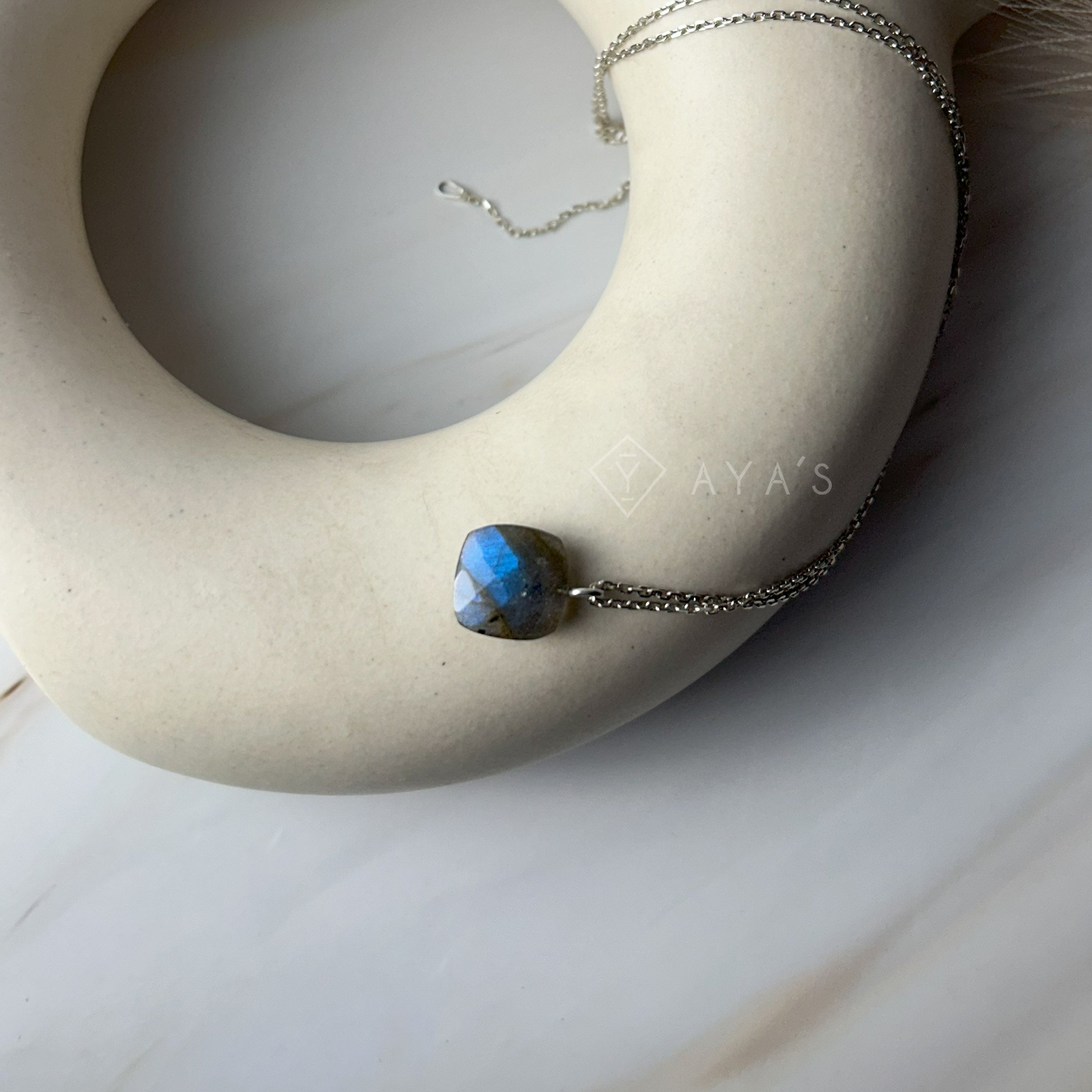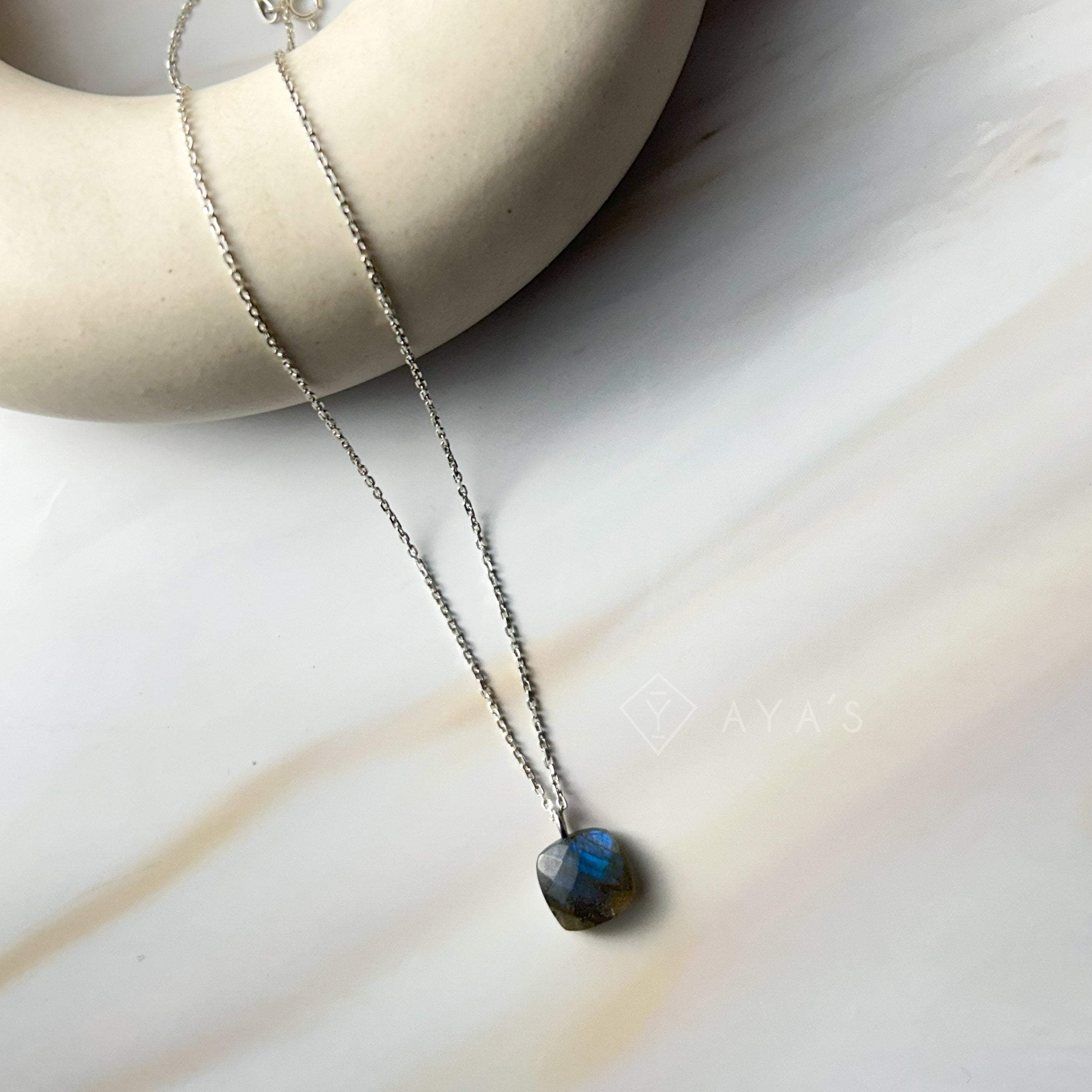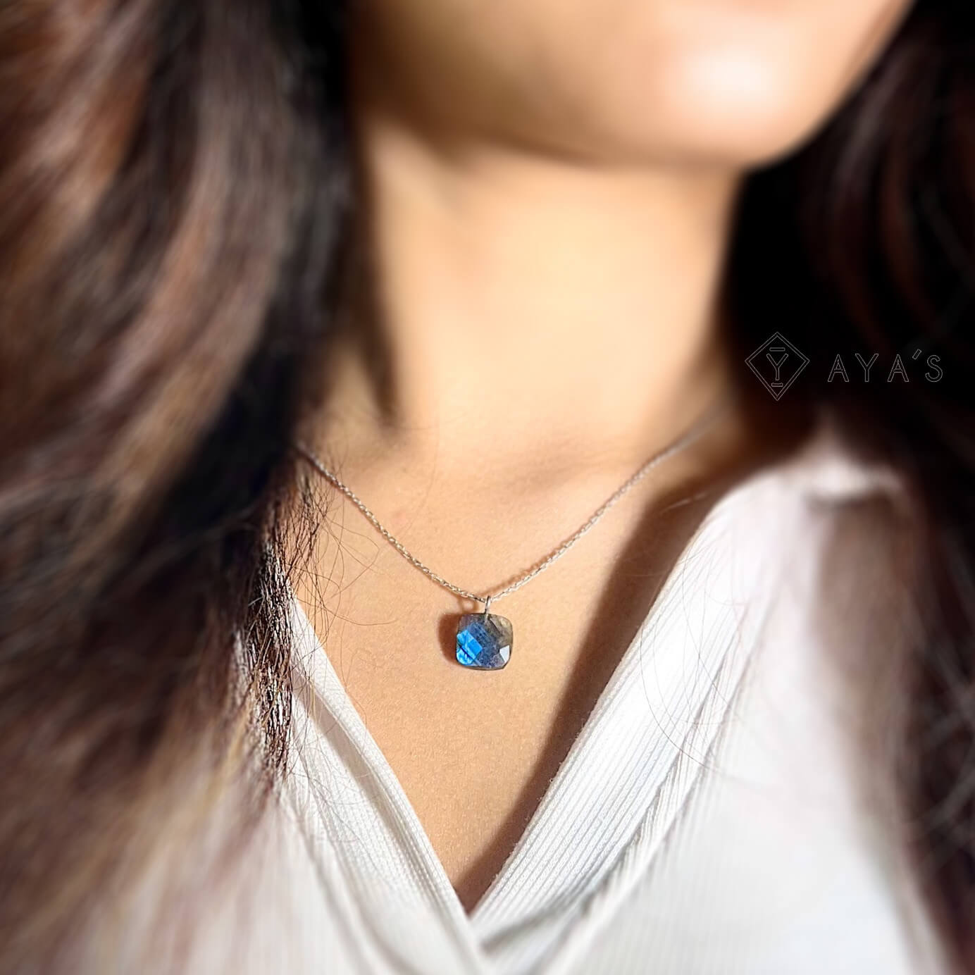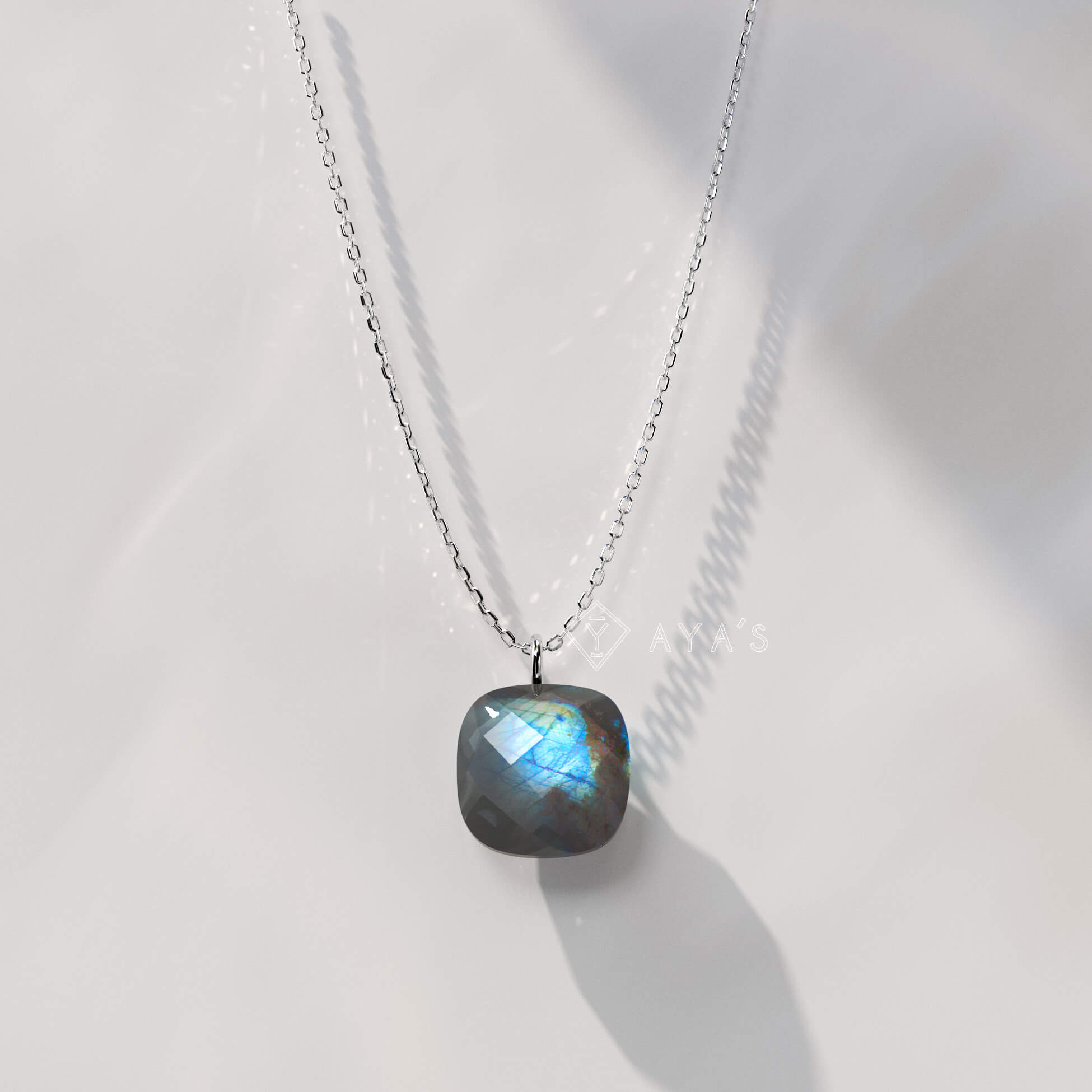 925 Silver GII Certified Labradorite Cushion Natural Gemstone Pendant Necklace