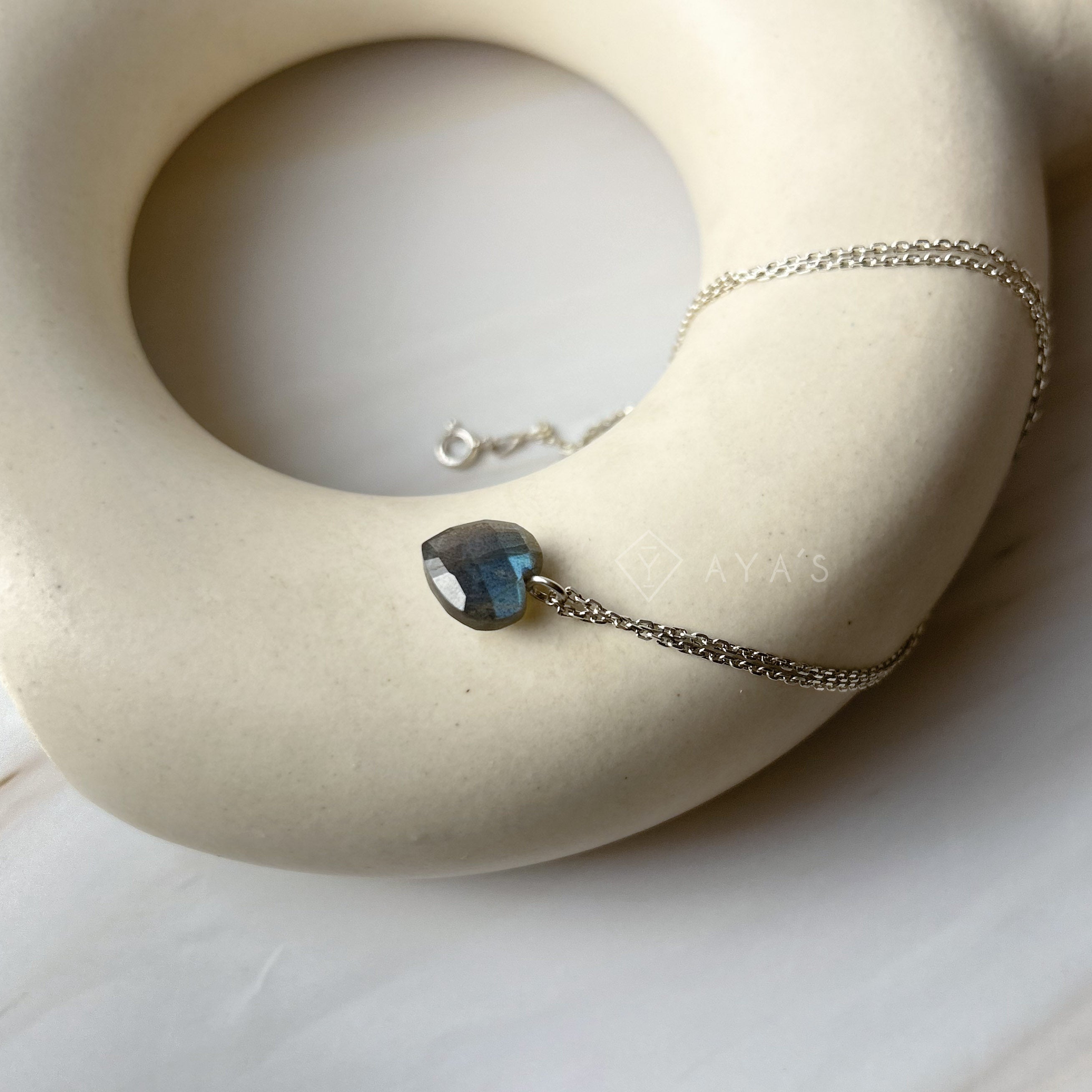 This 925 Silver GII Certified Labradorite Heart Natural Gemstone Pendant Necklace features a stunning GII certified heart shaped Labradorite natural gemstone pendant, accompanied by a 925 silver chain. The perfect addition to any jewelry collection, this necklace showcases the beauty and authenticity of natural gemstones.
