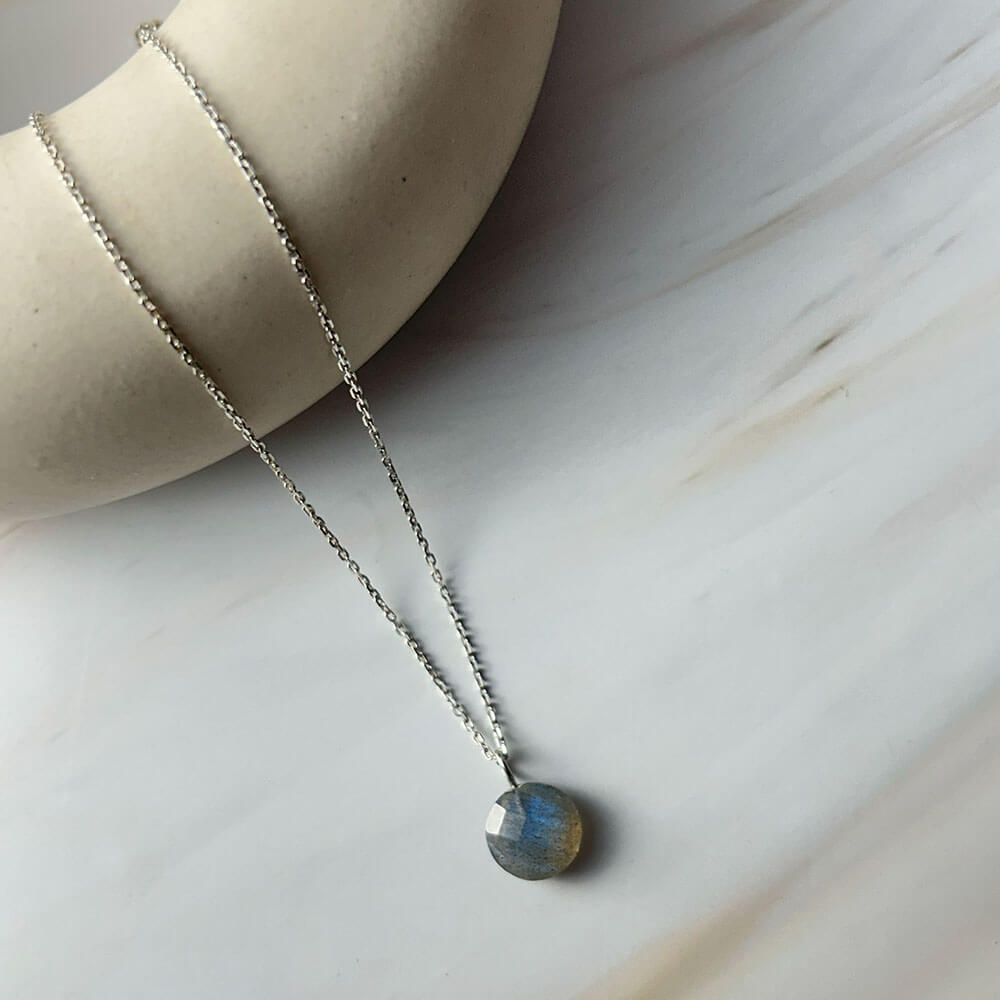 Expertly crafted and certified by GII, this 925 silver pendant necklace showcases the stunning beauty of a round-shaped labradorite gemstone. The natural gemstone offers unique and eye-catching hues, making each necklace truly one-of-a-kind. Comes with a 925 silver chain for a complete and elegant look.