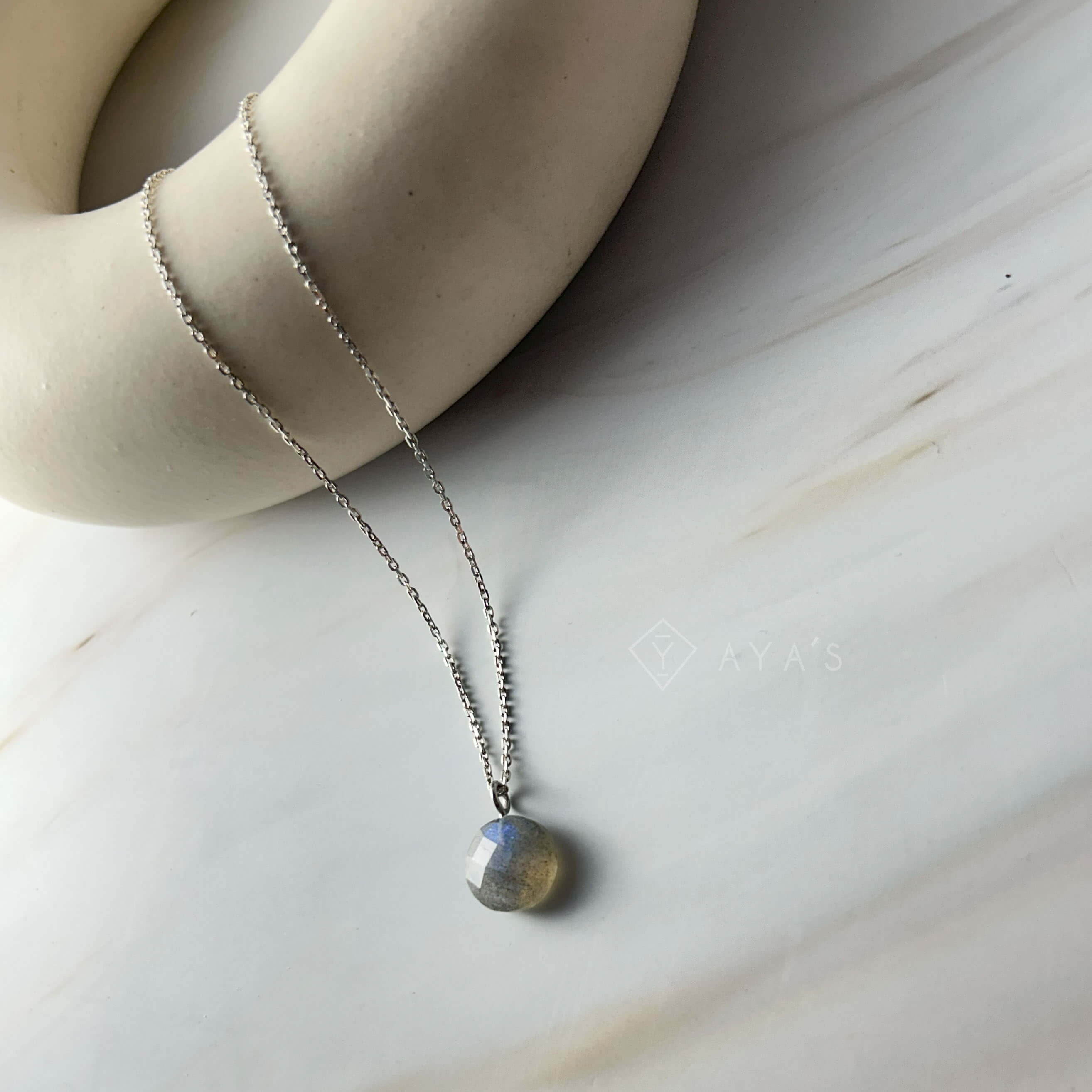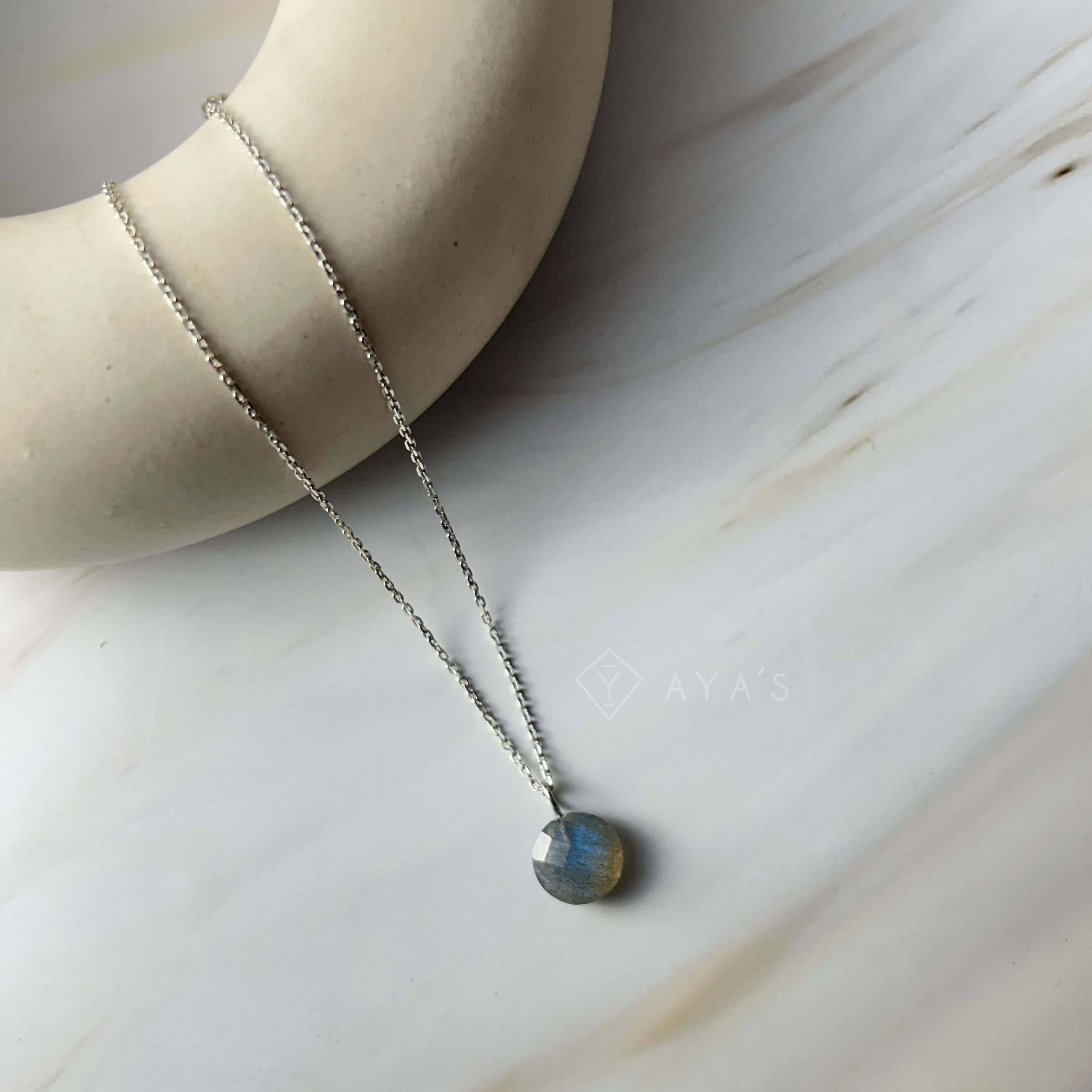 925 Silver GII Certified Labradorite Round Natural Gemstone Pendant Necklace