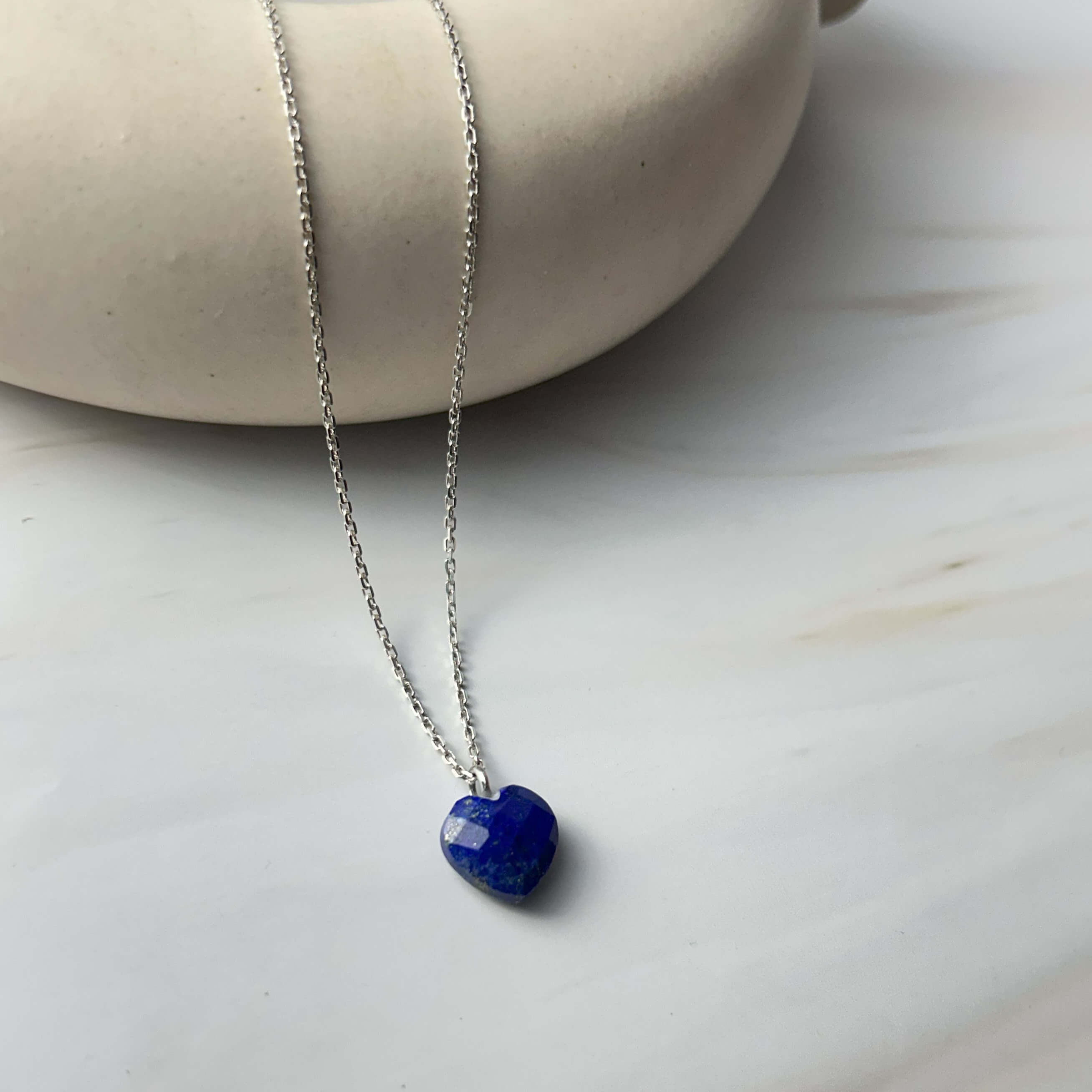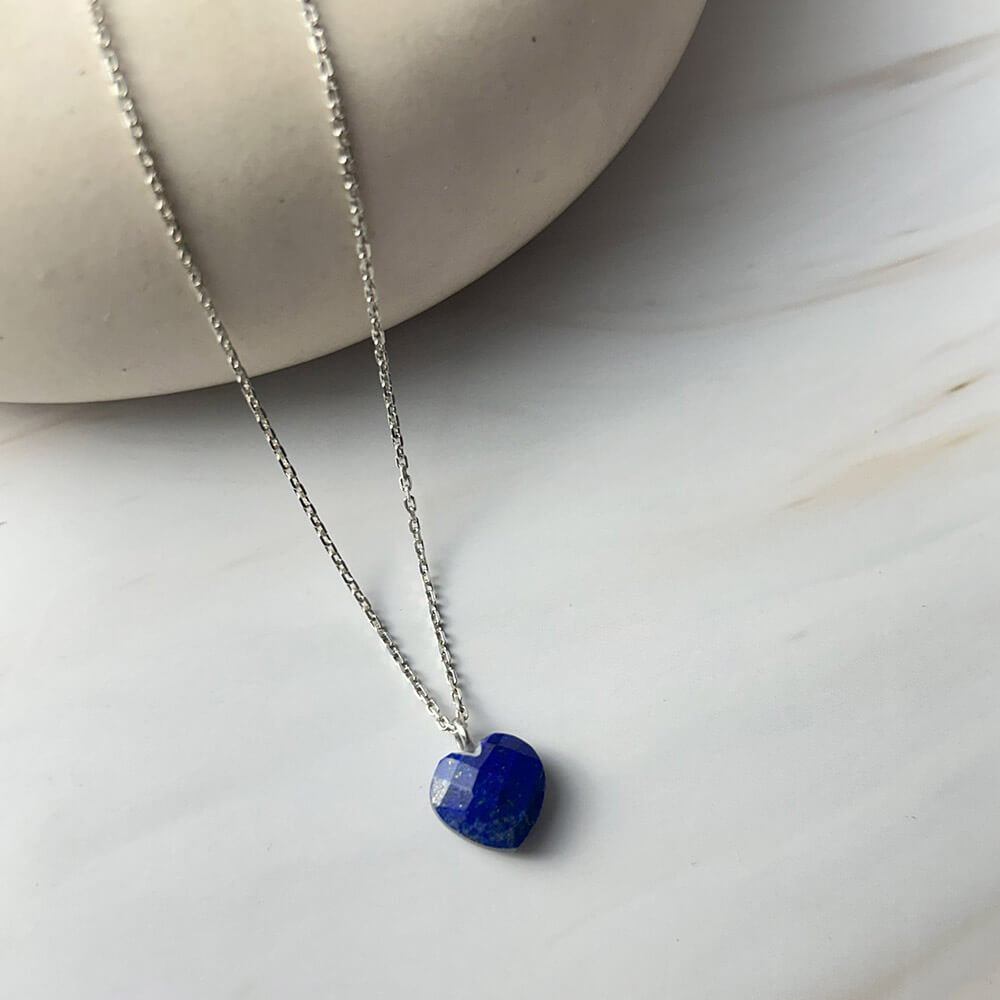 This GII certified Lapis Lazuli pendant necklace boasts a stunning heart-shaped natural gemstone. Made with 925 silver, this necklace is both elegant and high-quality. A perfect accessory for any outfit, the unique blue color of Lapis Lazuli is known to promote harmony and inner peace.