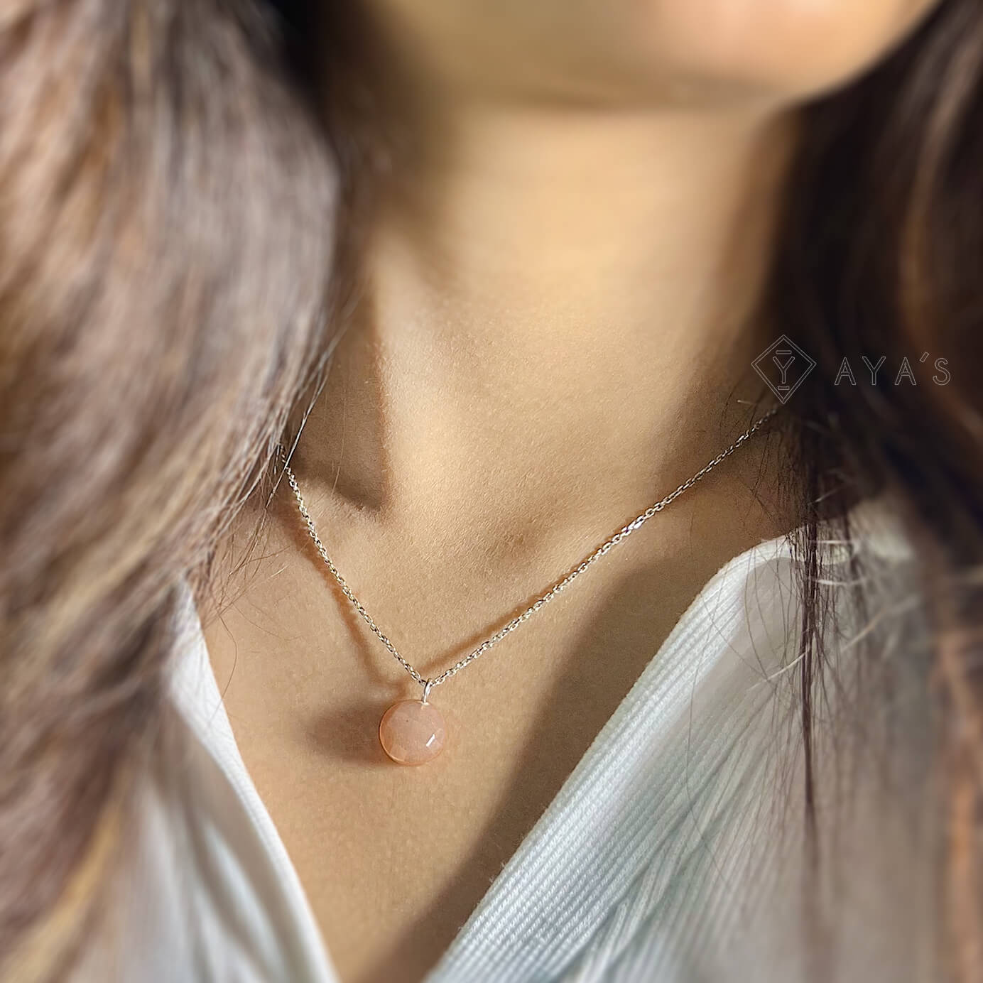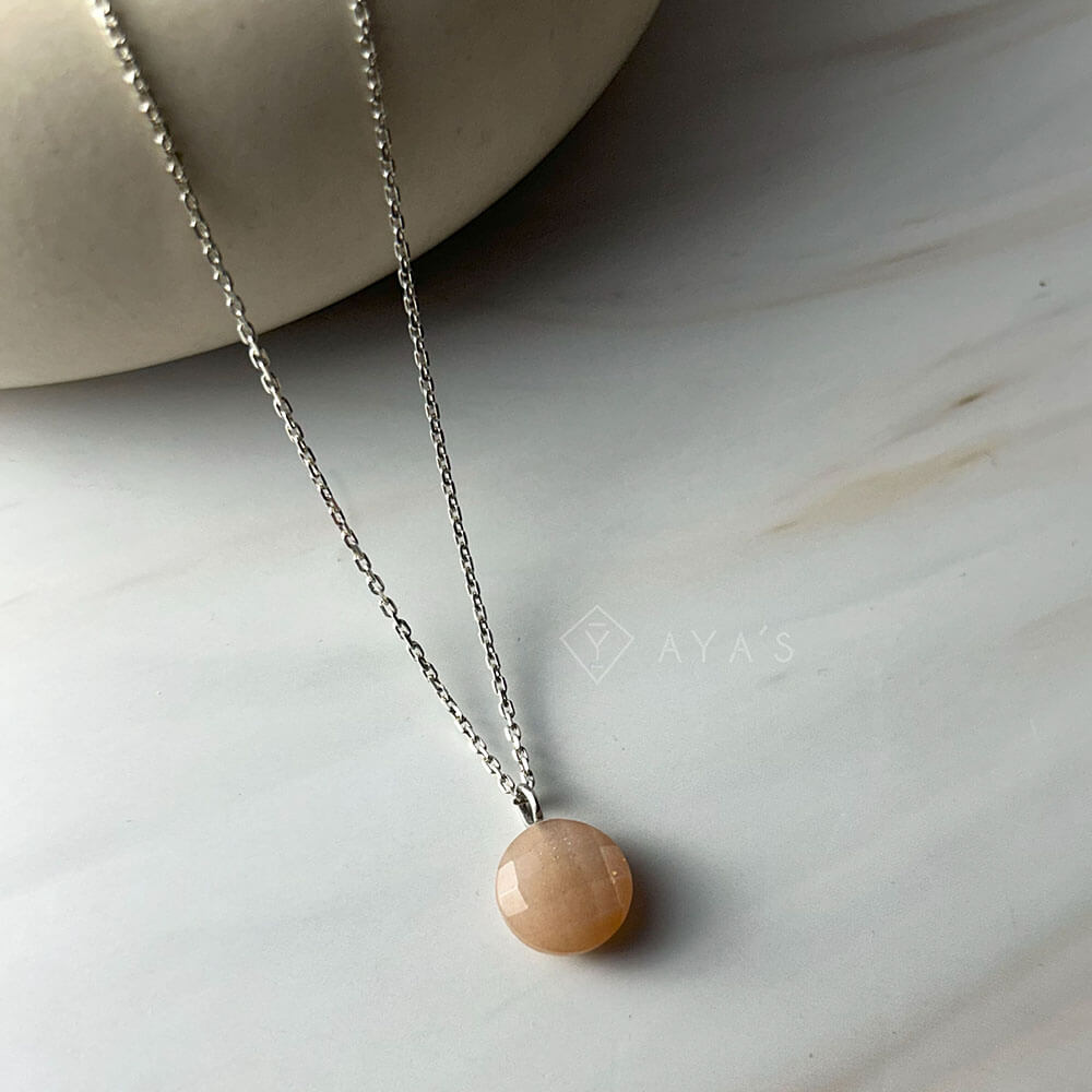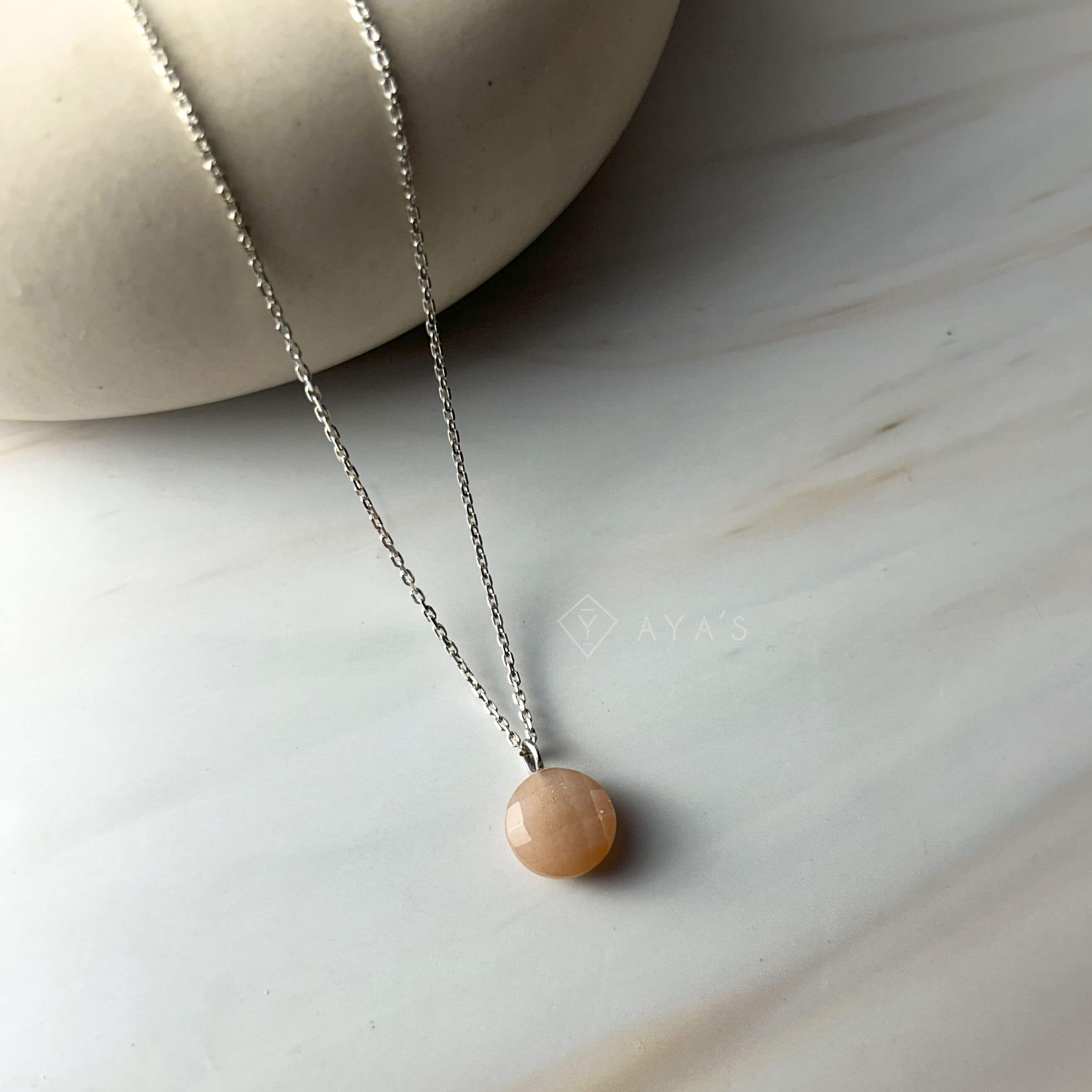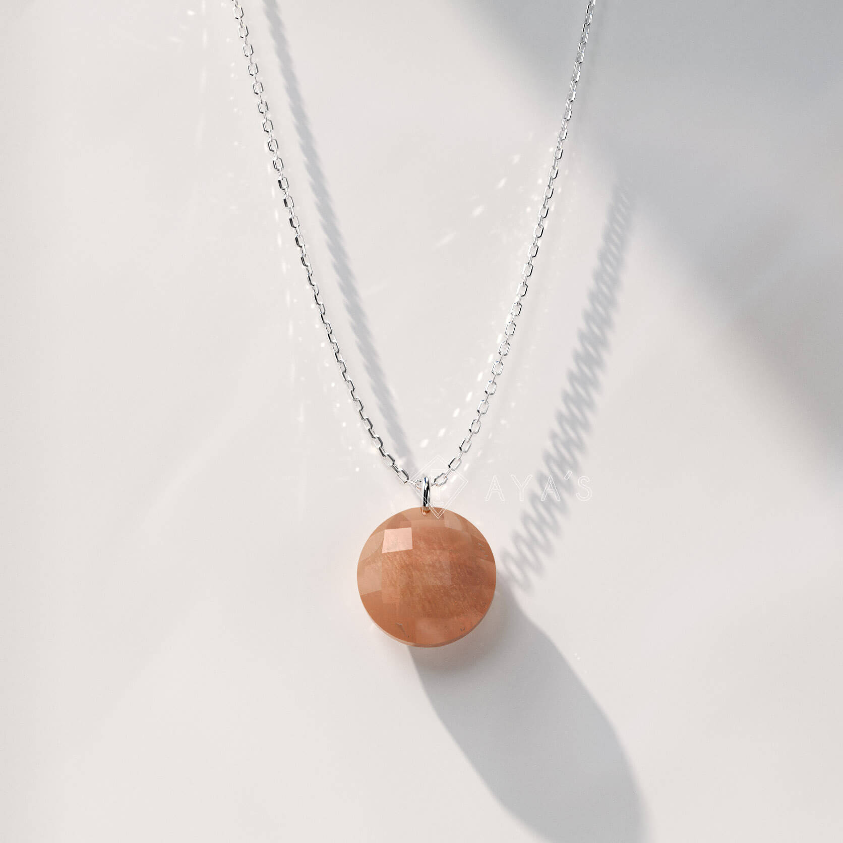 925 Silver GII Certified Peach Moonstone Round Natural Gemstone Pendant Necklace