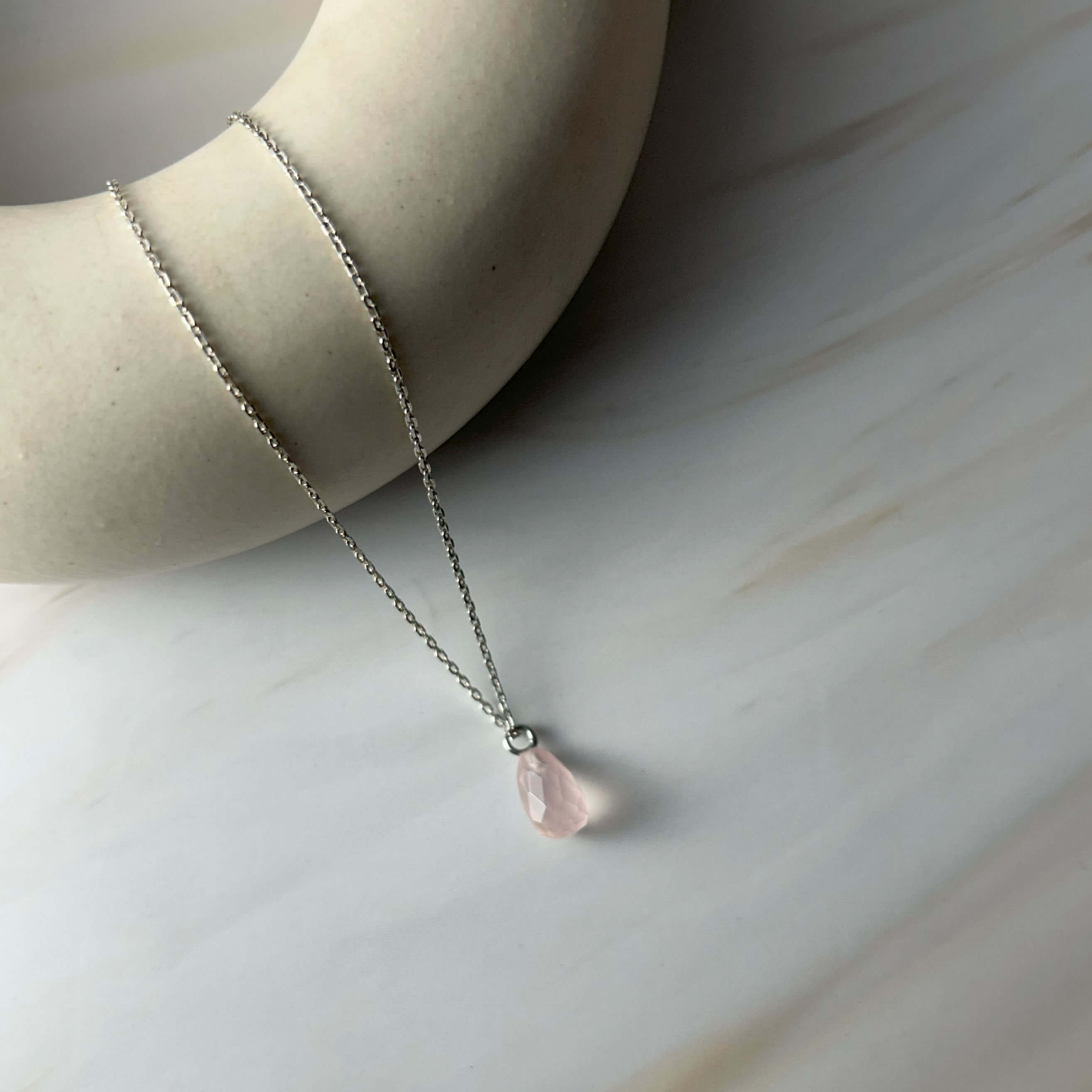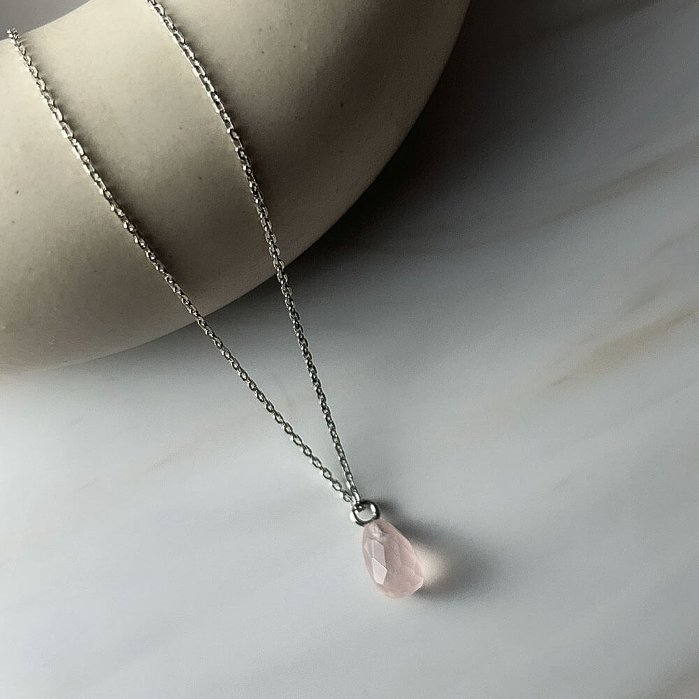 Expertly crafted from 925 sterling silver, this necklace boasts a GII certified tear drop shaped natural rose quartz gemstone pendant. The perfect addition to any outfit, this pendant shines with the beauty of natural gemstones and the elegance of sterling silver.
