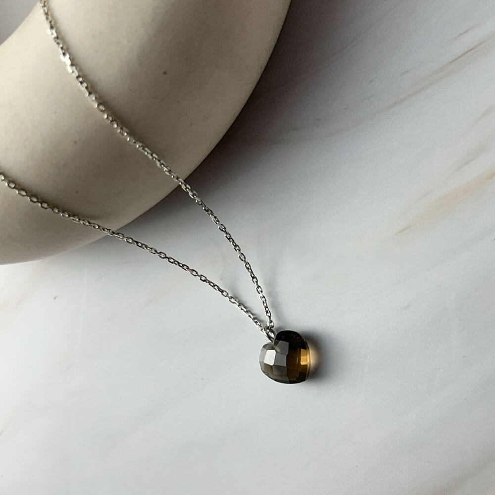 This GII certified pendant necklace features a stunning heart-shaped natural smoky quartz gemstone, complemented by a 925 sterling silver chain. The perfect combination of beauty and quality, this necklace is a must-have for any gemstone lover. Upgrade your jewelry collection with this elegant and timeless piece.