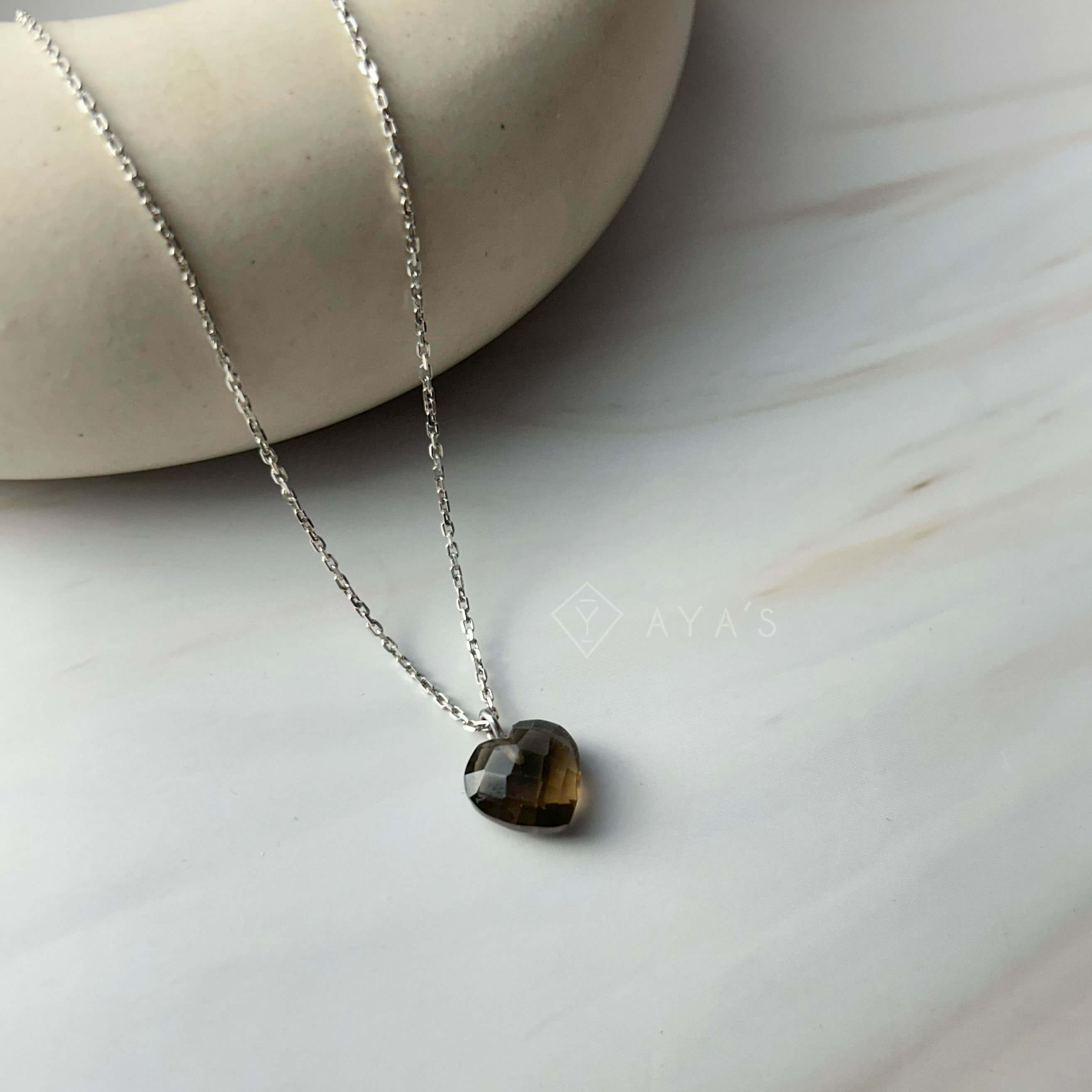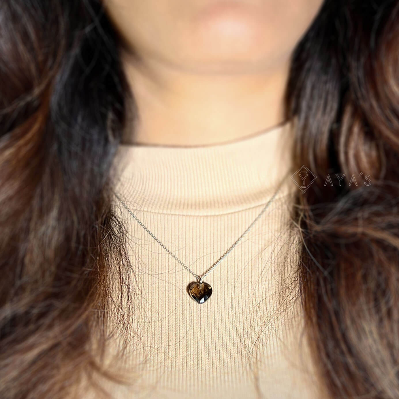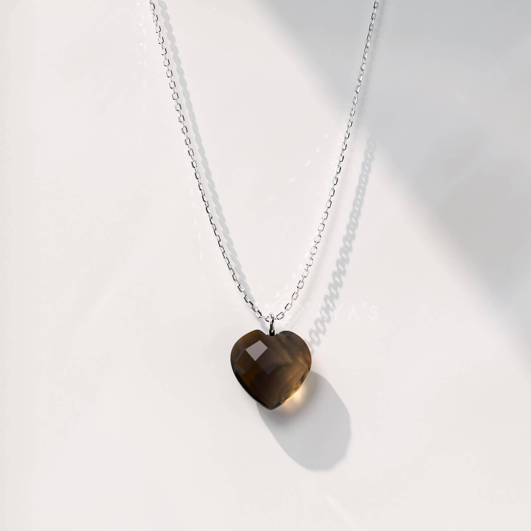 925 Silver GII Certified Smoky Quartz Heart Natural Gemstone Pendant Necklace