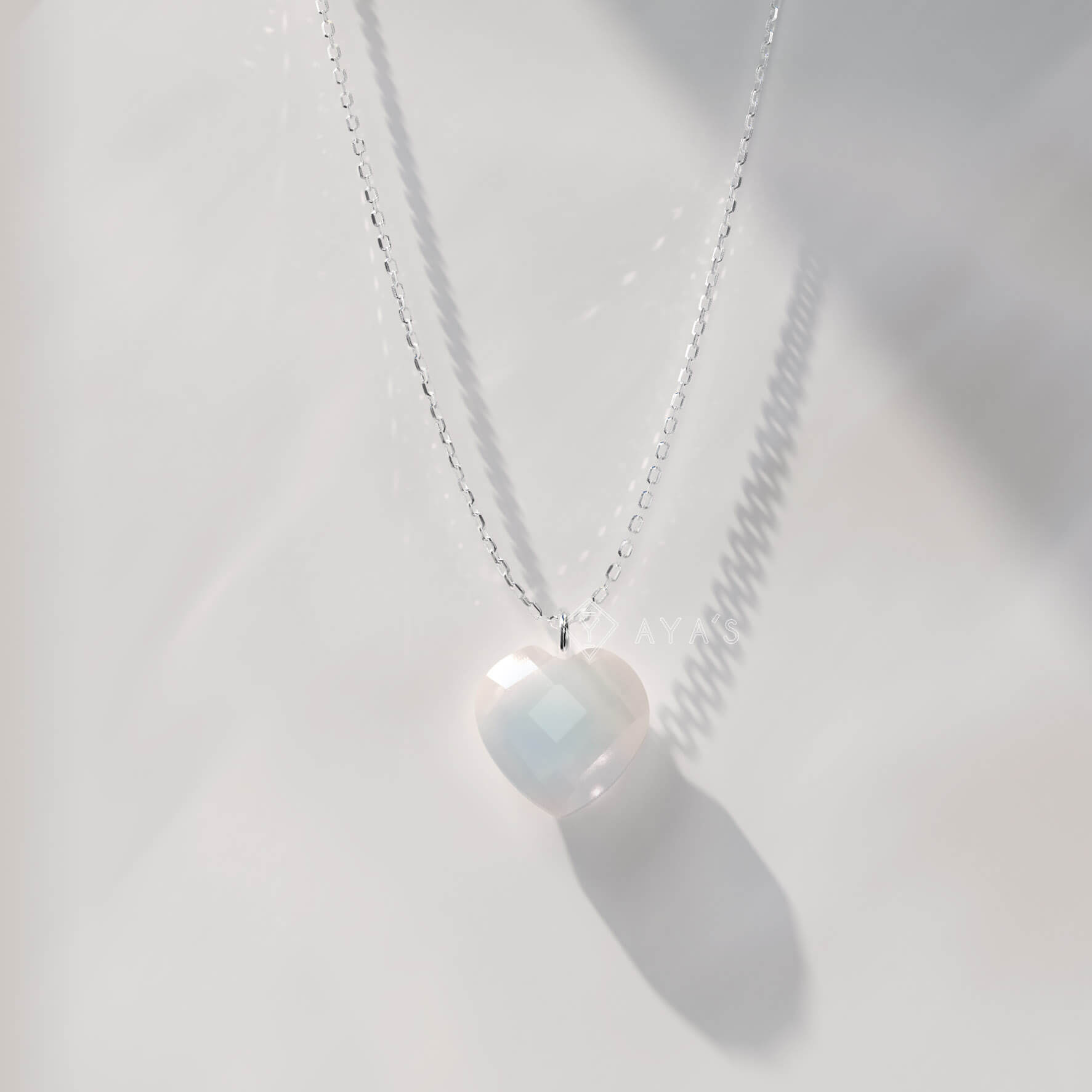 925 Silver GII Certified White Moonstone Heart Natural Gemstone Pendant Necklace