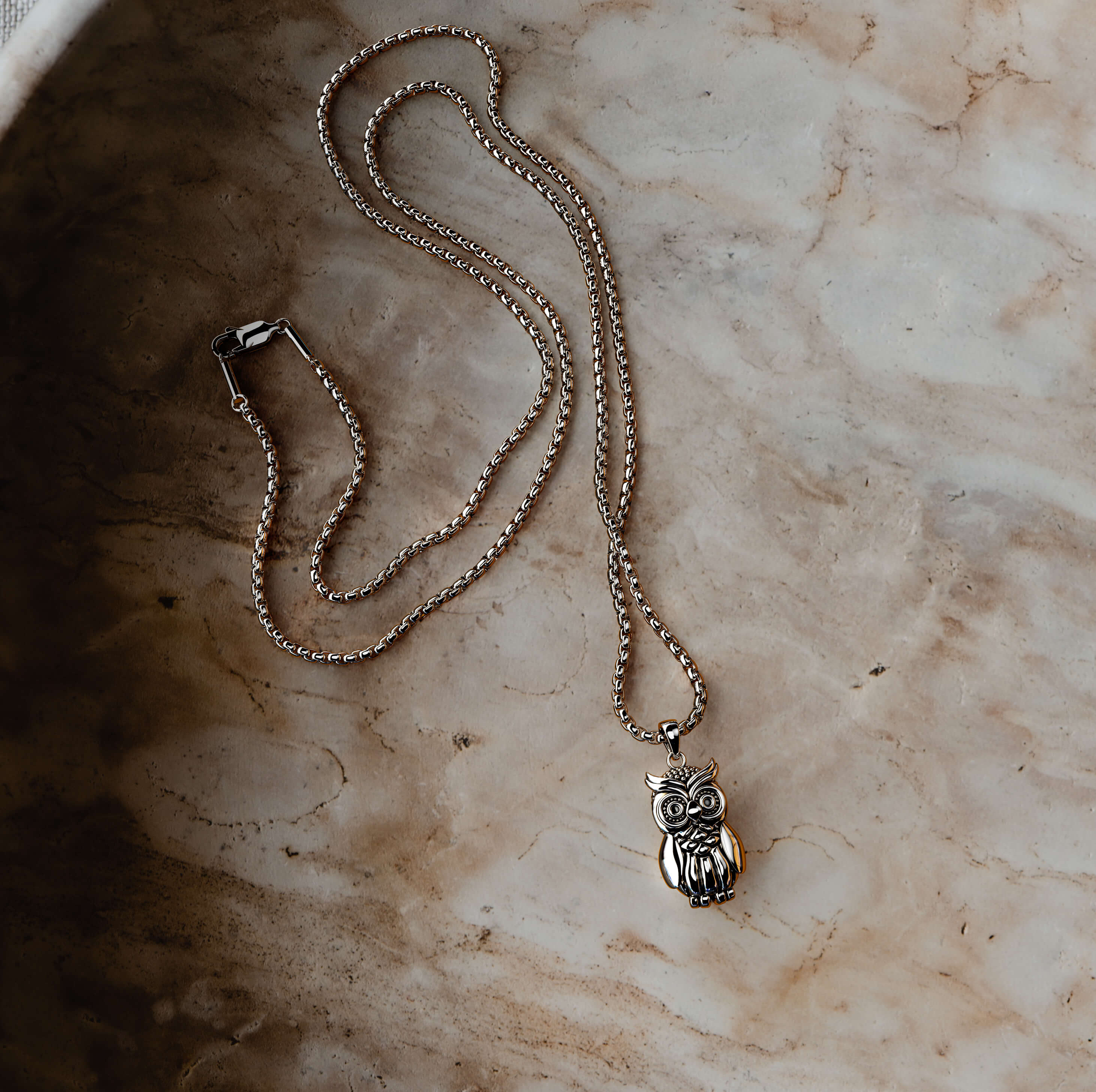 The hoot pendant hoots for itself. Whether it's a night event or day event, this owl pendant will keep your aura alive and affirmative. Embrace it as the vogue of your kind.