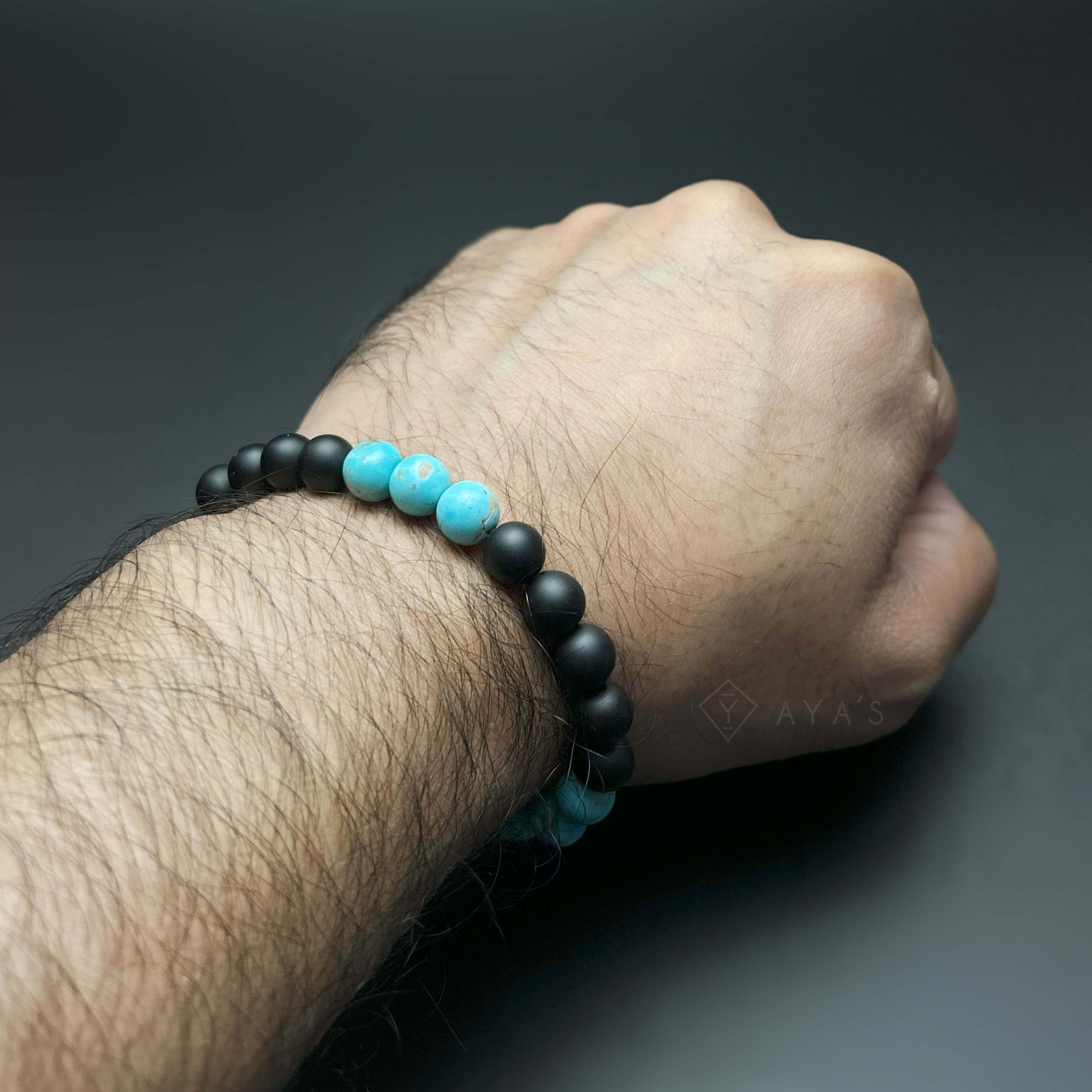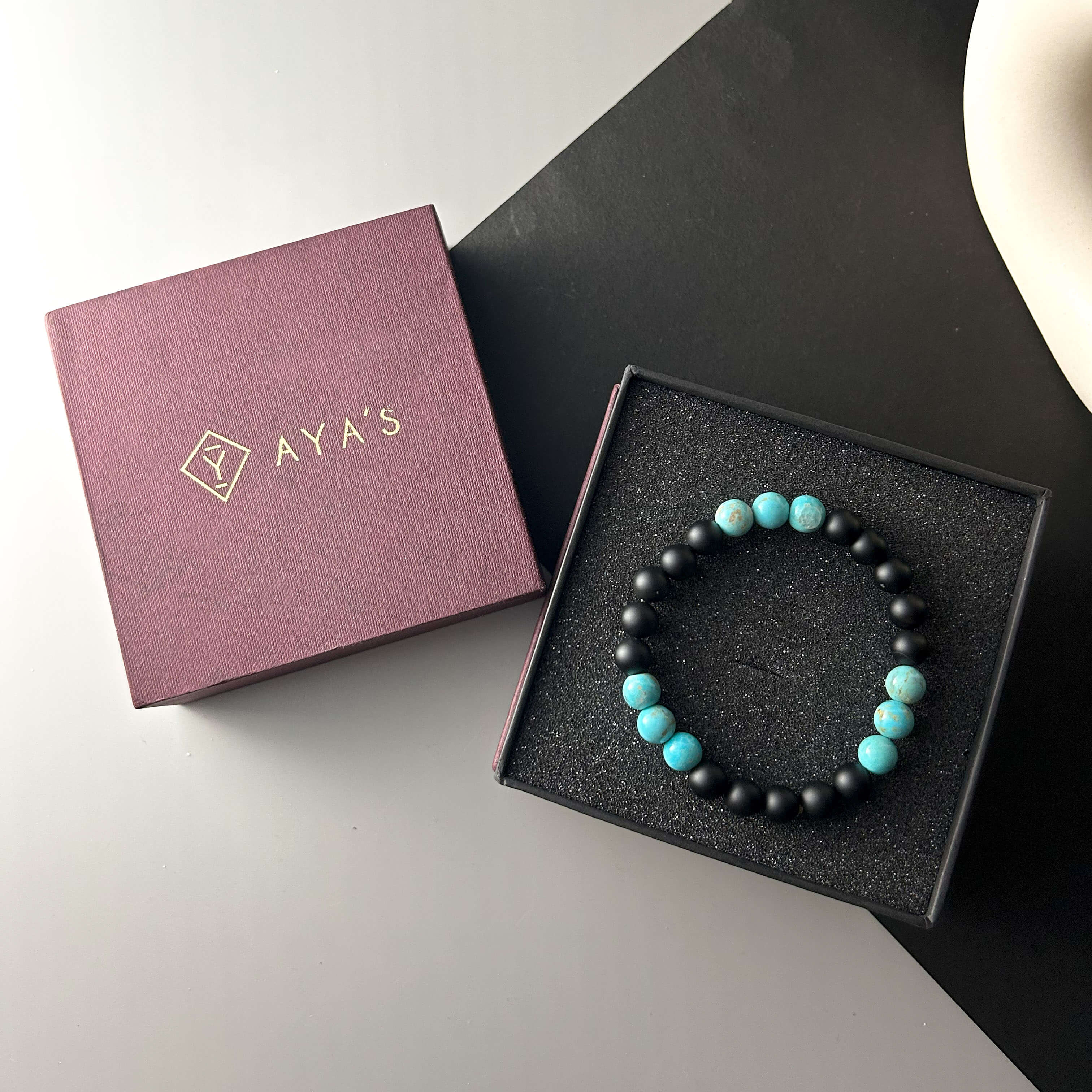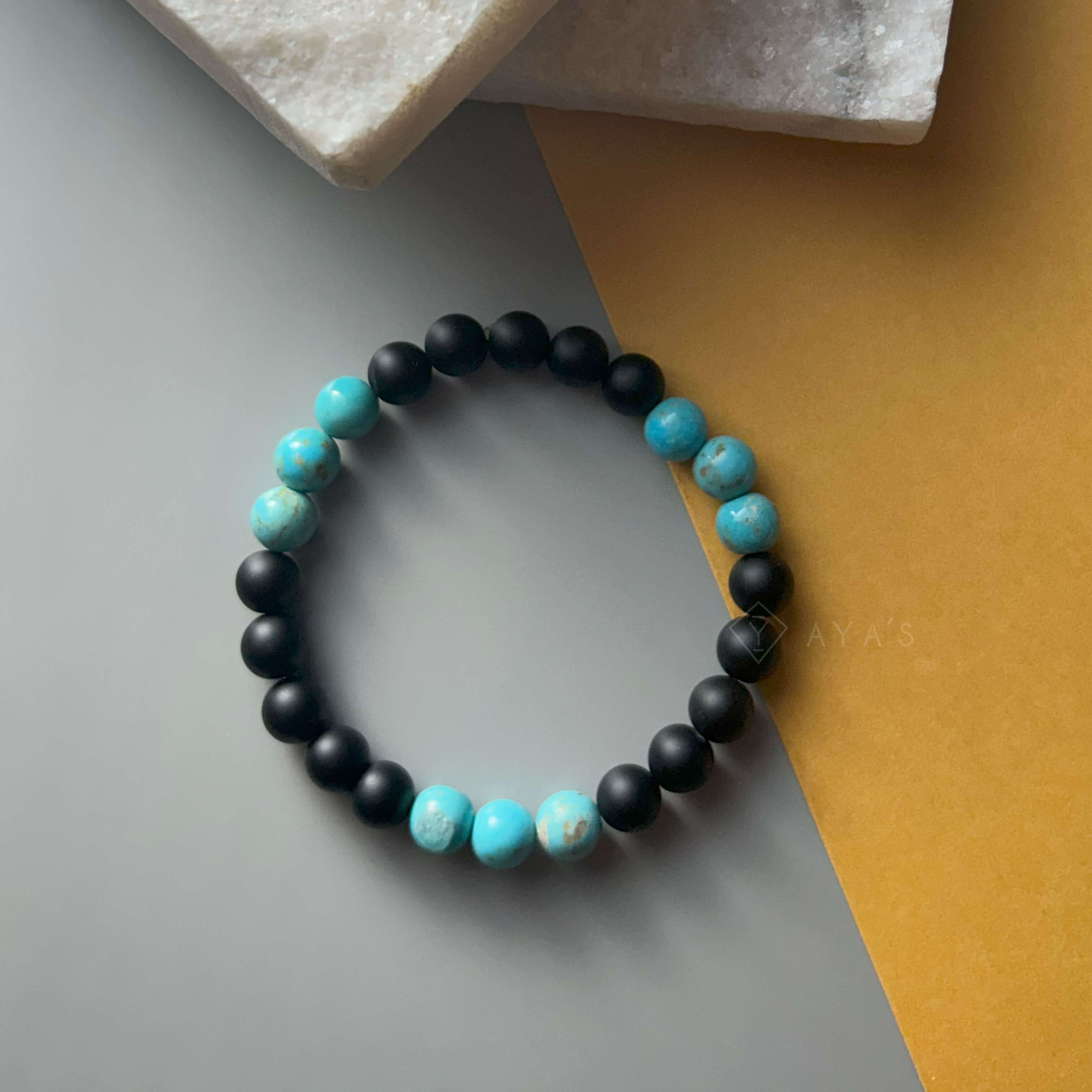 This American Turquoise Triplet and Black Onyx Matte Natural Stone Bracelet is handcrafted with precision and care. The mesmerizing blend of American Turquoise and Black Onyx creates a unique and stylish look. The natural stones provide a sense of grounding and balance, making this bracelet both beautiful and beneficial.
