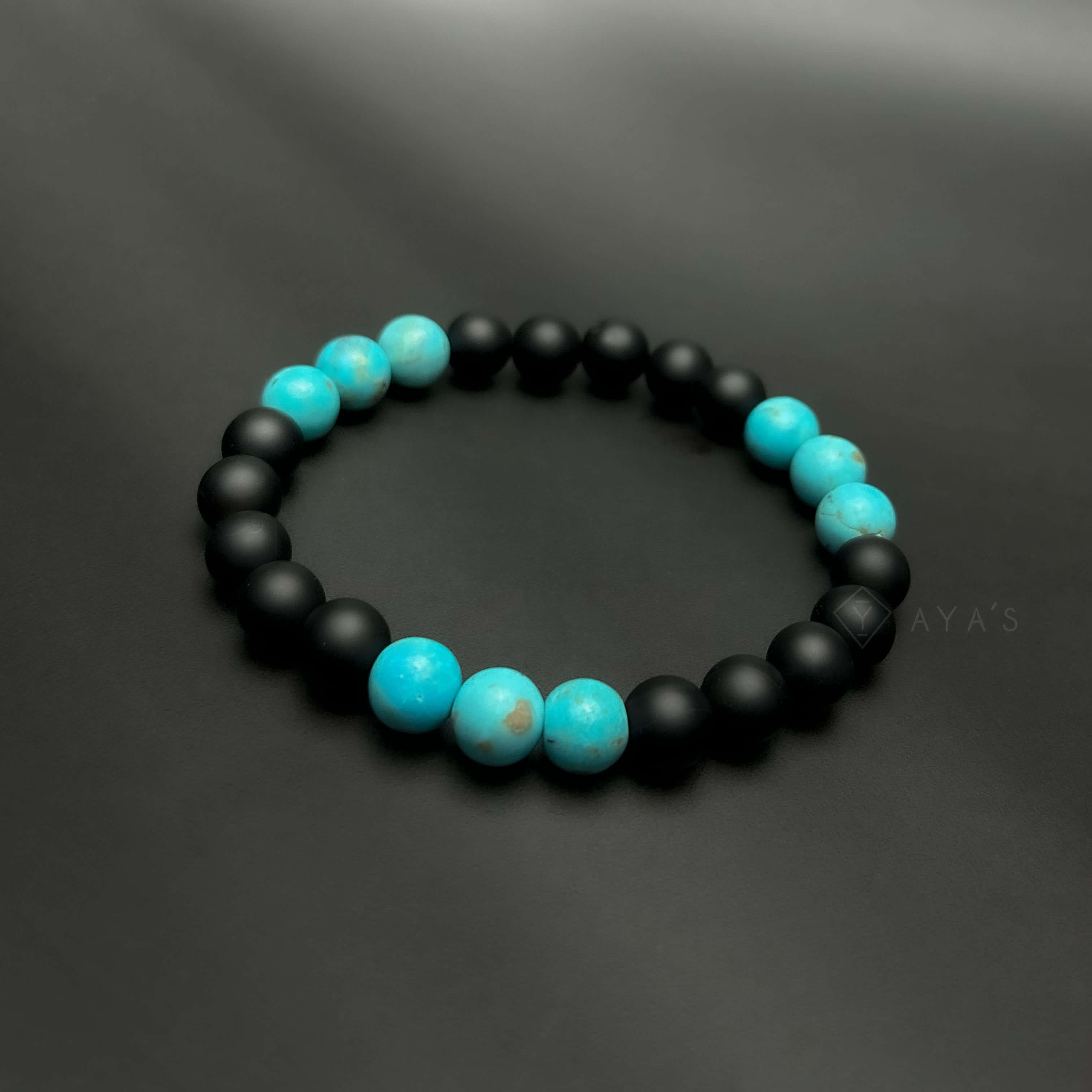 American Turquoise Triplet and Black Onyx Matte Natural Stone Bracelet