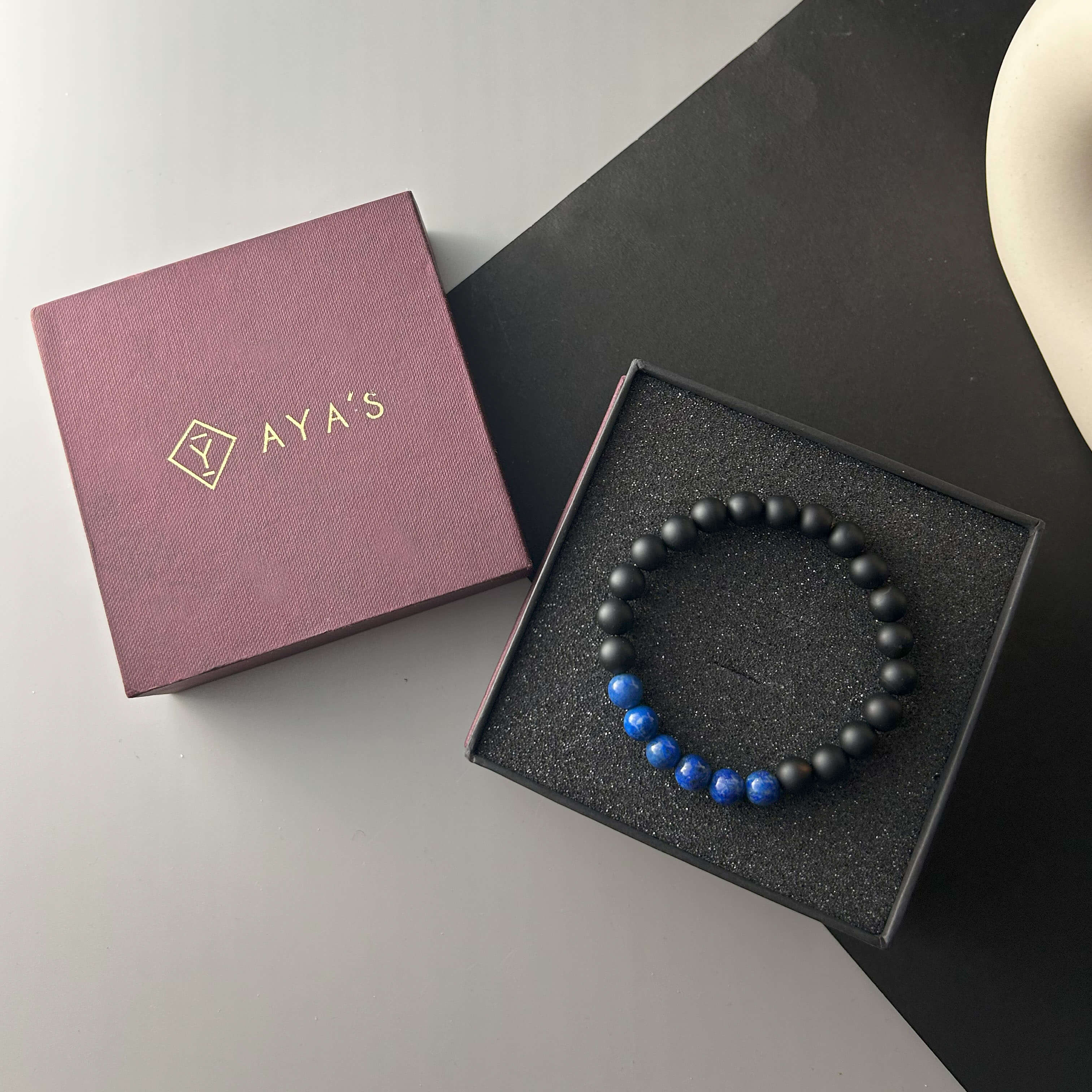 Experience the elegance and strength of our Lapis Lazuli and Black Onyx Matte Natural Stone Bracelet. This stunning piece is crafted from high-quality stones that promote confidence, balance, and protection. Perfect for any occasion, this bracelet is a must-have for those seeking to enhance their personal style and well-being.