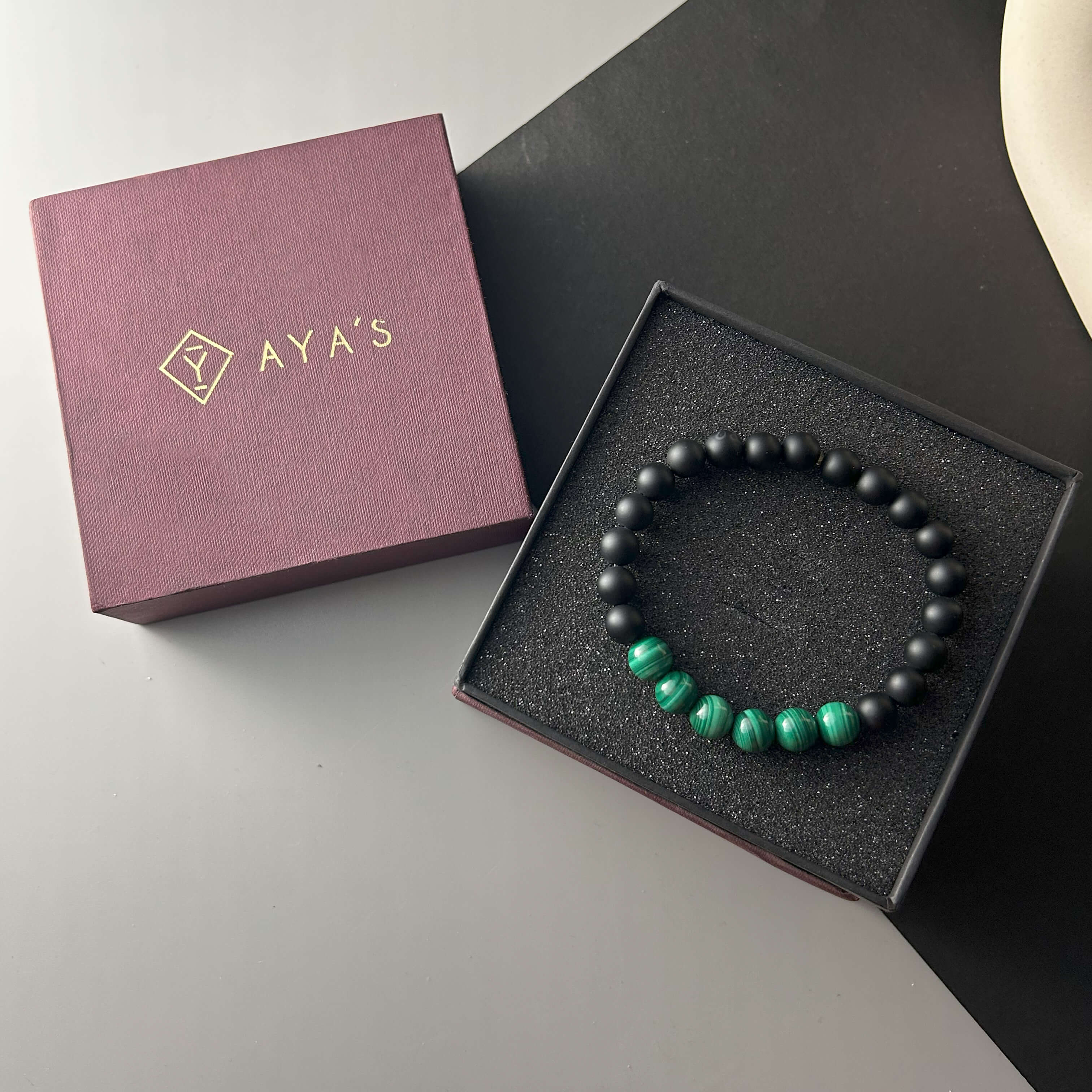 Malachite and Black Onyx Matte Natural Stone Bracelet