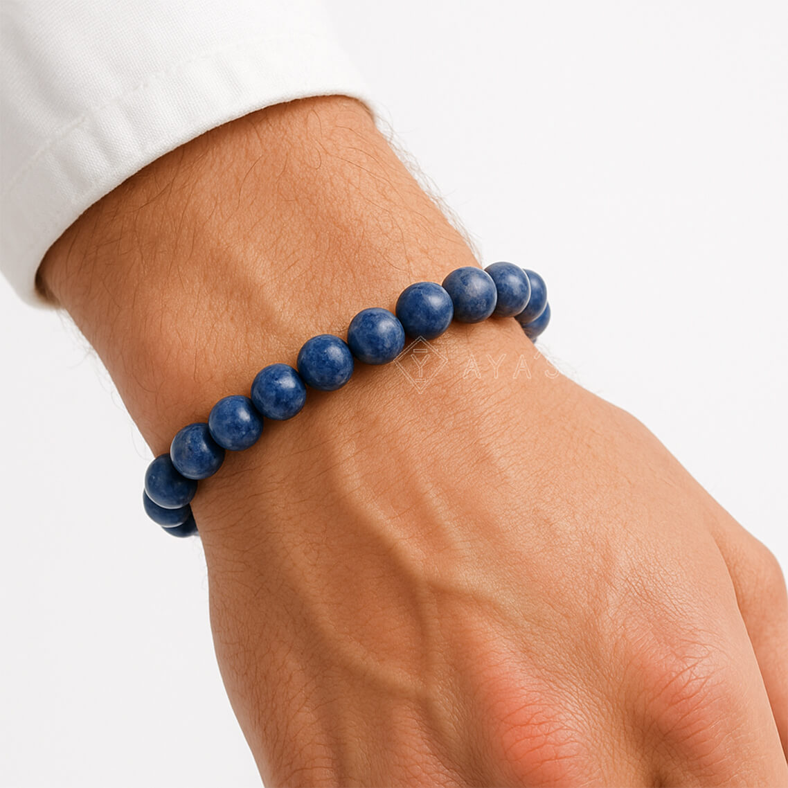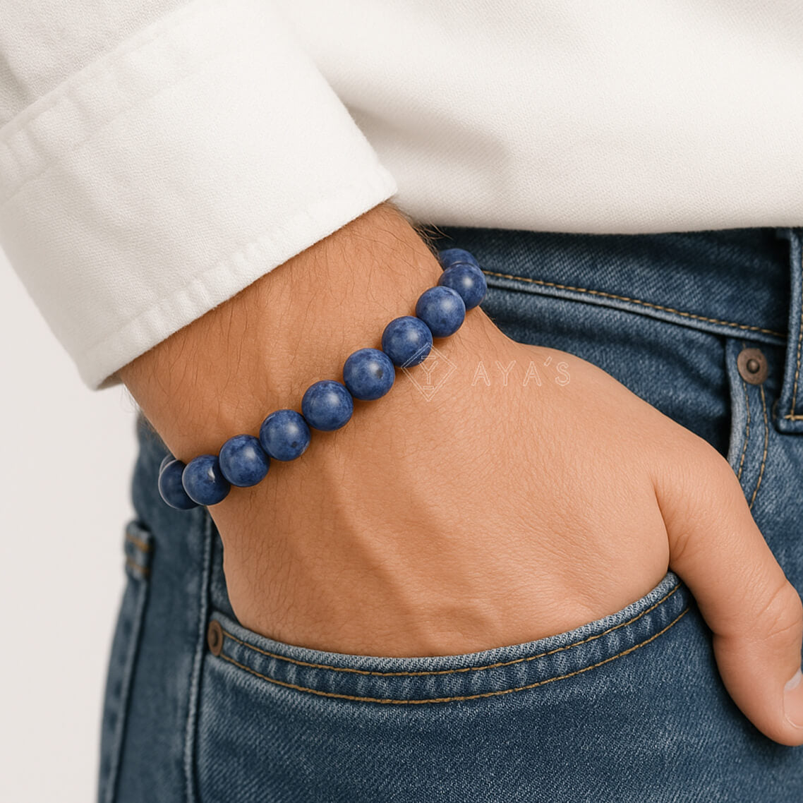 This Sodalite Natural Stone Bracelet is crafted from high-quality Sodalite stone, known for its calming and balancing properties. This bracelet will not only add a touch of elegance to any outfit, but it may also help alleviate anxiety and promote inner peace. Embrace the power of natural stone with this beautiful bracelet.