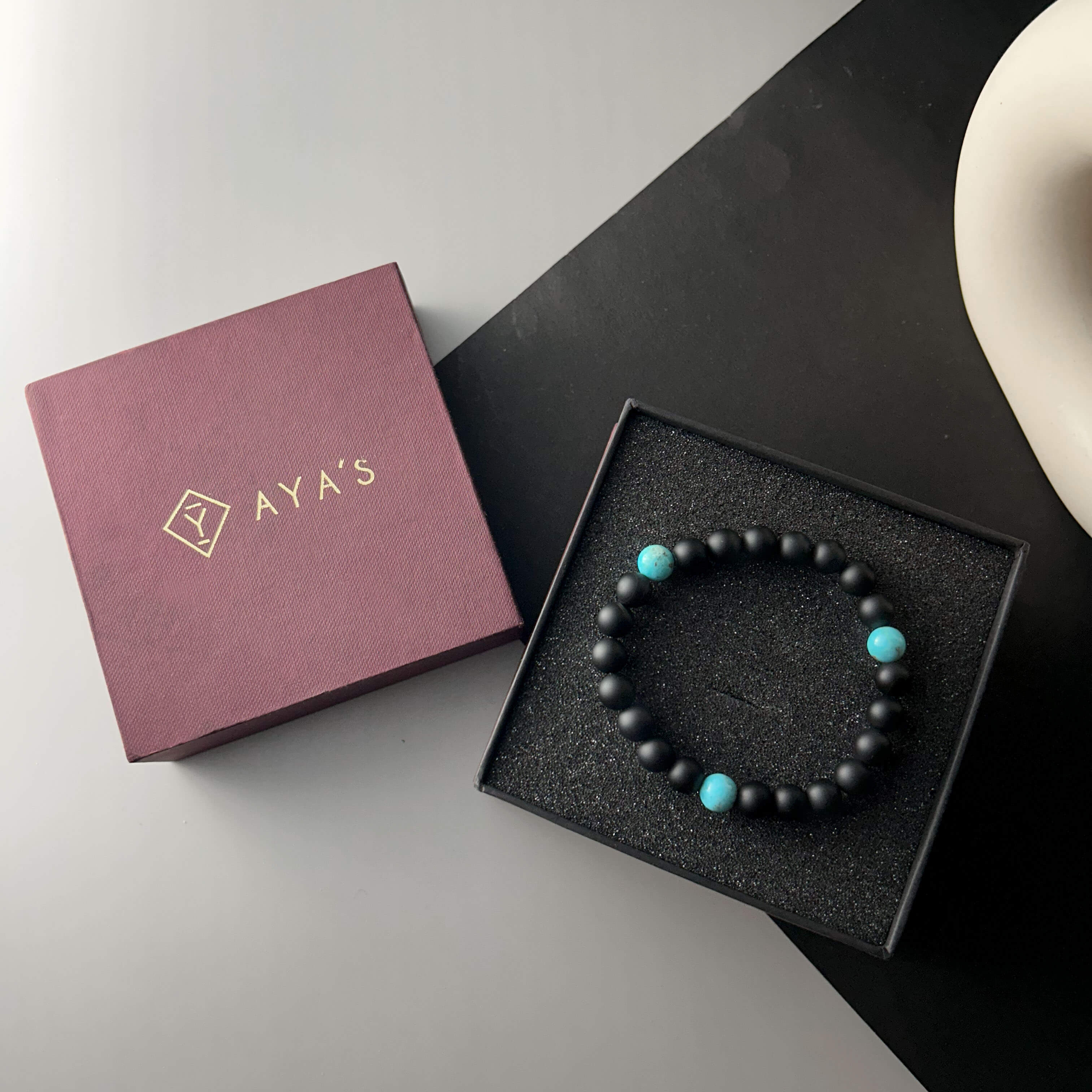Expertly crafted, this American Turquoise Tri and Black Onyx Matte Natural Stone Bracelet offers a touch of elegance to any outfit. The stunning combination of American Turquoise and Black Onyx natural stones is both eye-catching and versatile, making it a must-have accessory for any fashion-forward individual. With its matte finish and sleek design, this bracelet is sure to elevate your style.