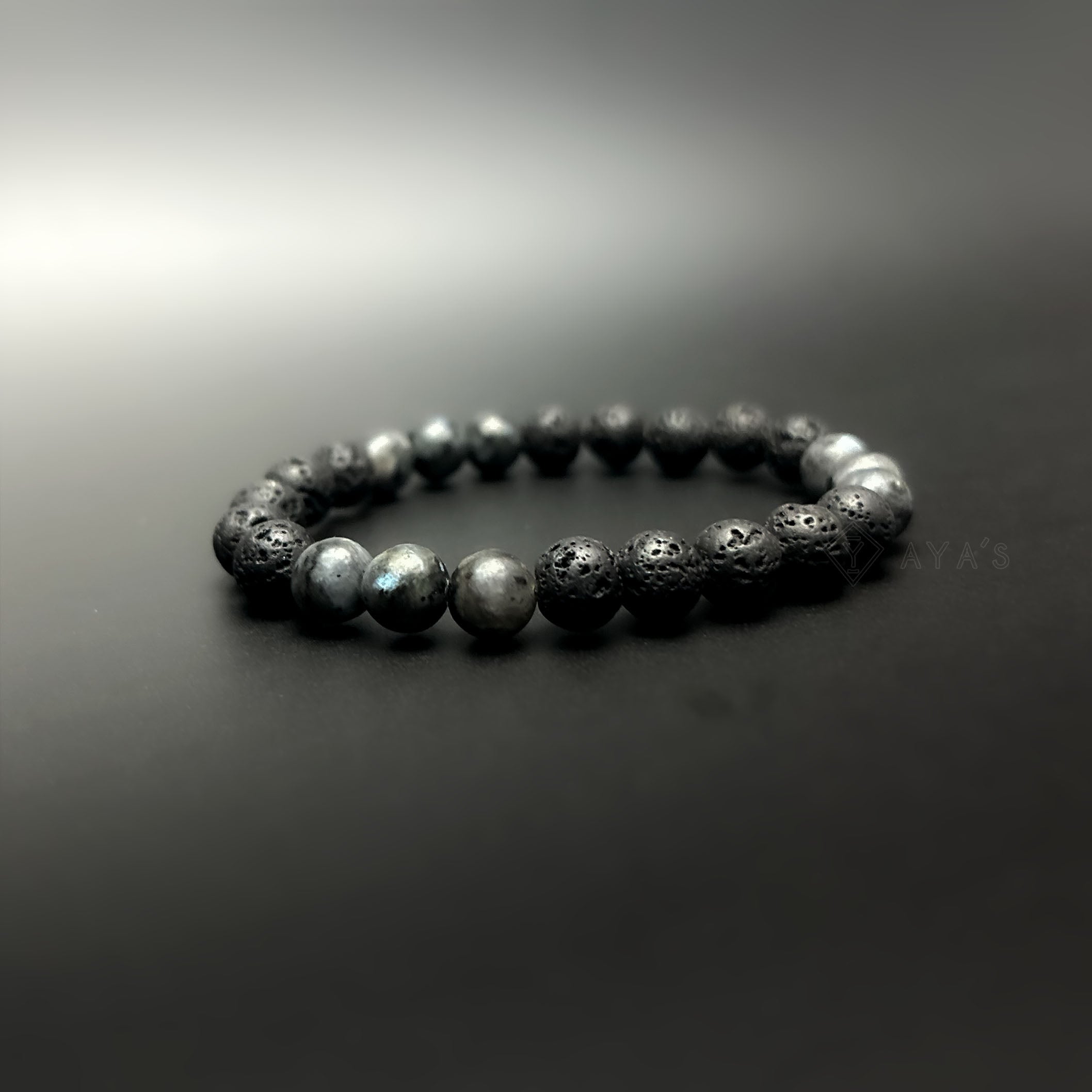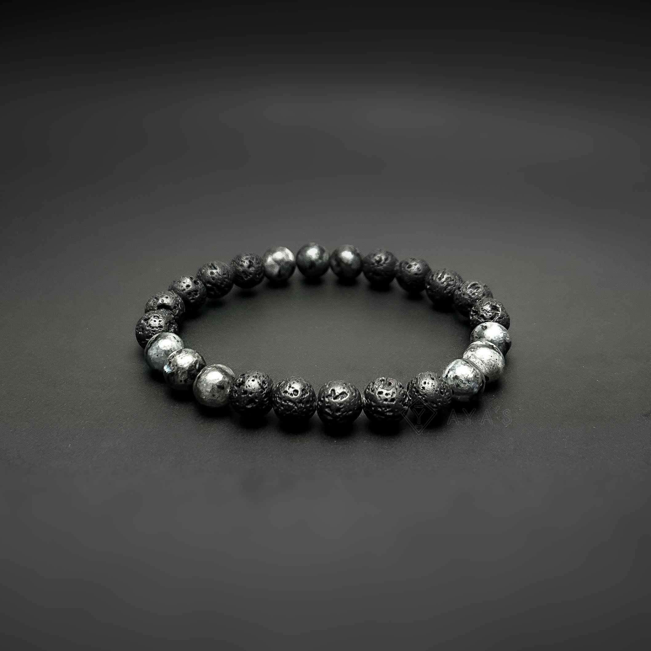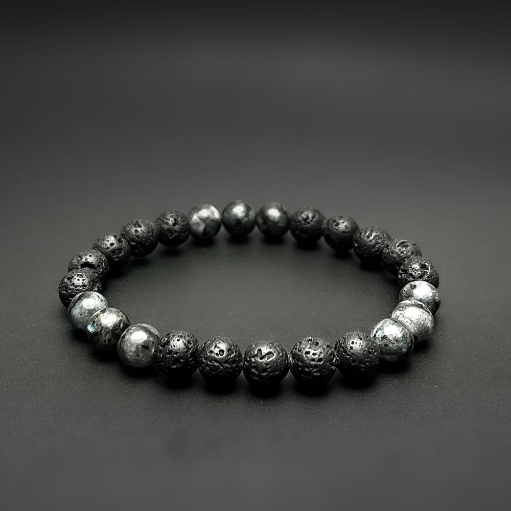 Tri Larvikite Triplet and Lava Natural Stone Bracelet
