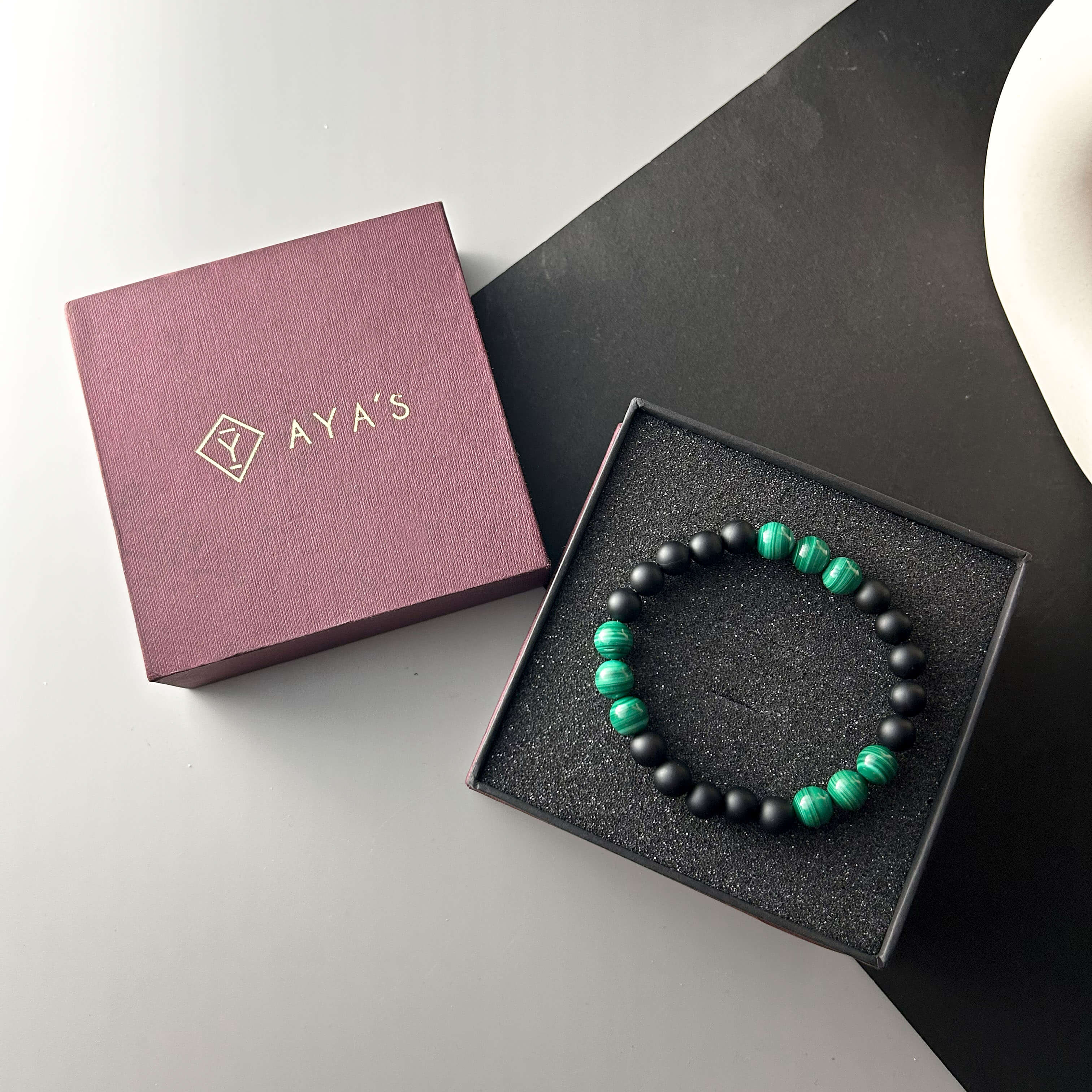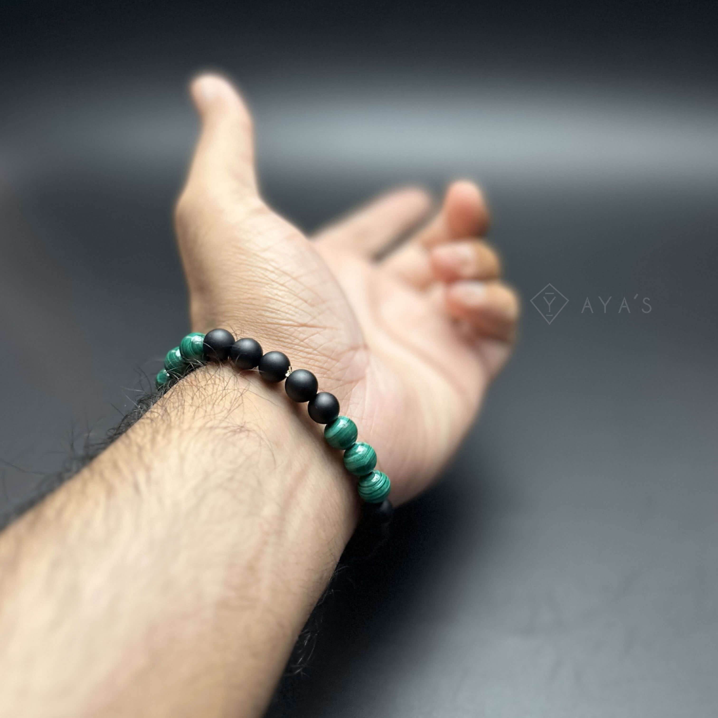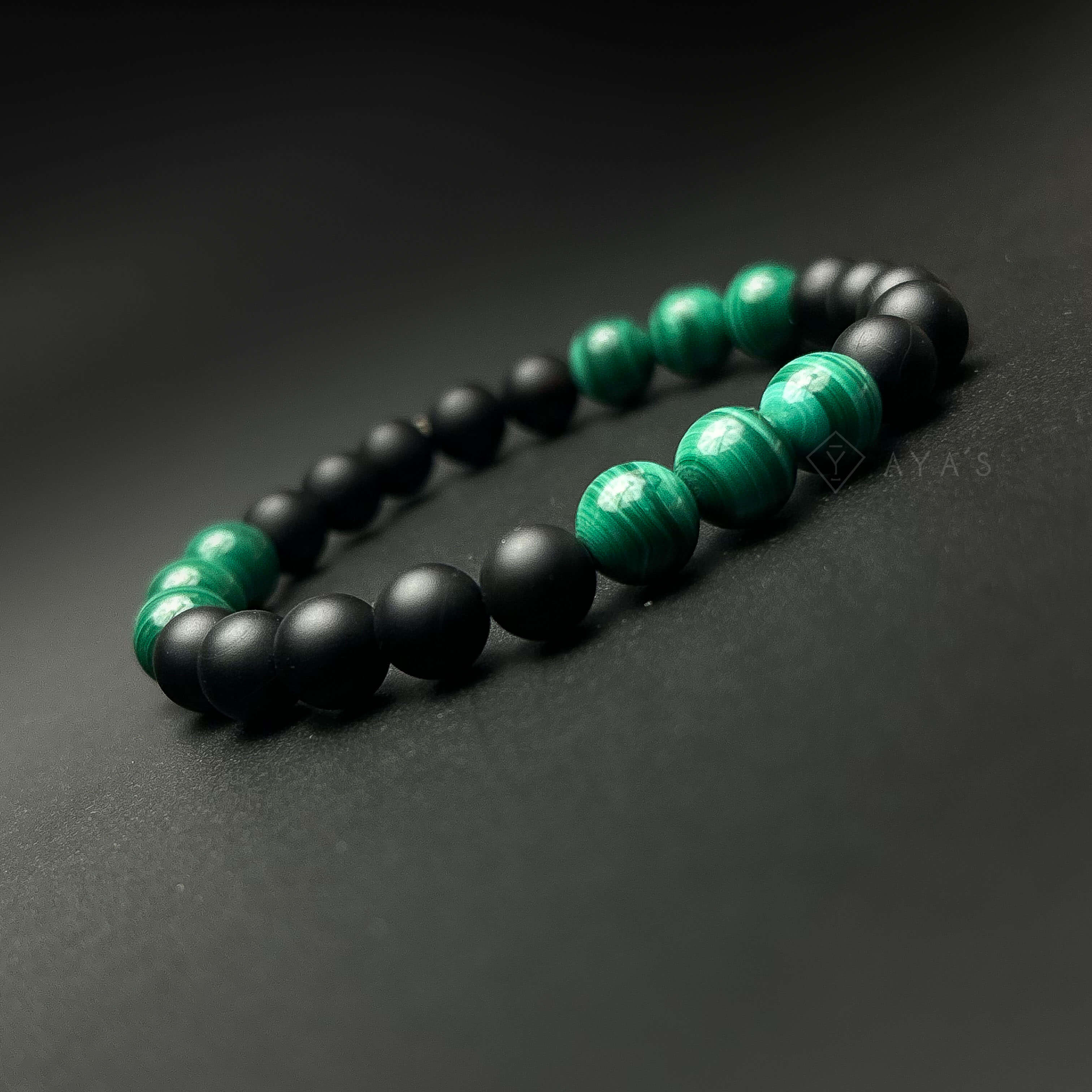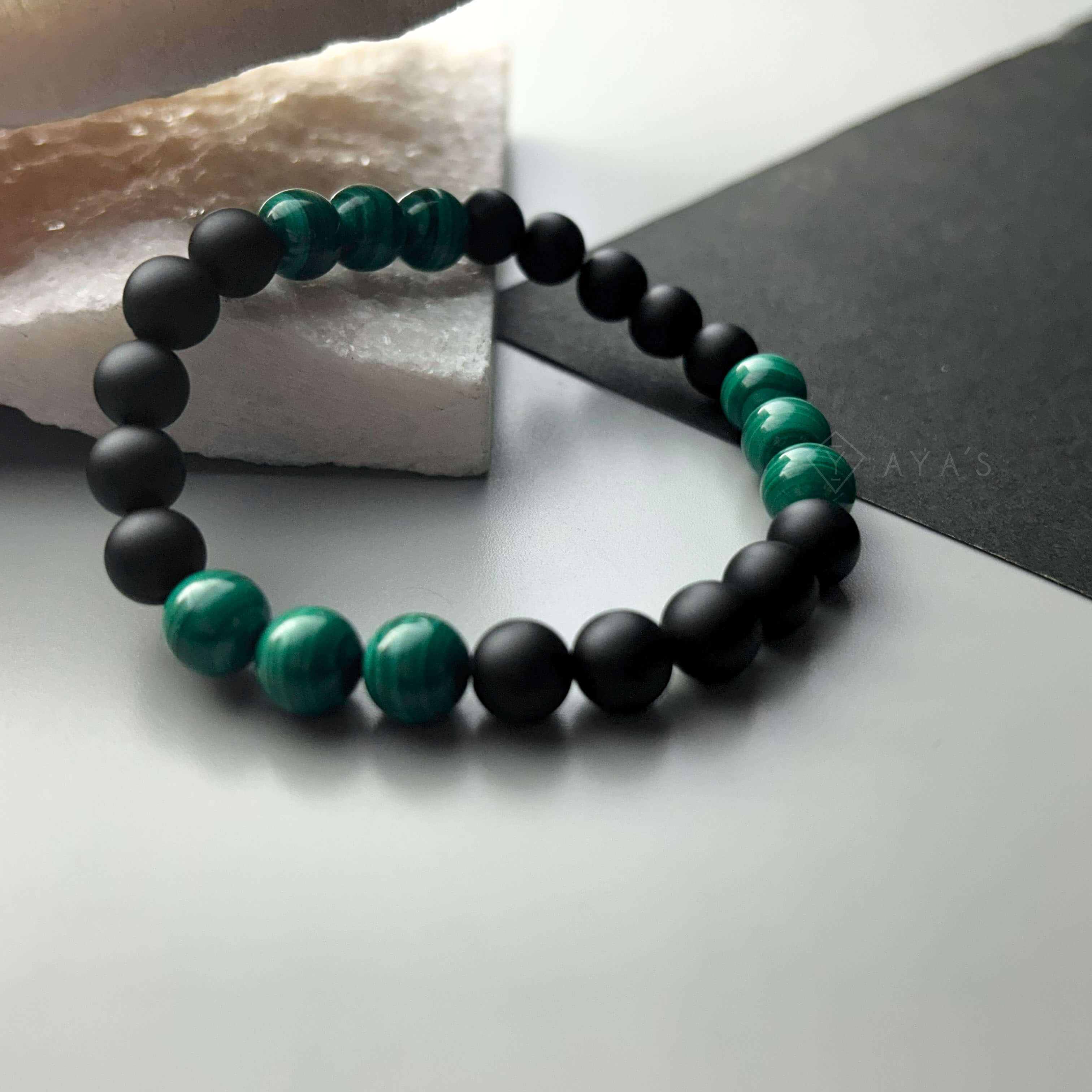 Featuring a unique combination of Tri Malachite Triplet and Black Onyx Matte Natural Stone, this bracelet brings a touch of elegance and natural beauty to any outfit. Its luxurious design is perfect for elevating any look while providing the potential benefits of these high-quality stones.