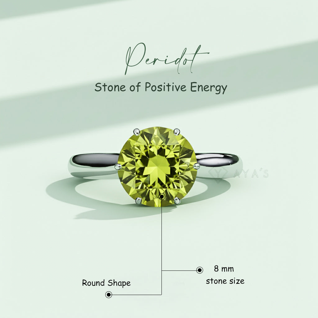 925 Silver Airelle Round Peridot Natural Gemstone Solitaire Ring