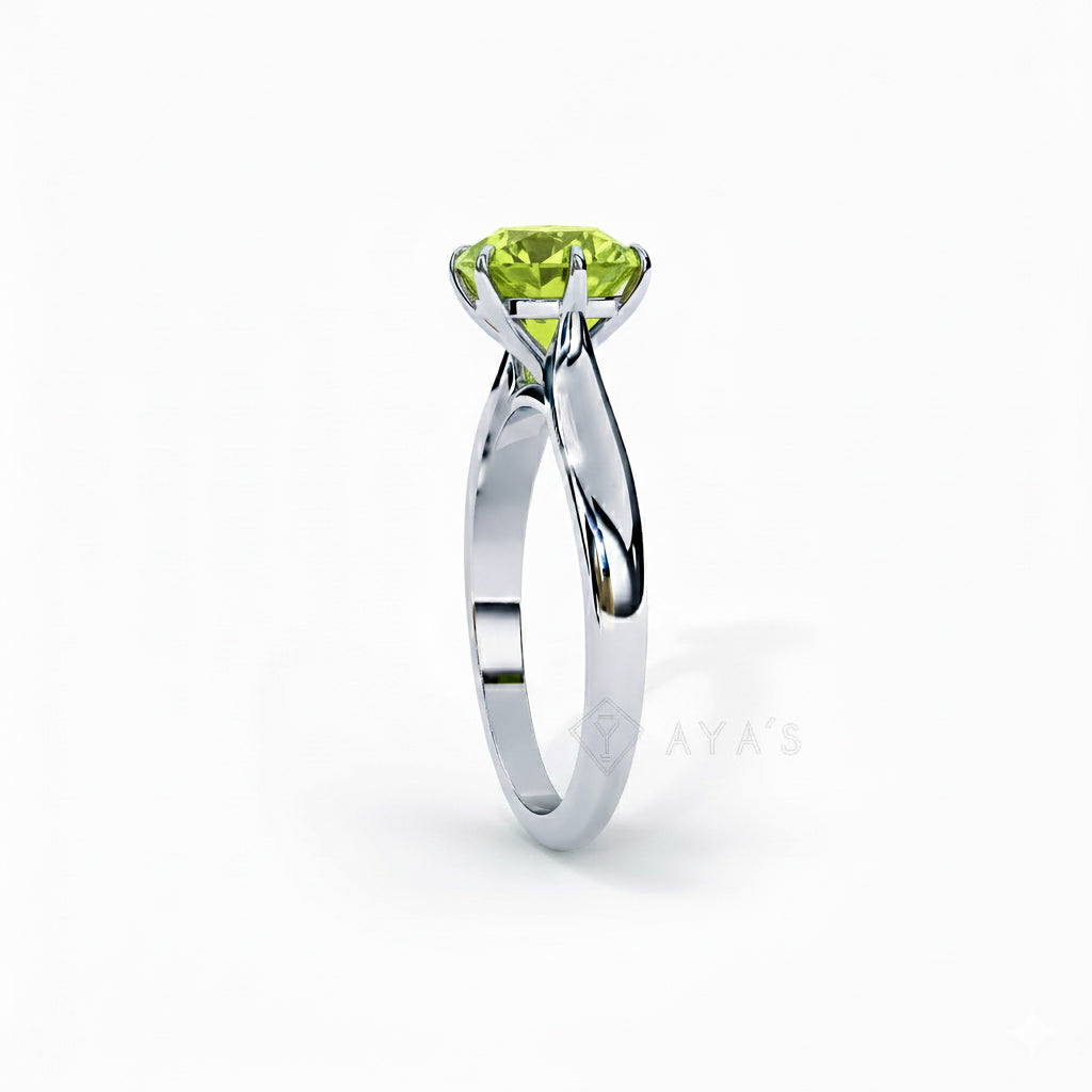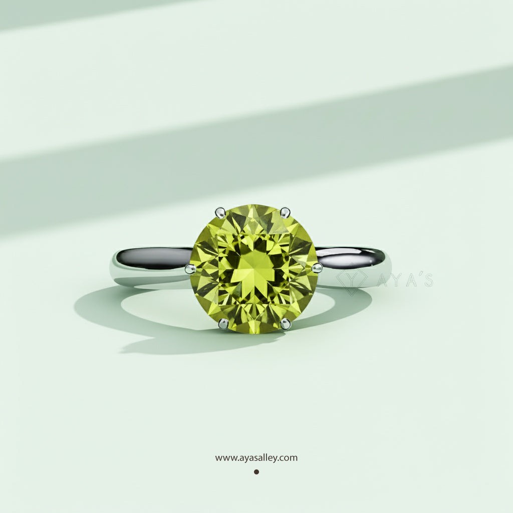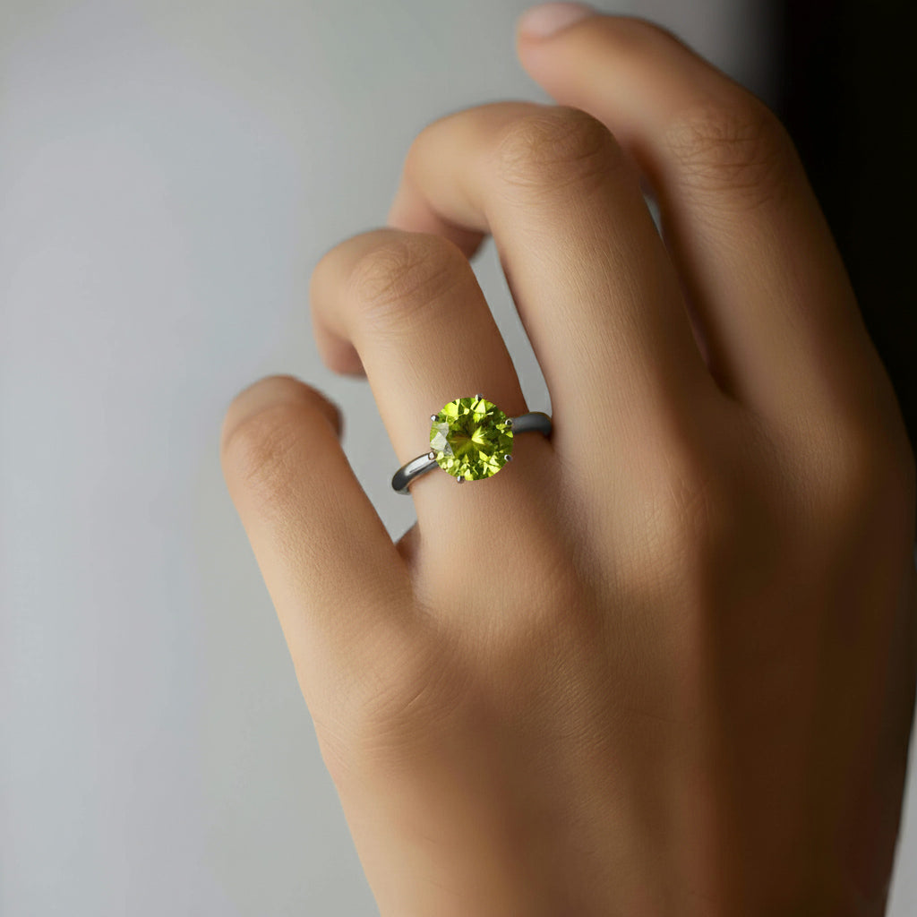 Fresh and luminous, the Silver Airelle Peridot Natural Gemstone Solitaire Ring brings a joyful energy to timeless elegance. Centered with a dazzling round-cut Peridot Natural Gemstone, this ring captures the spirit of renewal, positivity, and light, making it a vibrant choice for any jewelry lover.
