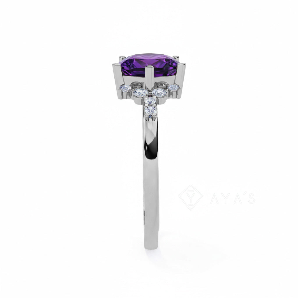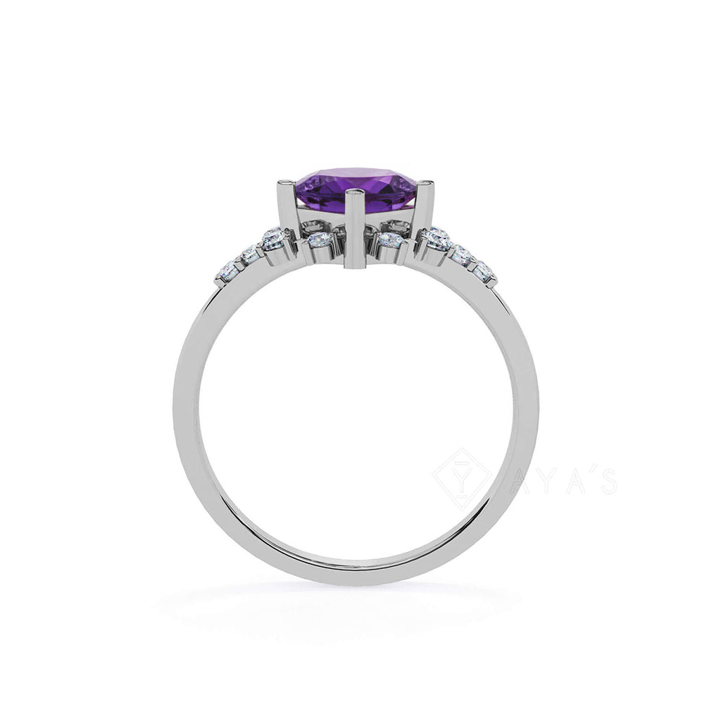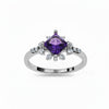 - Stone: Princess-cut Amethyst with round and marquise-cut accents