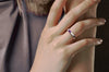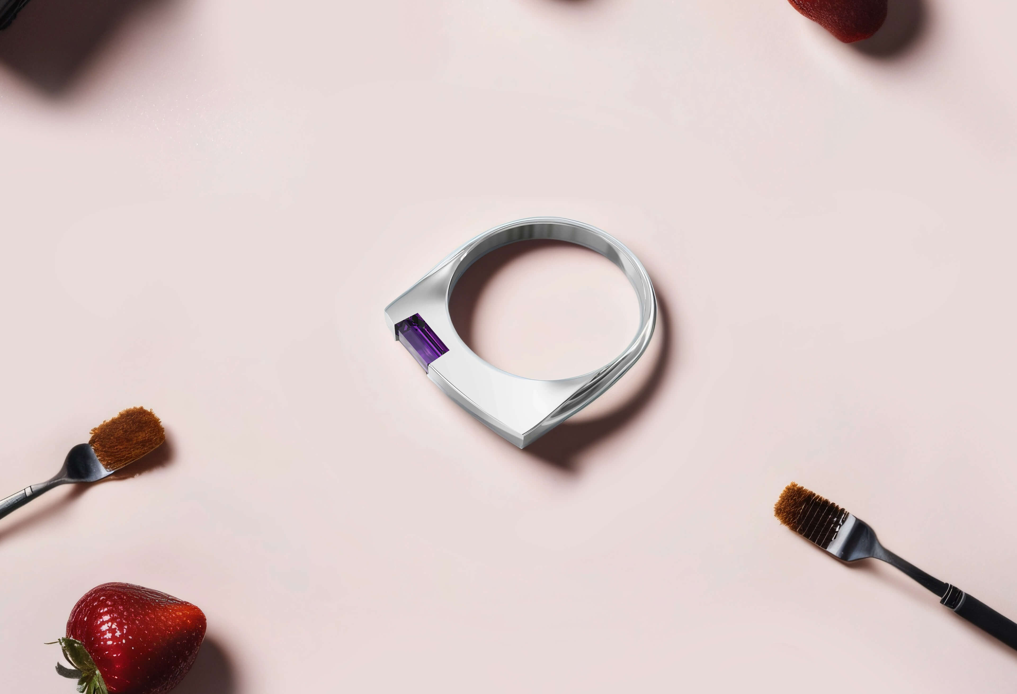 The Linia Ring is the current vogue with its minimal and contemporary outlook. It has AAA grade rhodolite garnet in baguette shape embedded in minimalist band underscoring geometry and symmetry in continuous fusions. This stone of inspiration is the natural birthstone of those born from mid-autumn to just after the winter solstice.