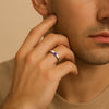 Sleek, sculptural, and effortlessly stylish, the Diza Men’s Ring is a contemporary piece that speaks to refined masculinity. Crafted from premium sterling silver and finished with a durable rhodium electroplating, this ring gleams with a high-gloss polish that catches the light from every angle.